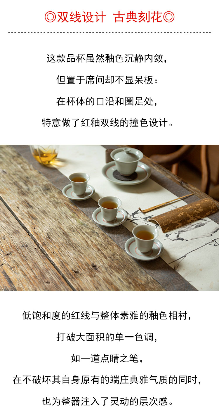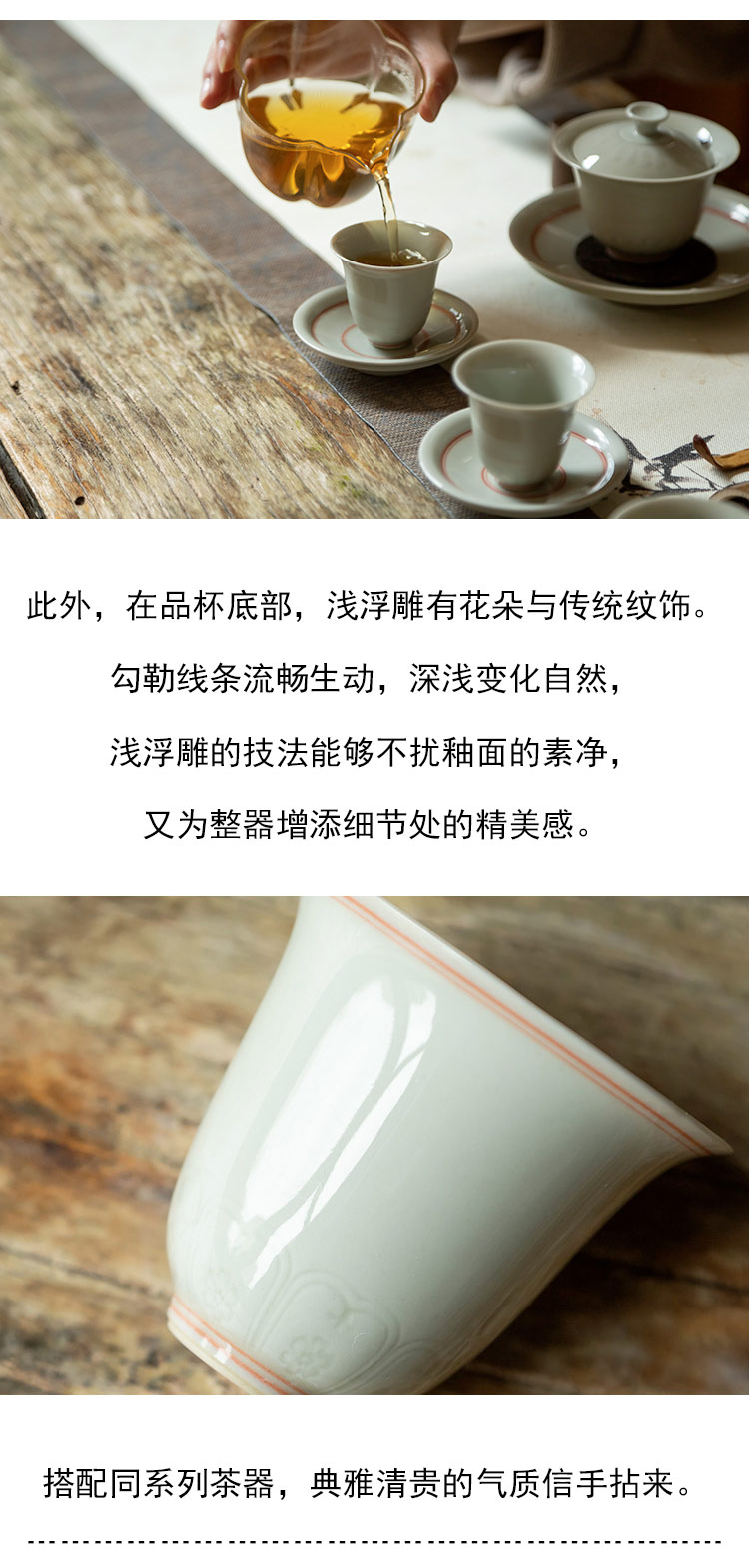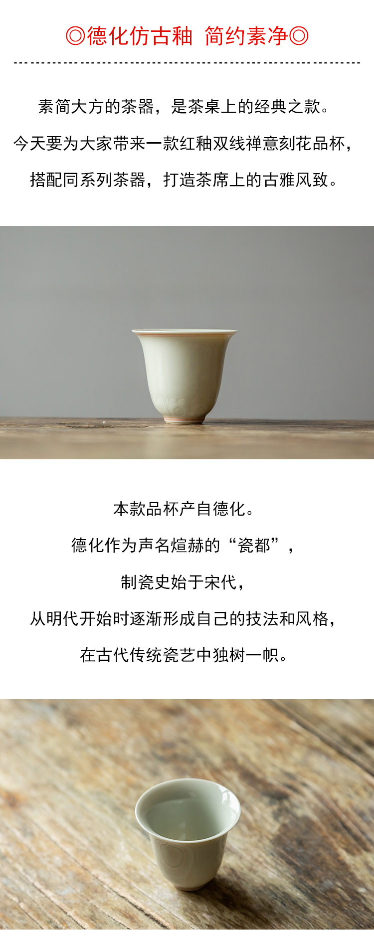 茶香记 红釉双线禅意刻花品杯40ml陶瓷茶杯浮雕立体小巧典雅聚香