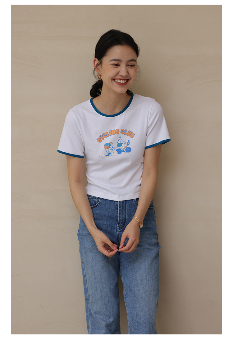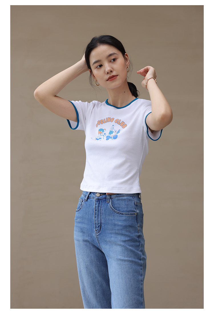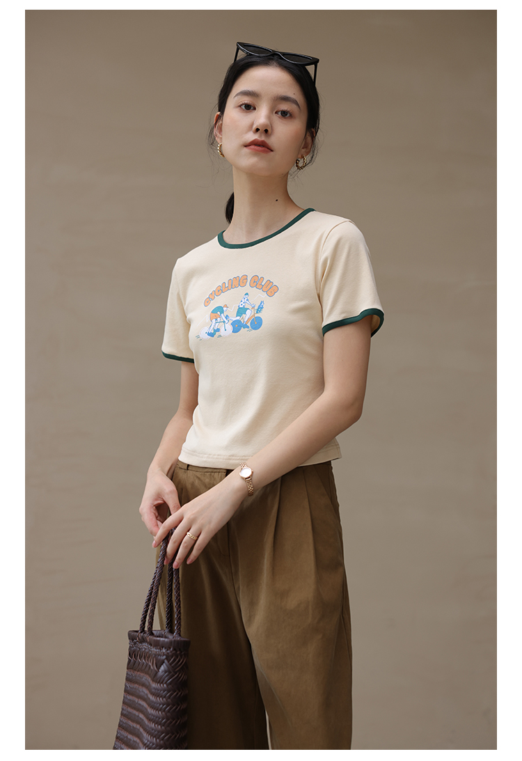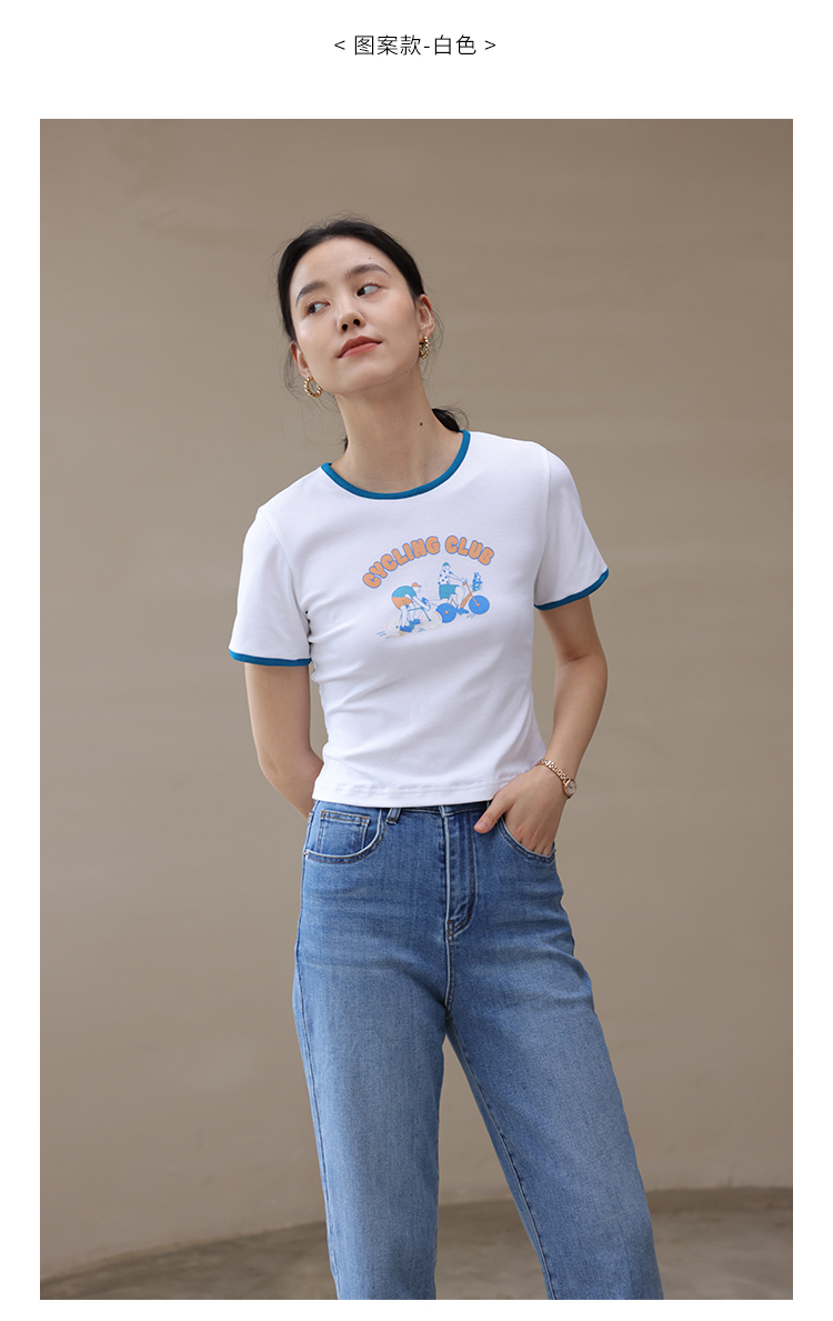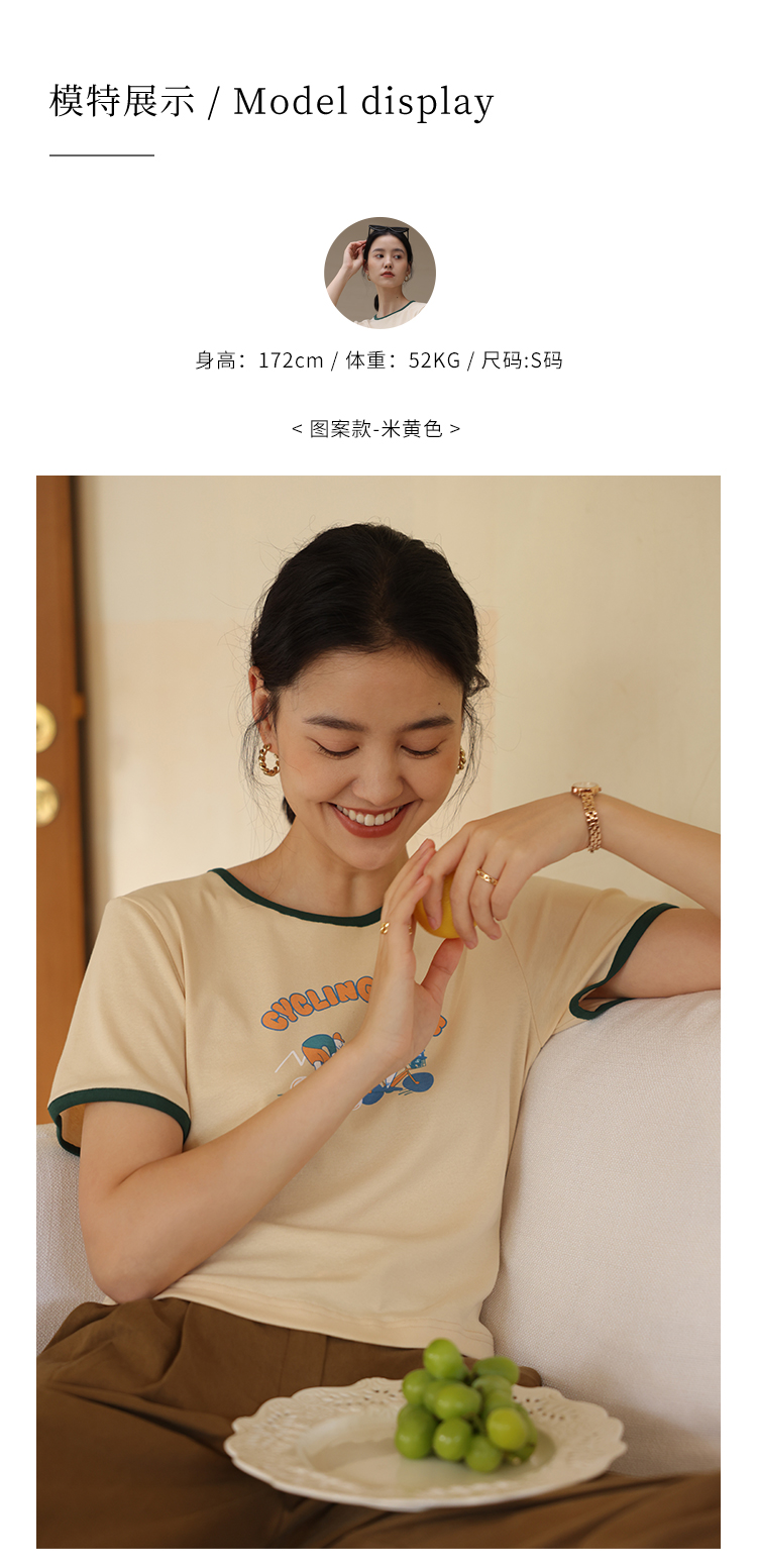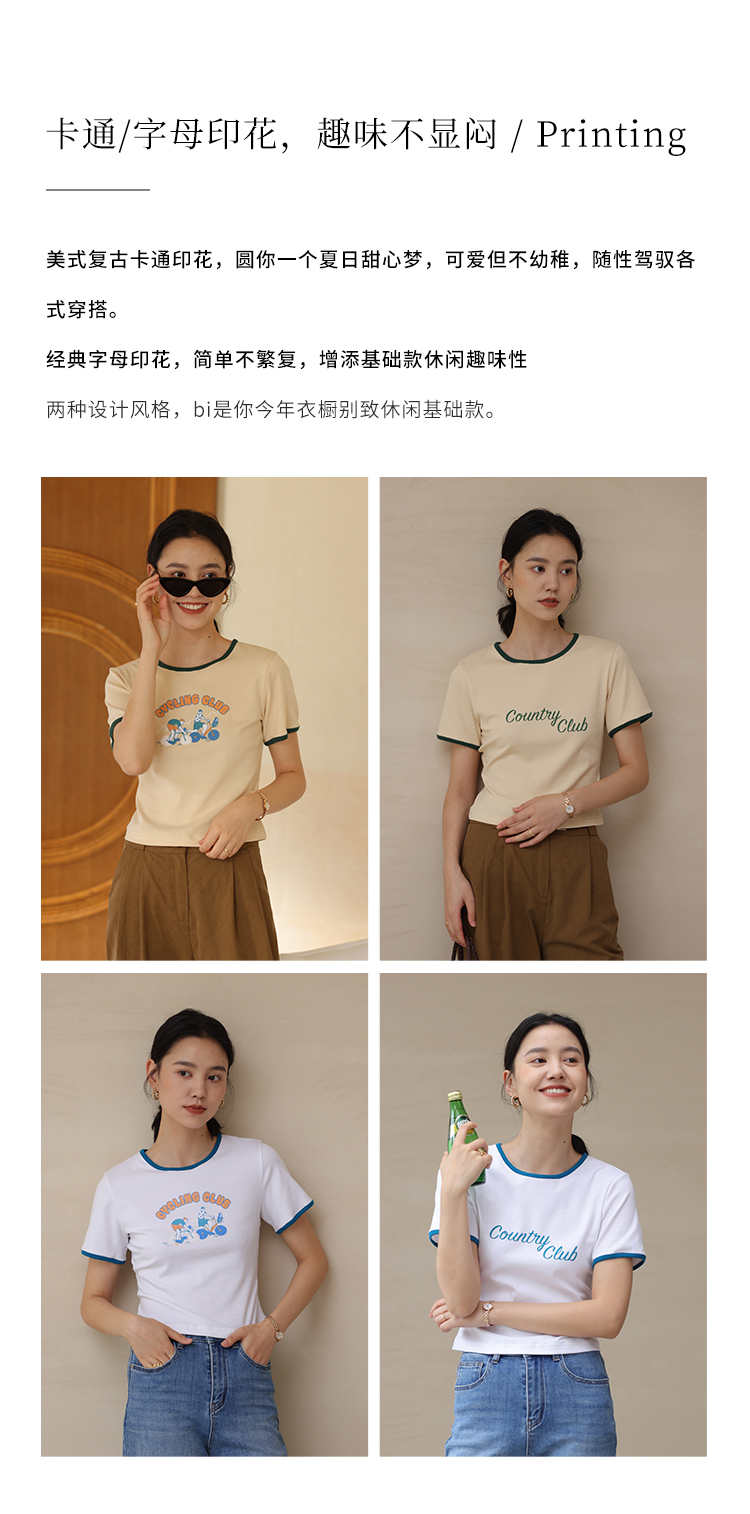 HeyDress卡通短袖T恤女夏季圆领撞色设计百搭正肩短款别致上衣