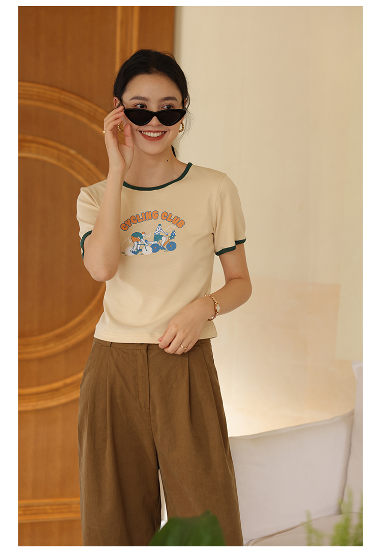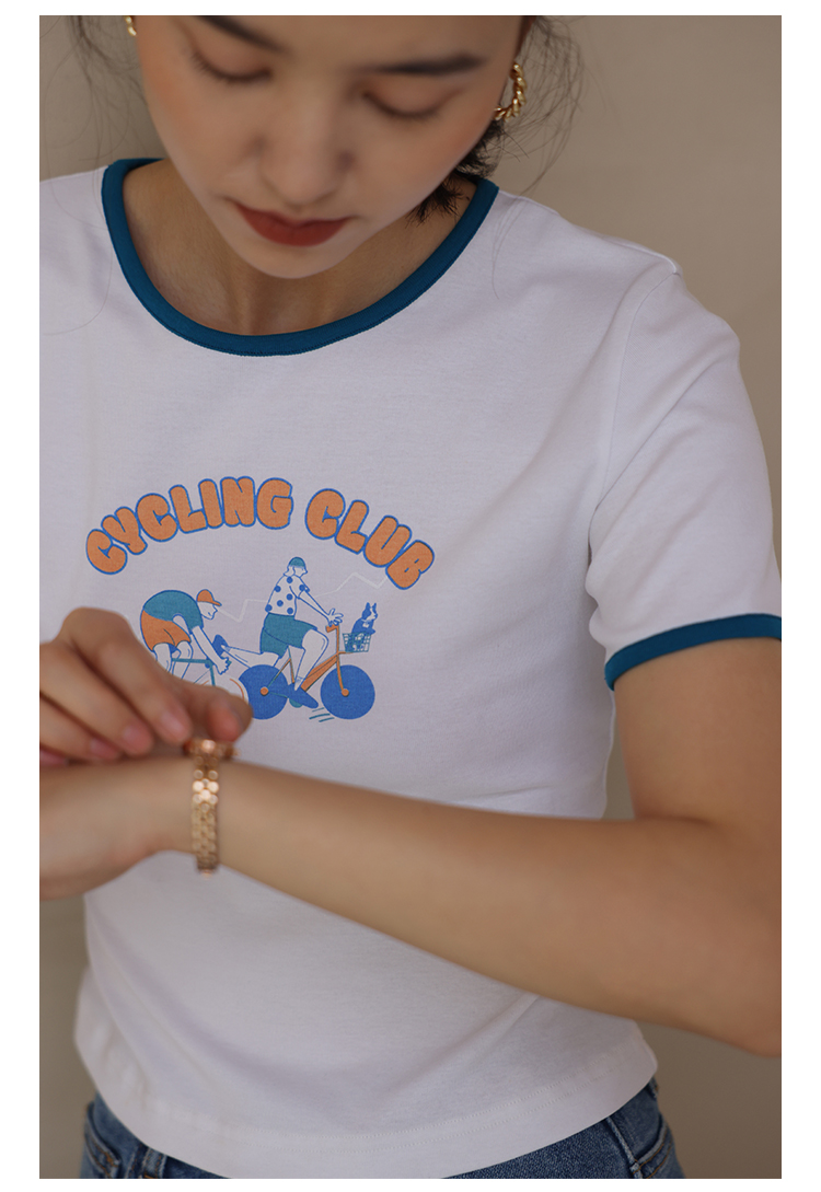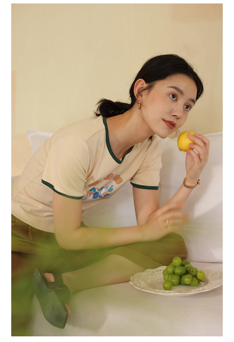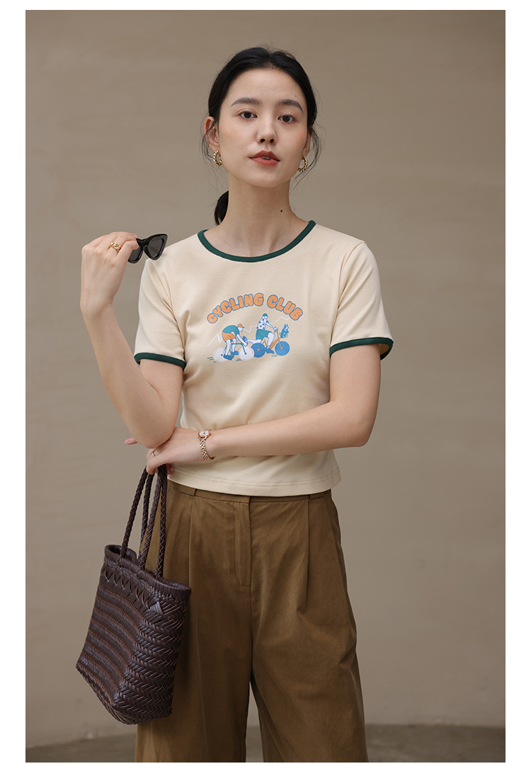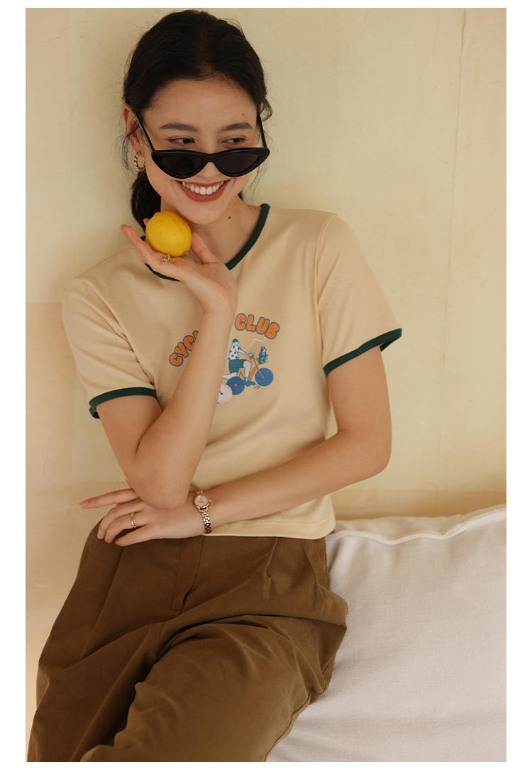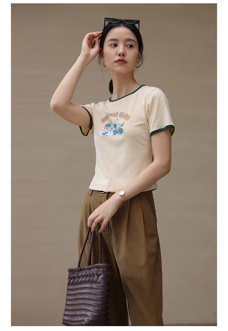 HeyDress卡通短袖T恤女夏季圆领撞色设计百搭正肩短款别致上衣