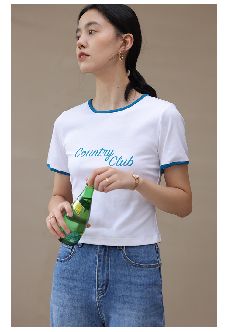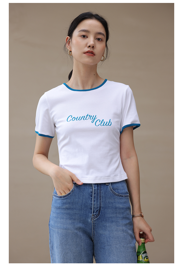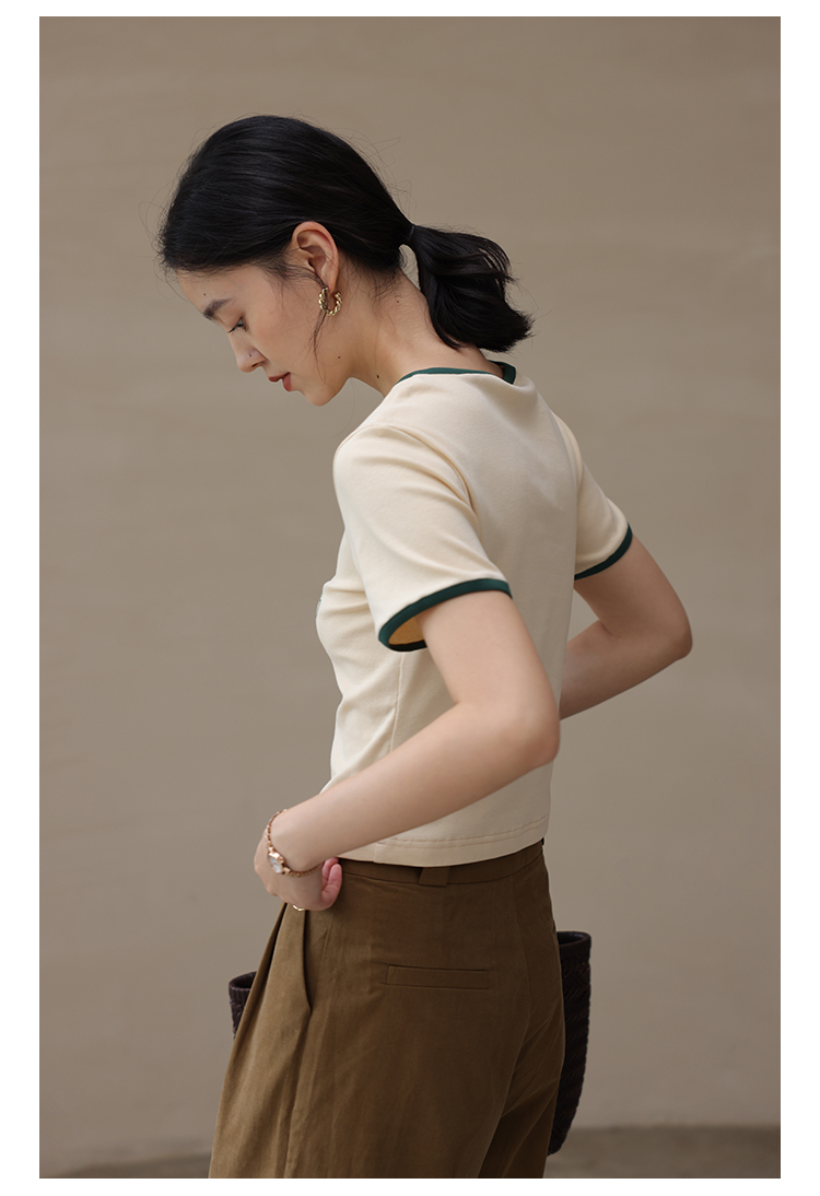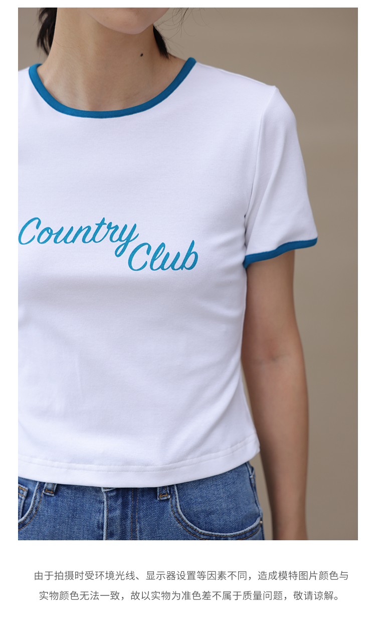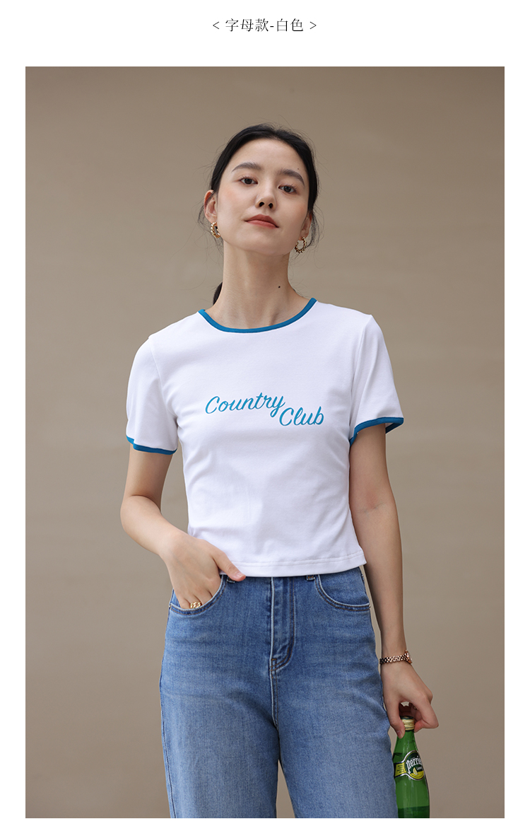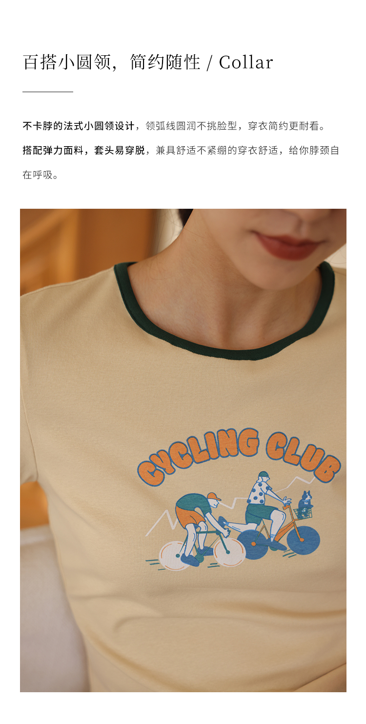 HeyDress卡通短袖T恤女夏季圆领撞色设计百搭正肩短款别致上衣