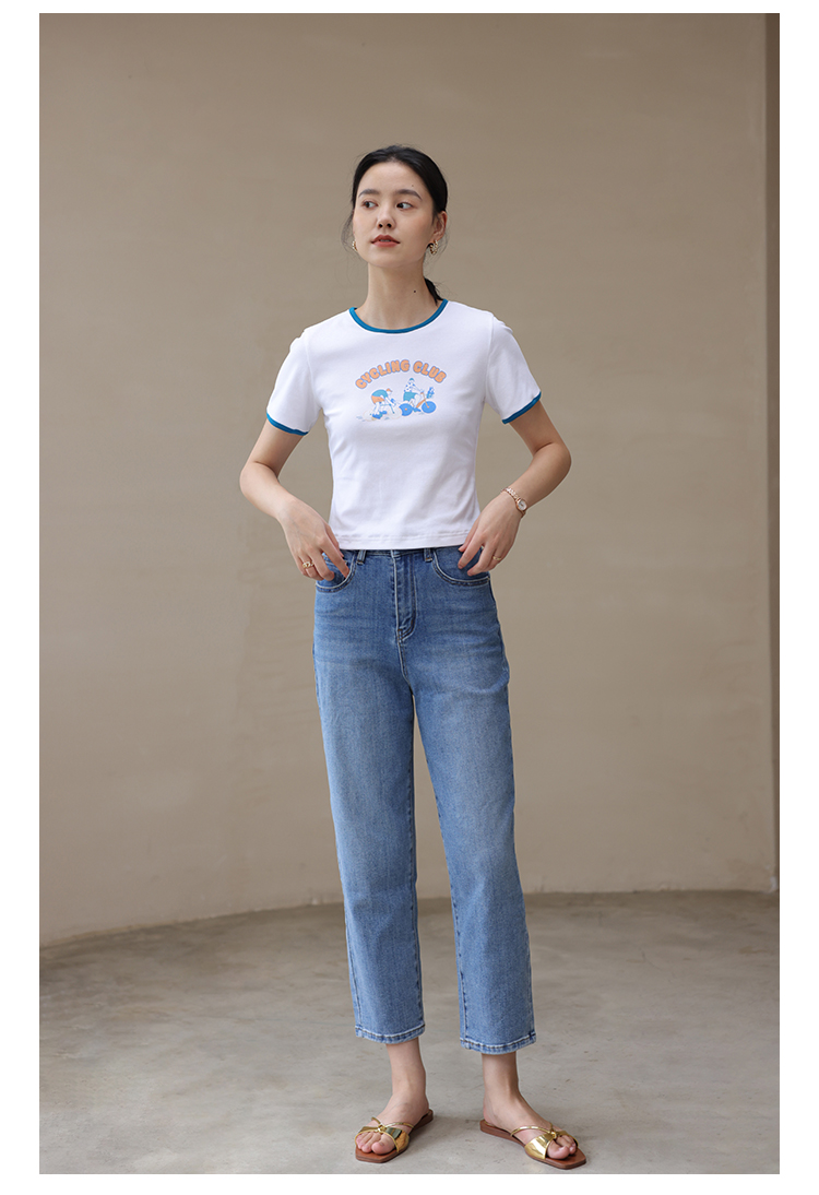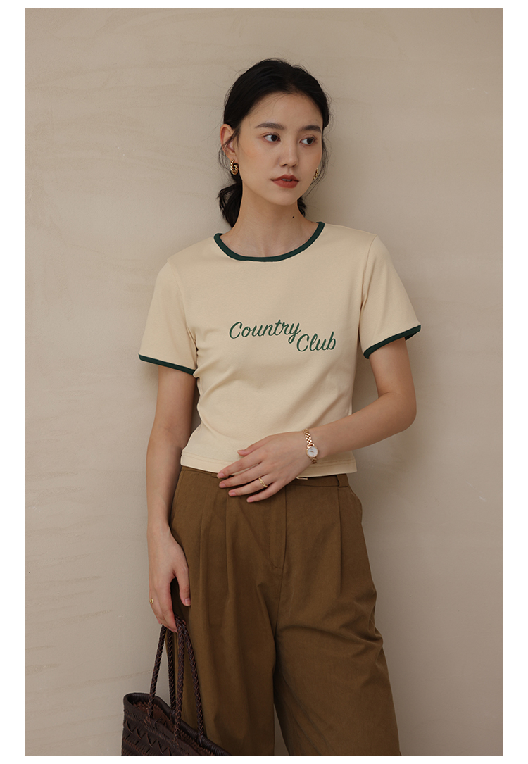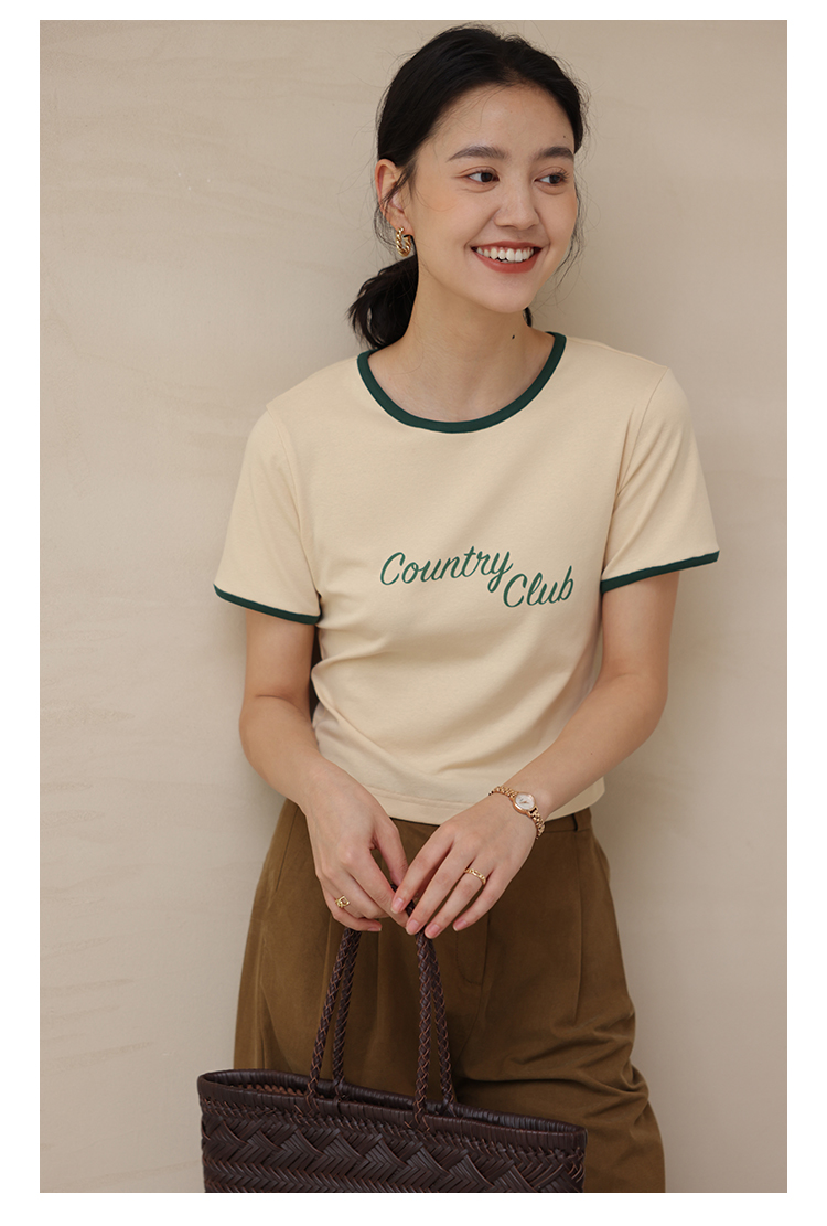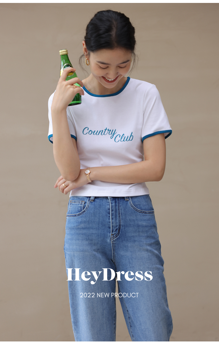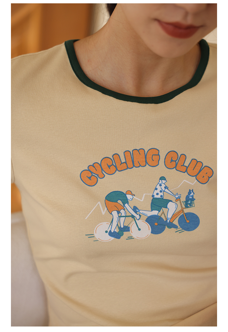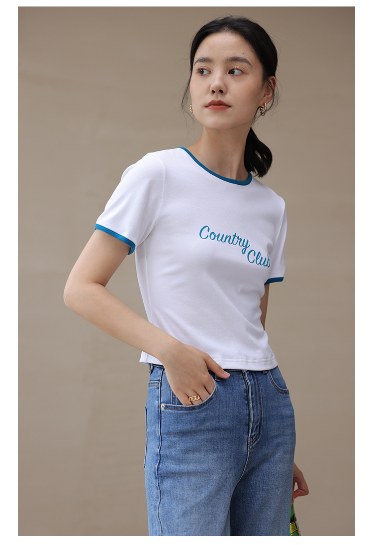 HeyDress卡通短袖T恤女夏季圆领撞色设计百搭正肩短款别致上衣