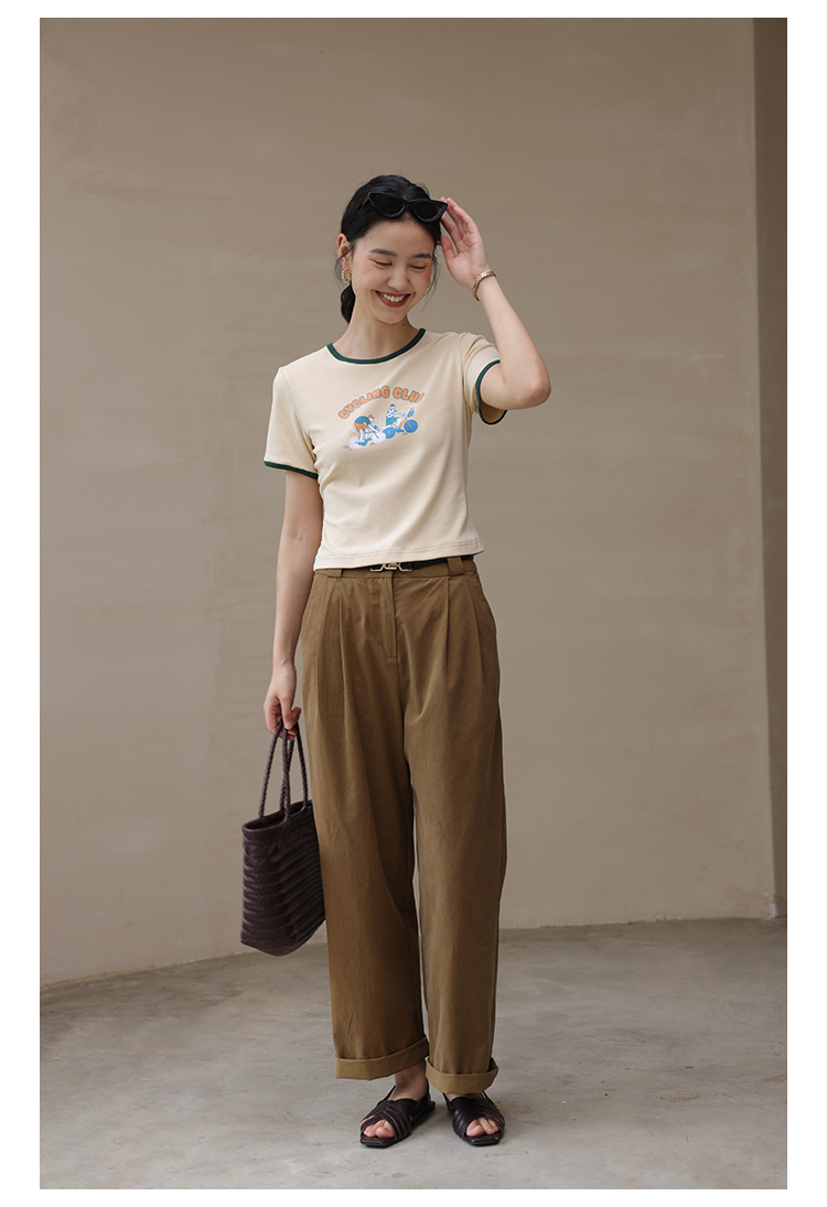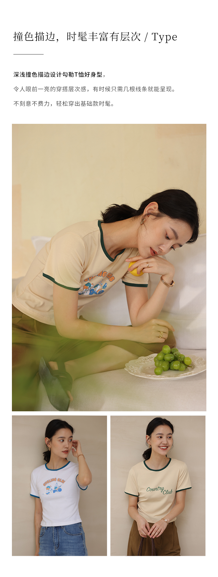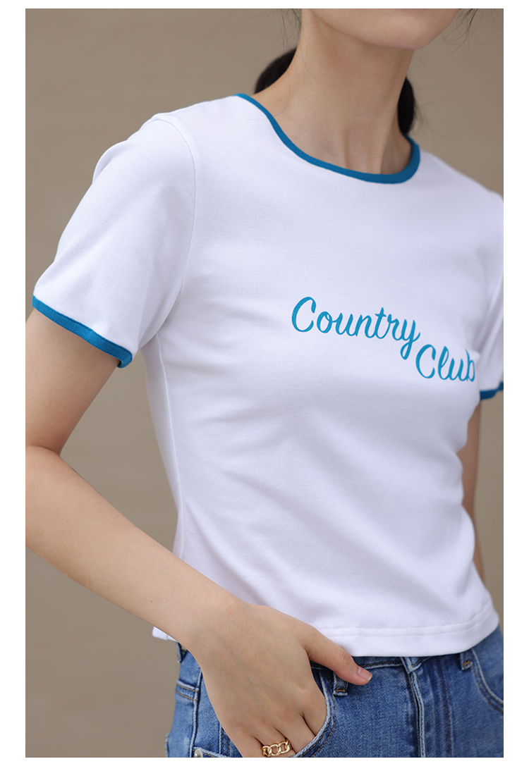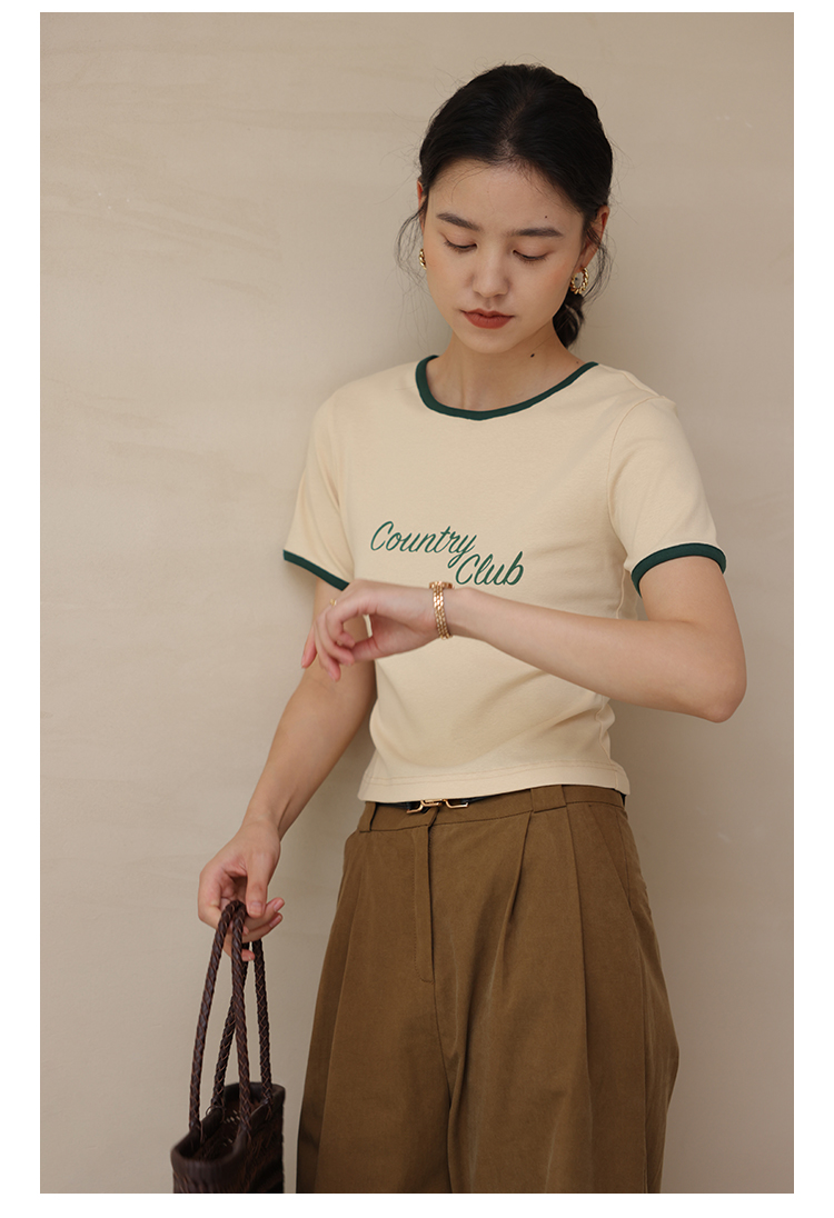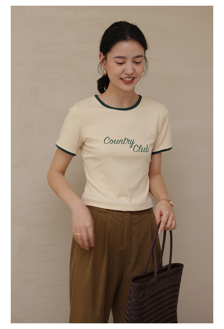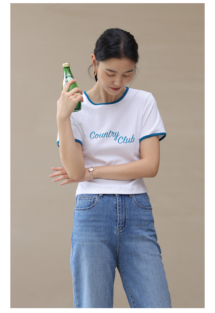 HeyDress卡通短袖T恤女夏季圆领撞色设计百搭正肩短款别致上衣