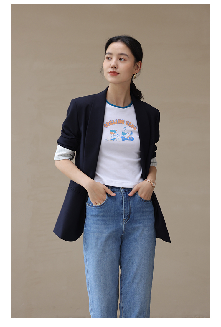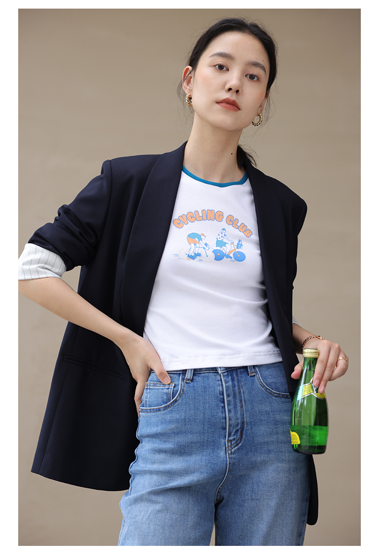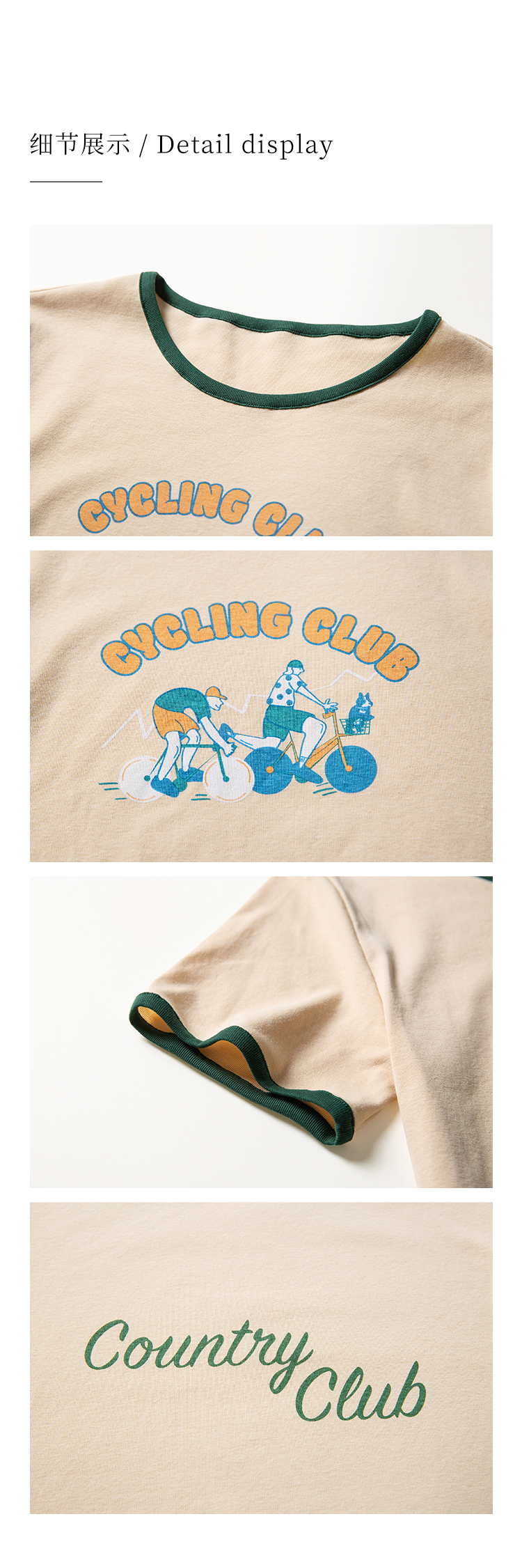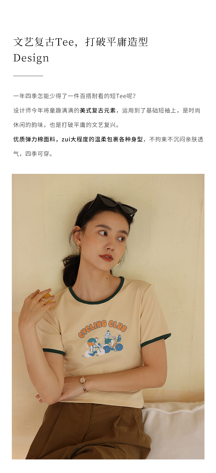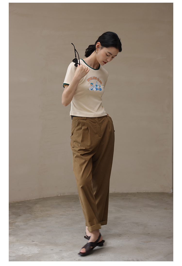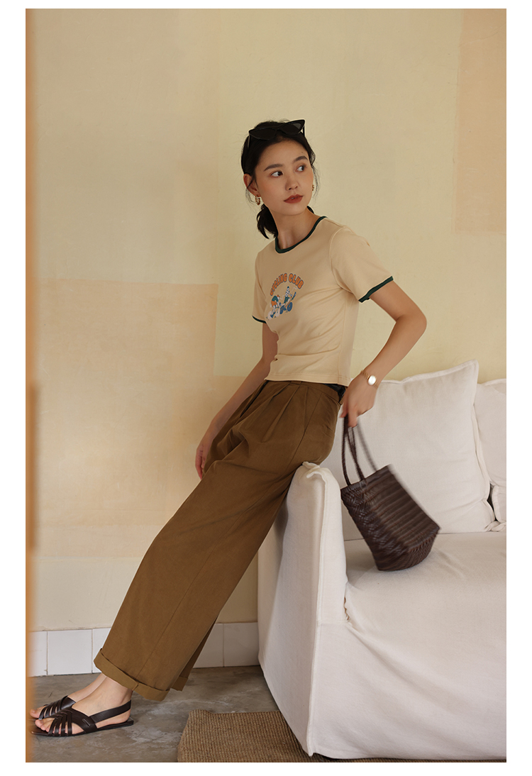 HeyDress卡通短袖T恤女夏季圆领撞色设计百搭正肩短款别致上衣