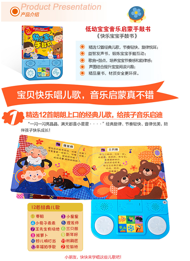 快乐宝宝手鼓书(精) 0-3岁 原价 78.8