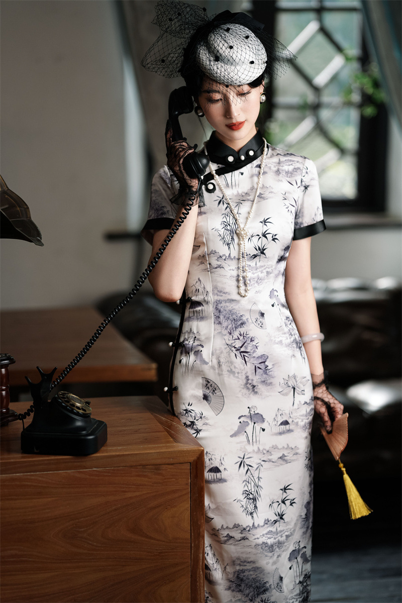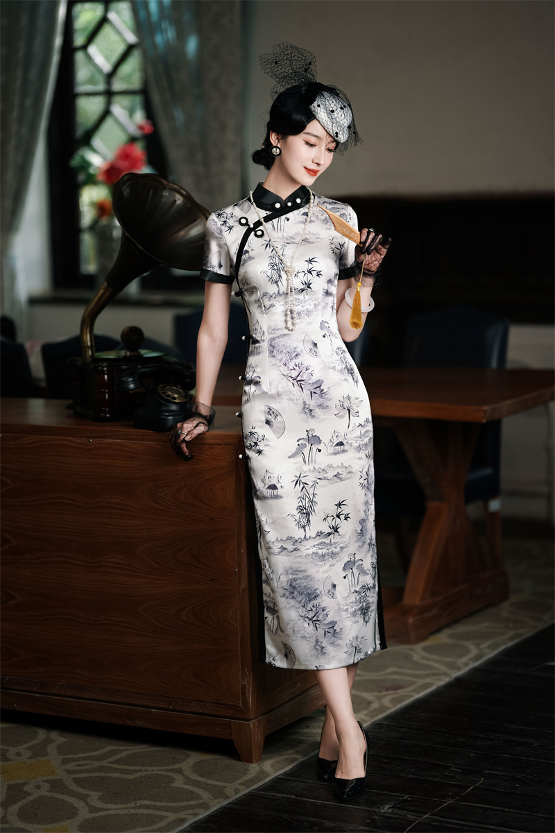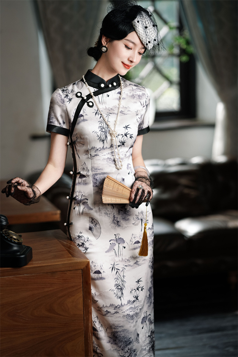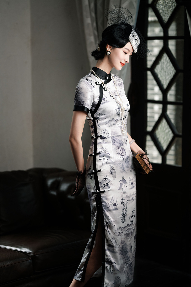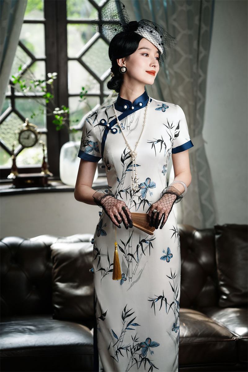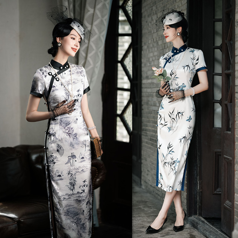 GX老上海复古国风改良新中式长款旗袍2023夏季新款女士宴会日常旗袍
