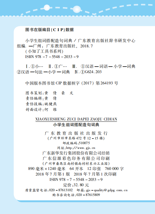 正确的语言表达方法以及准确理解语言的能力,是学好其他学科的基础。组词、造句是小学语文基础知识训练的一个重要环节,为帮助小学生提高遣词造句的能力,为口语表达和书面写作打下牢固的基础,我们组织一批来自一线的优秀教师编写了《小学生组词搭配造句词典》。