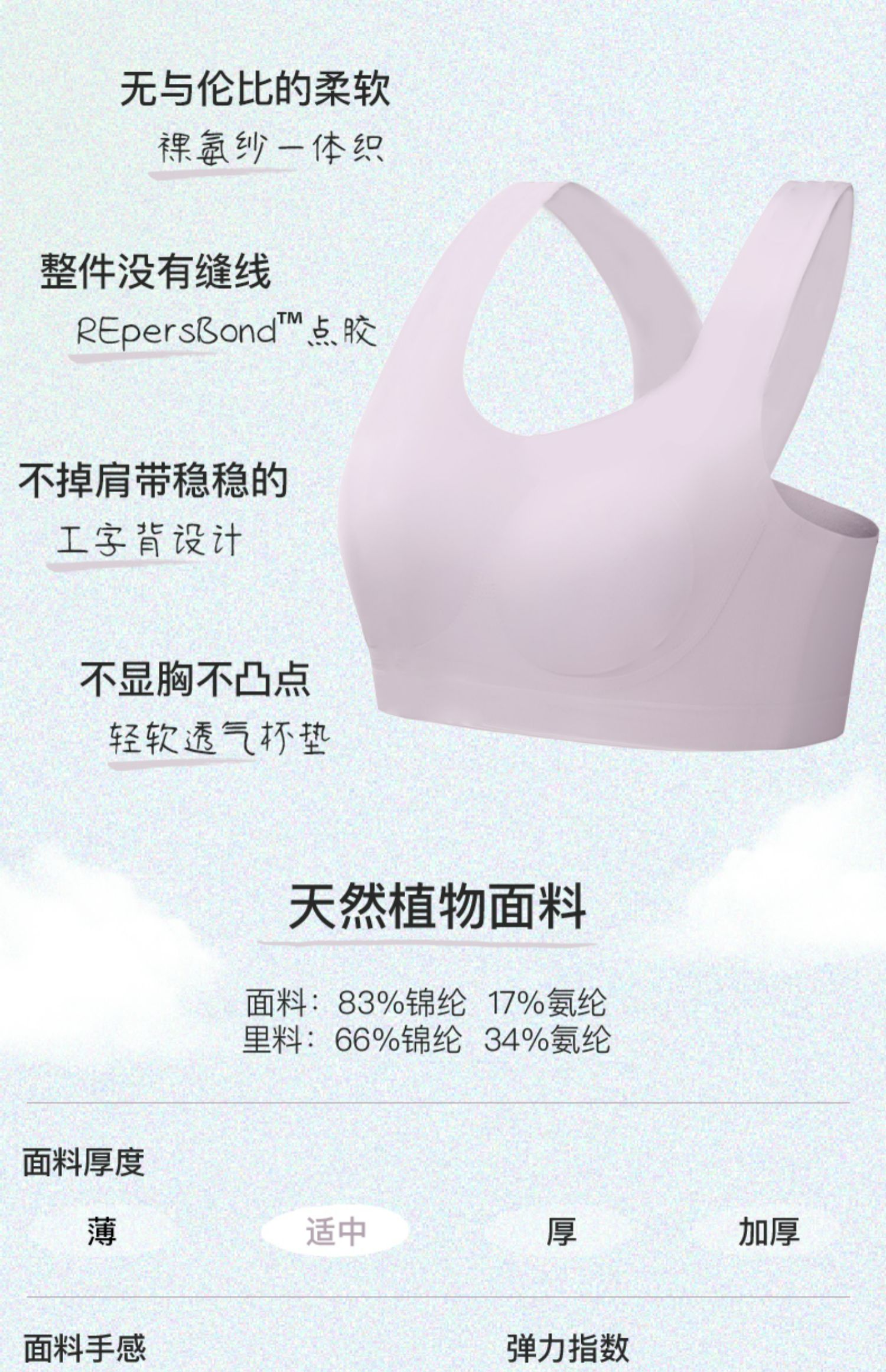 【低至6折】likeuu少女发育期自适应超柔裸氨纱无痕一体织文胸