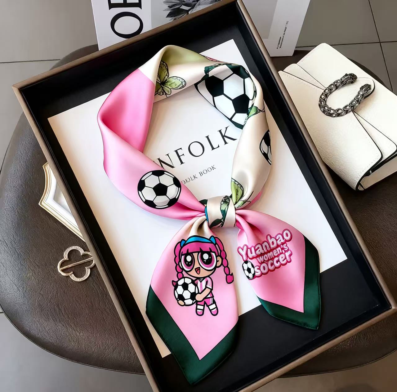 元宝女足、青年志愿者RITA(DING)一起创作的丝巾兼具体育精神与女性气质。把山里的风、女孩的梦,一并缝进“用足球荡出命运弧度”的故事,为此款特别版方巾,希望与您一起支持中国乡村留守儿童的梦想。