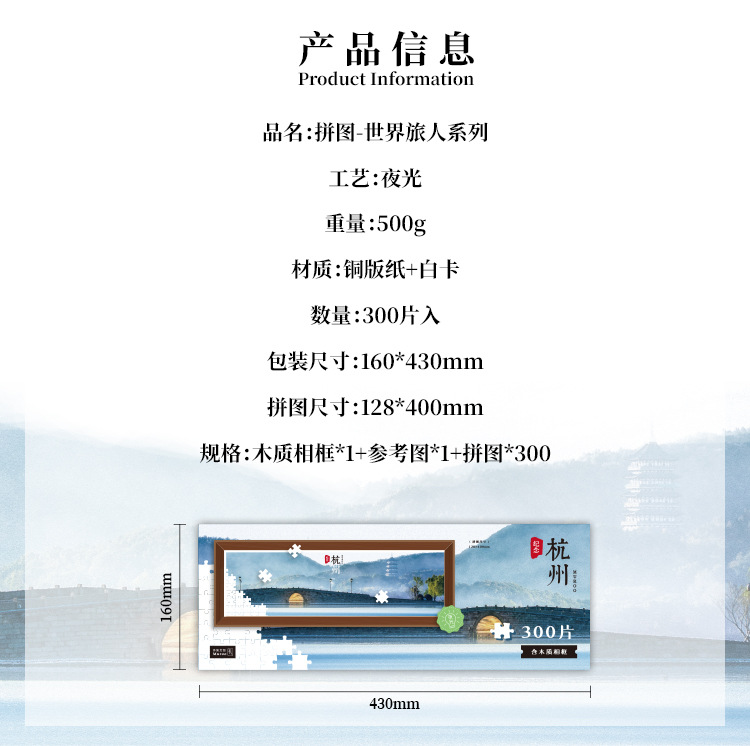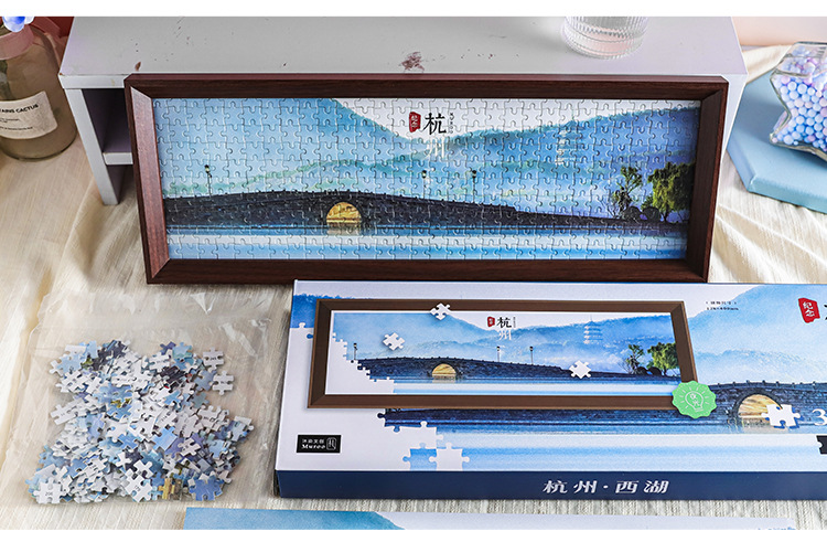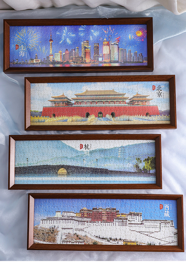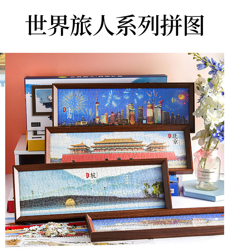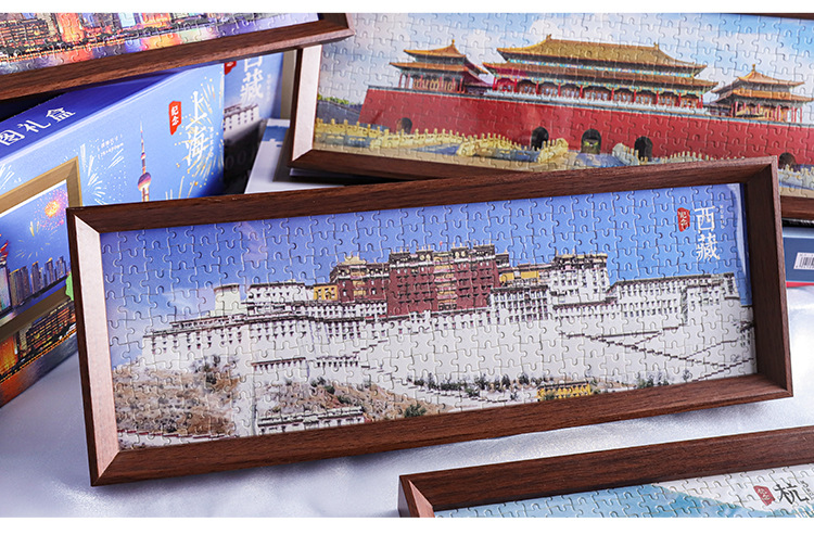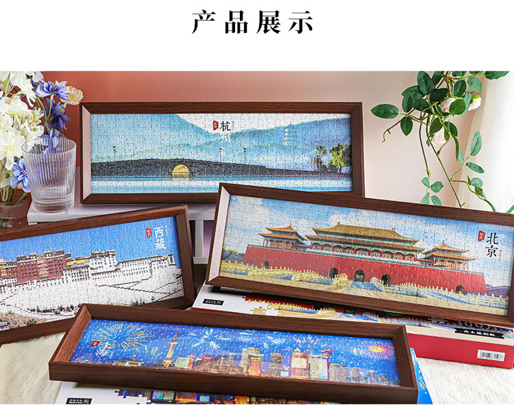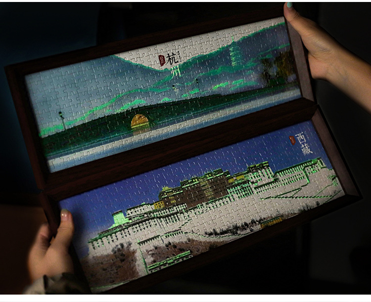 【中国景色夜光拼图送相框】 北京上海西藏杭州西湖旅游益智拼图摆件