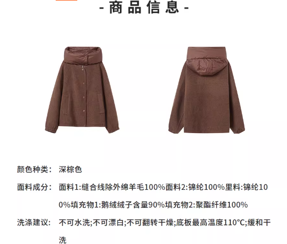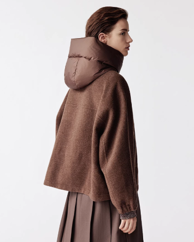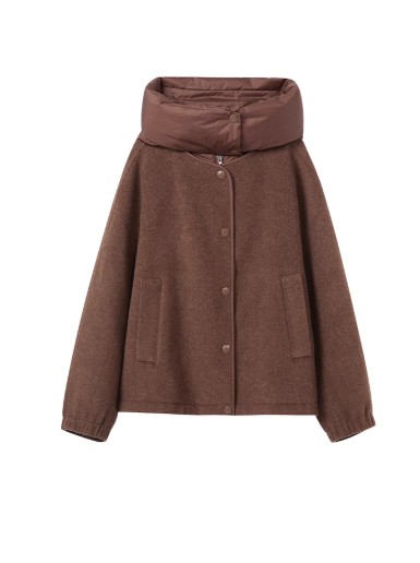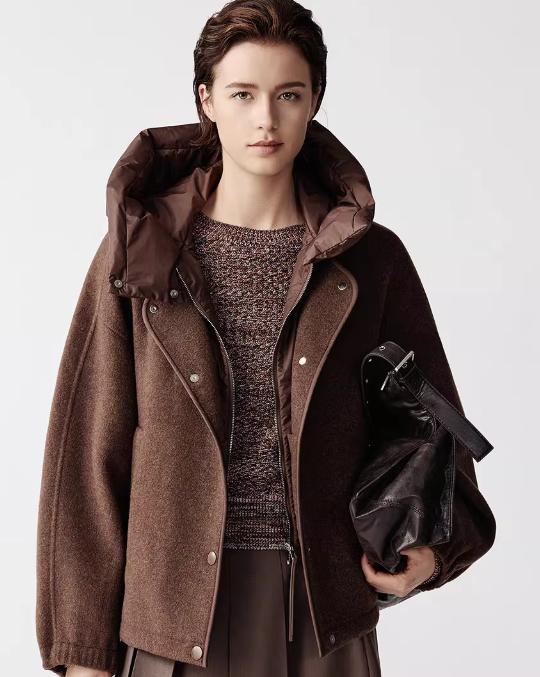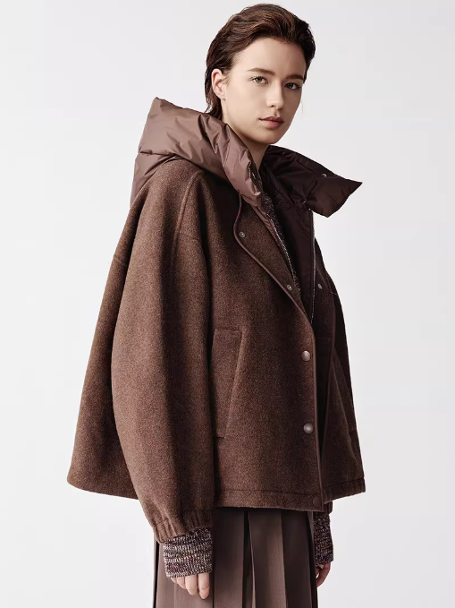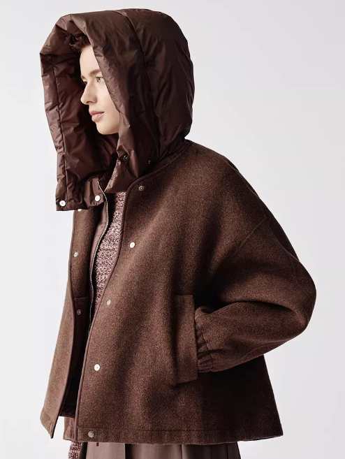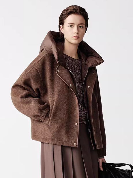朗姿 【匈牙利鹅绒】连帽气质短款毛呢羽绒服LCJH04HHC434