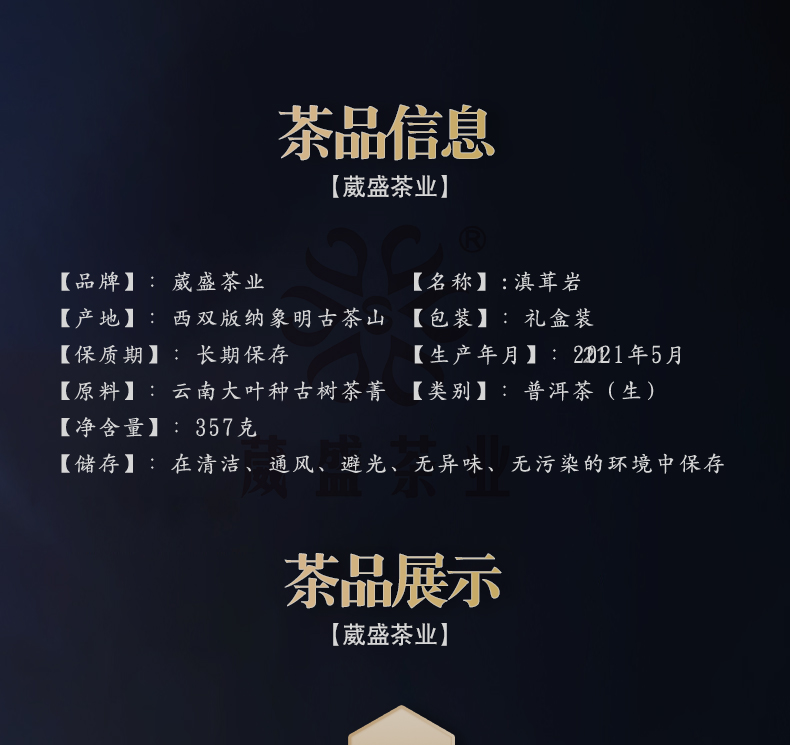 2021新品滇茸岩普洱生茶357g
