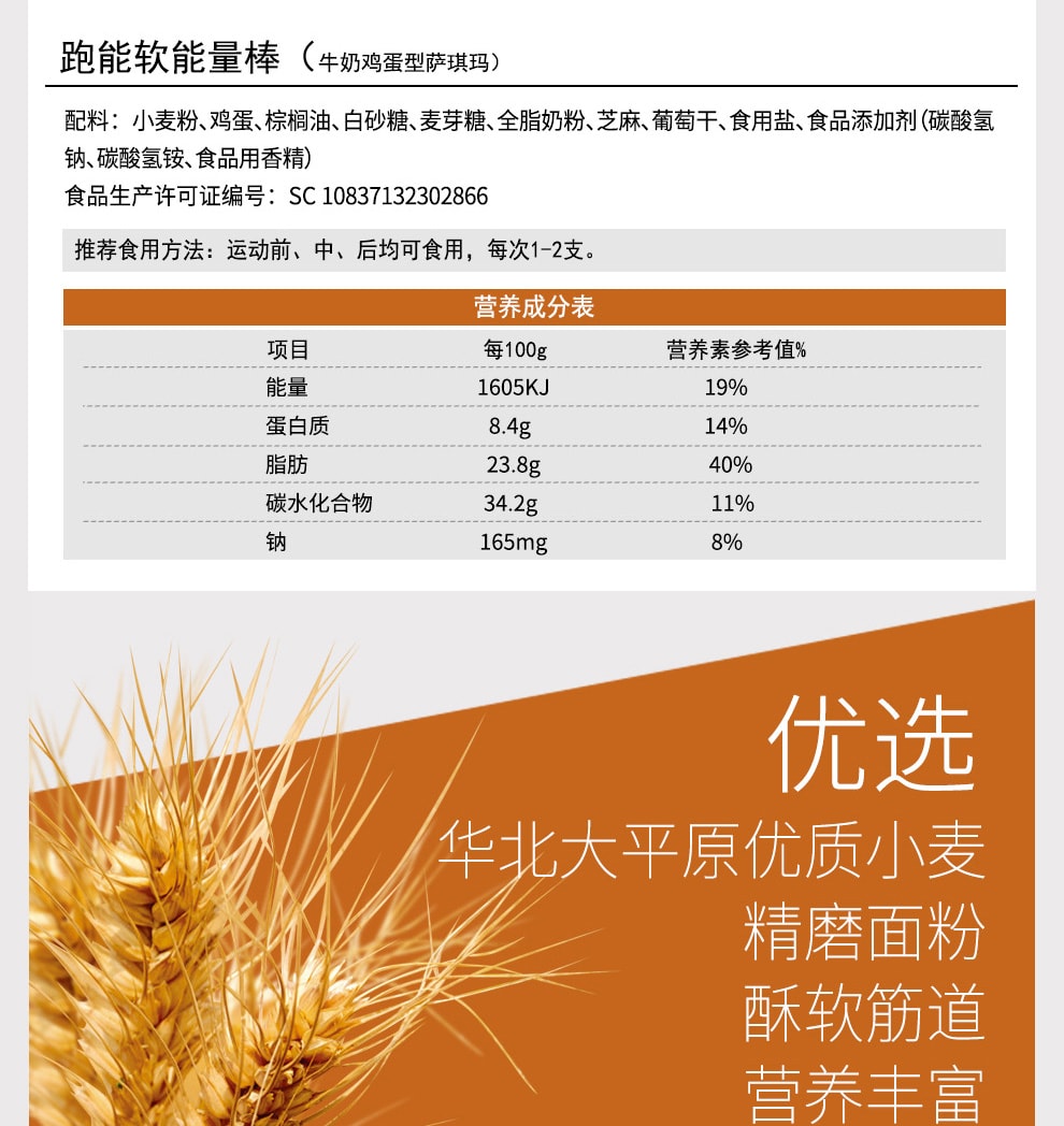 (柔软好吃饱腹)跑能沙琪玛能量棒/小麦鸡蛋牛奶(保质期27年6月)