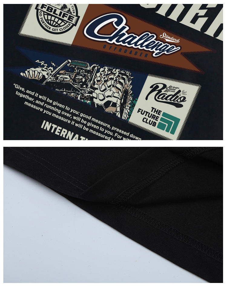 自由基地2023美式复古风格机车图案印花半袖T恤情侣短袖休闲体恤 NMT-2018