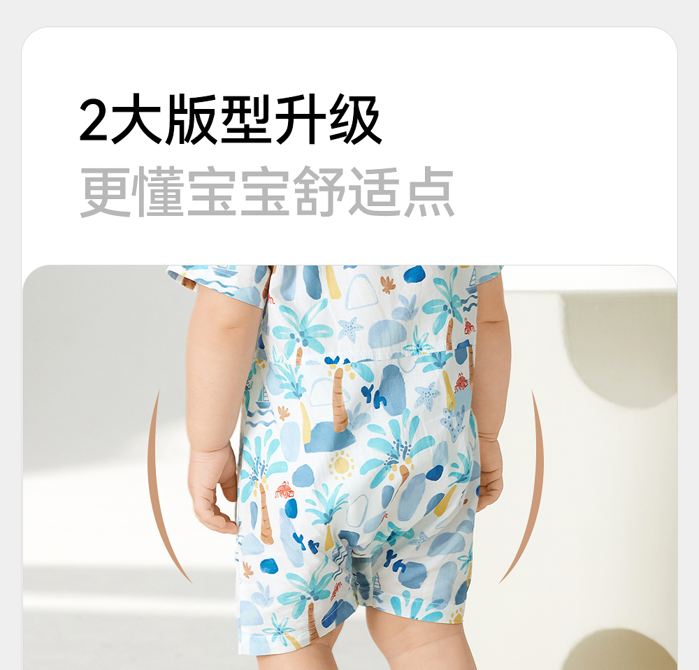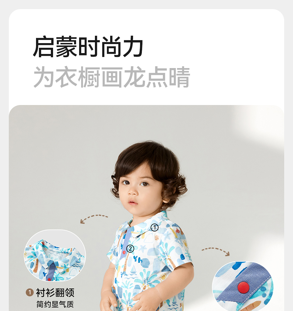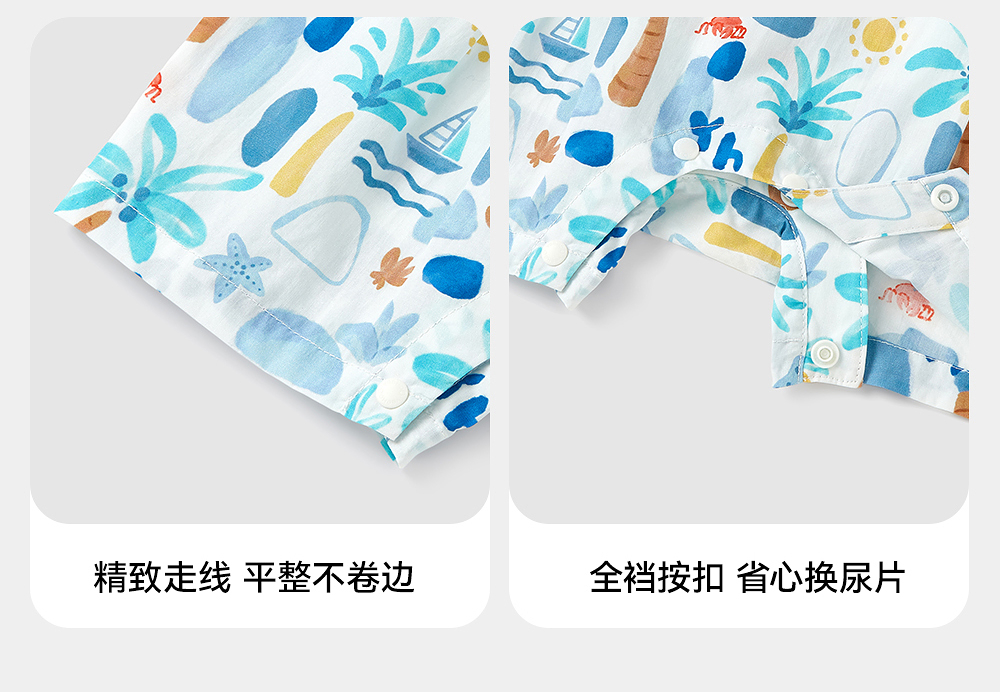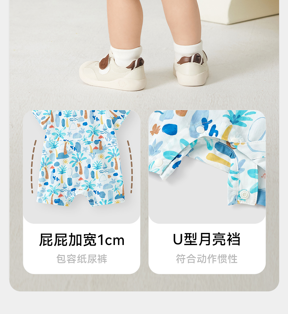 英氏婴儿衣服夏季短袖透气男宝连体衣度假风2025新款短袖连体衣