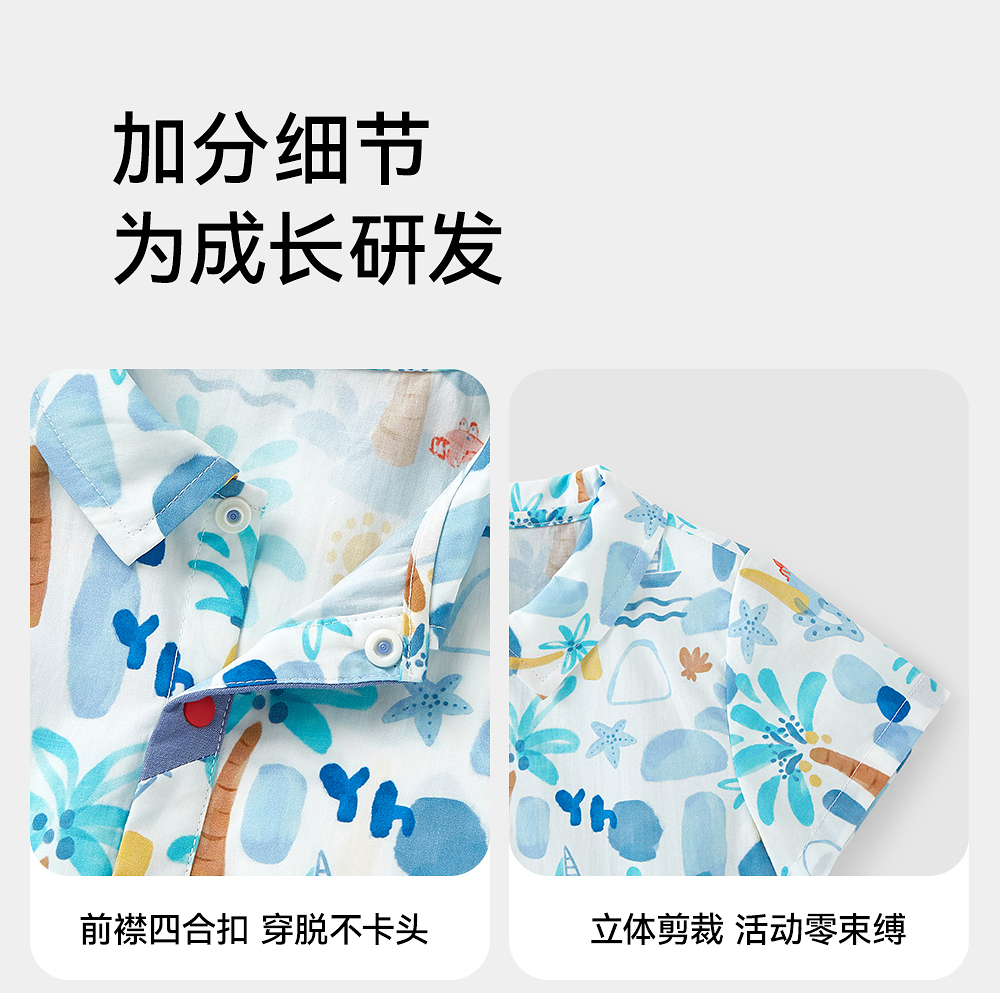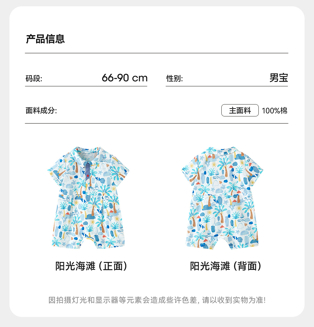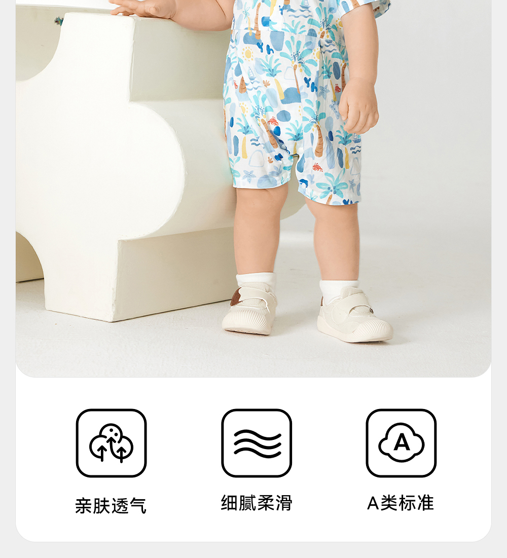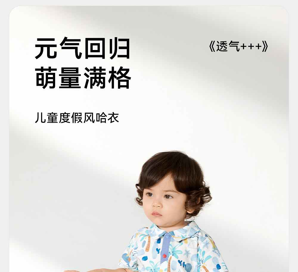 英氏婴儿衣服夏季短袖透气男宝连体衣度假风2025新款短袖连体衣