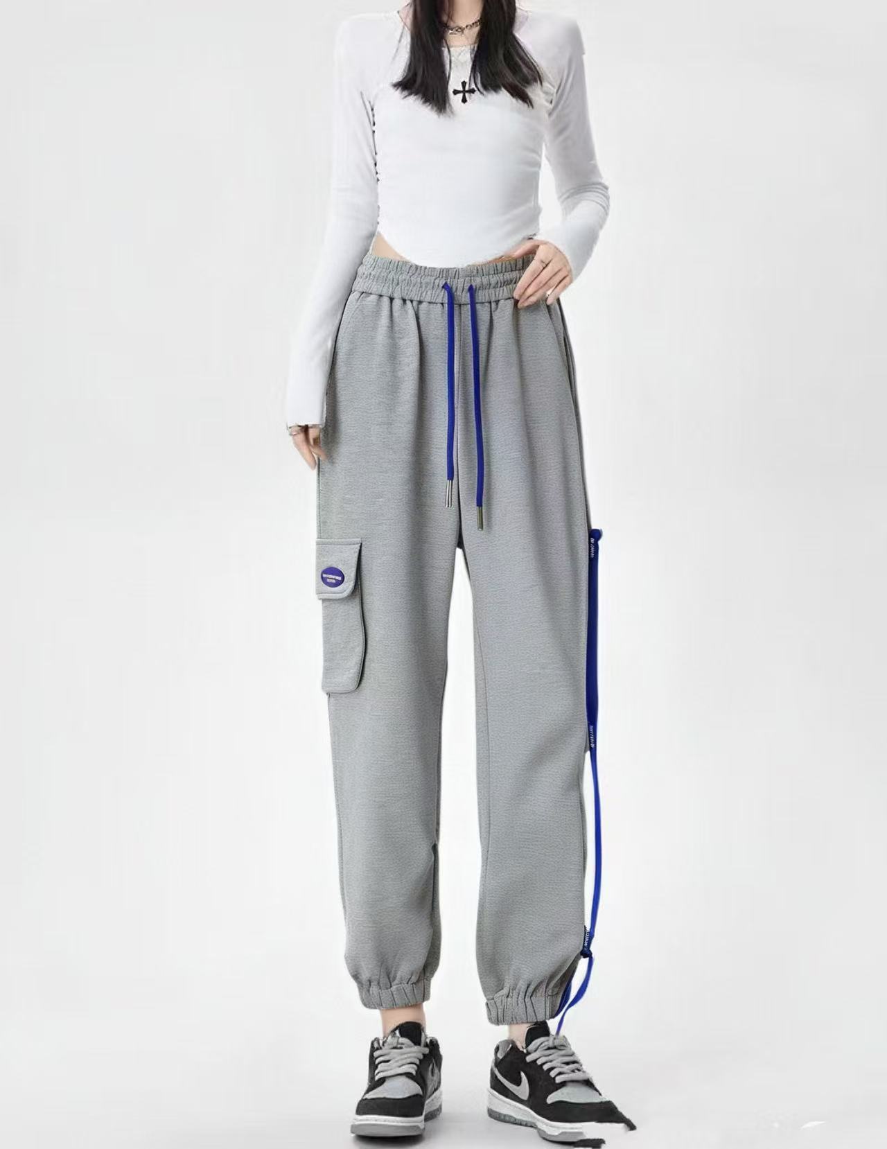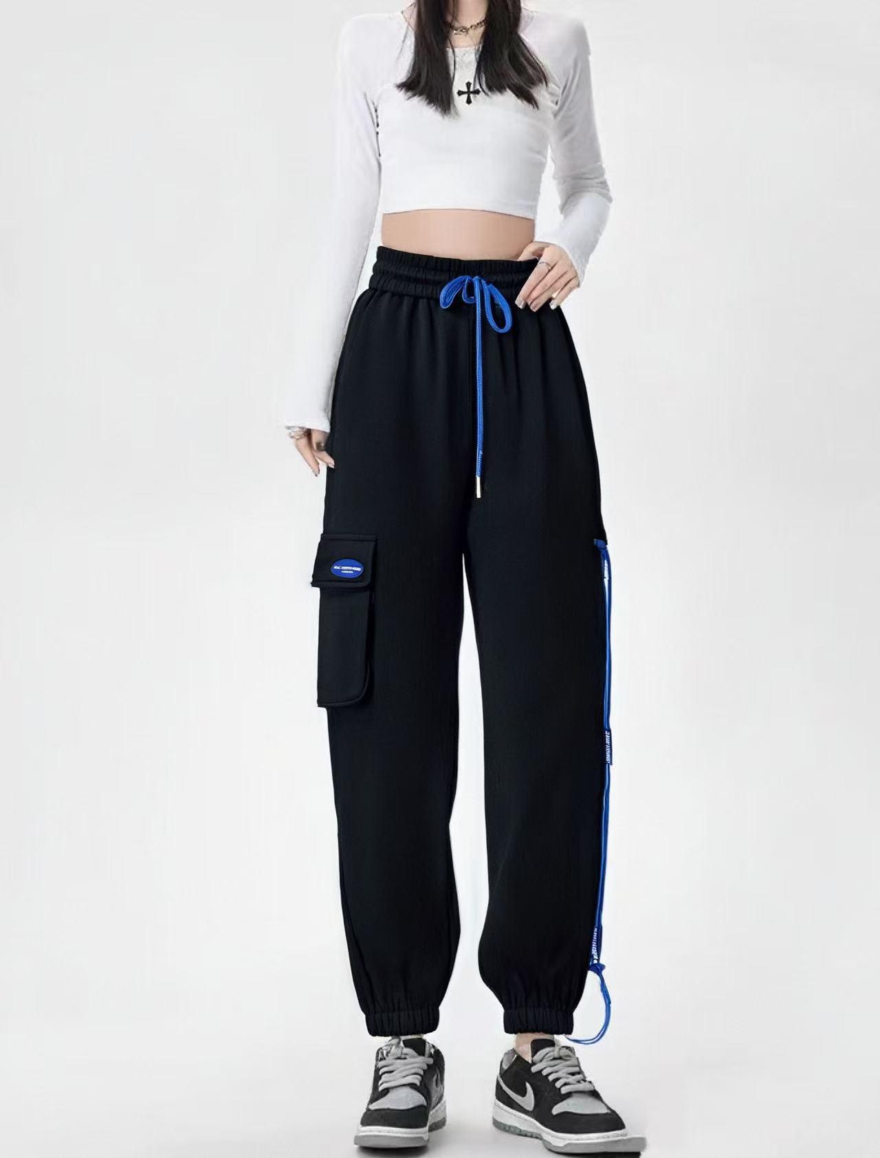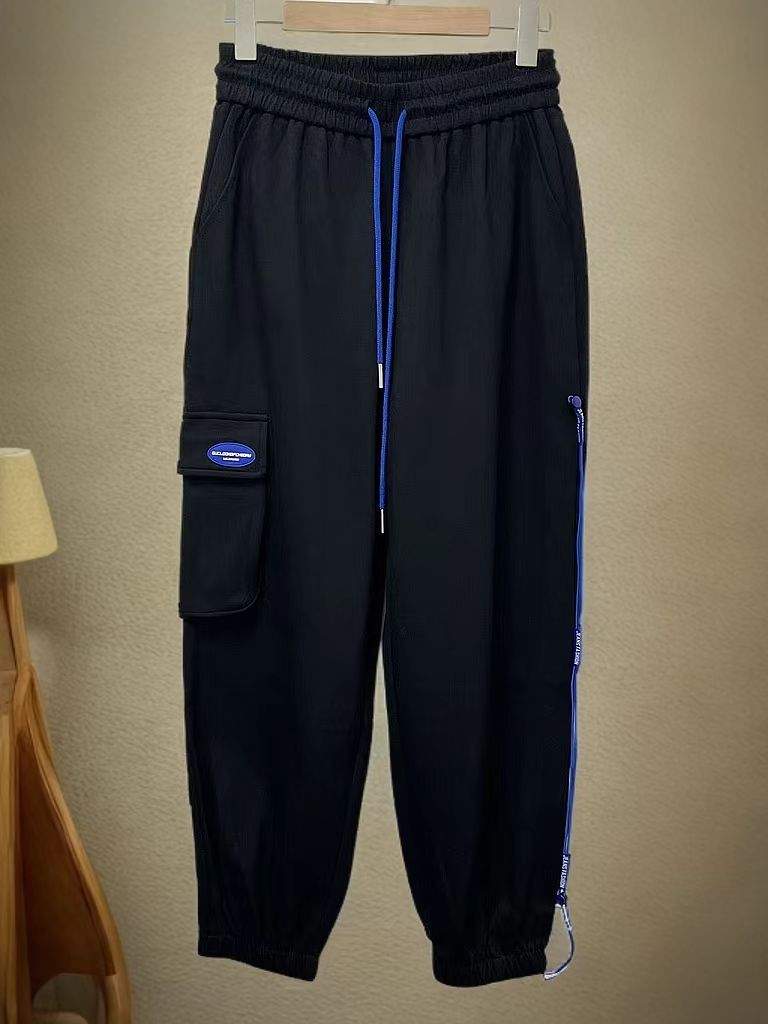 【秋上新】2860潮牌设计感拼色绳收口休闲卫裤-喜出