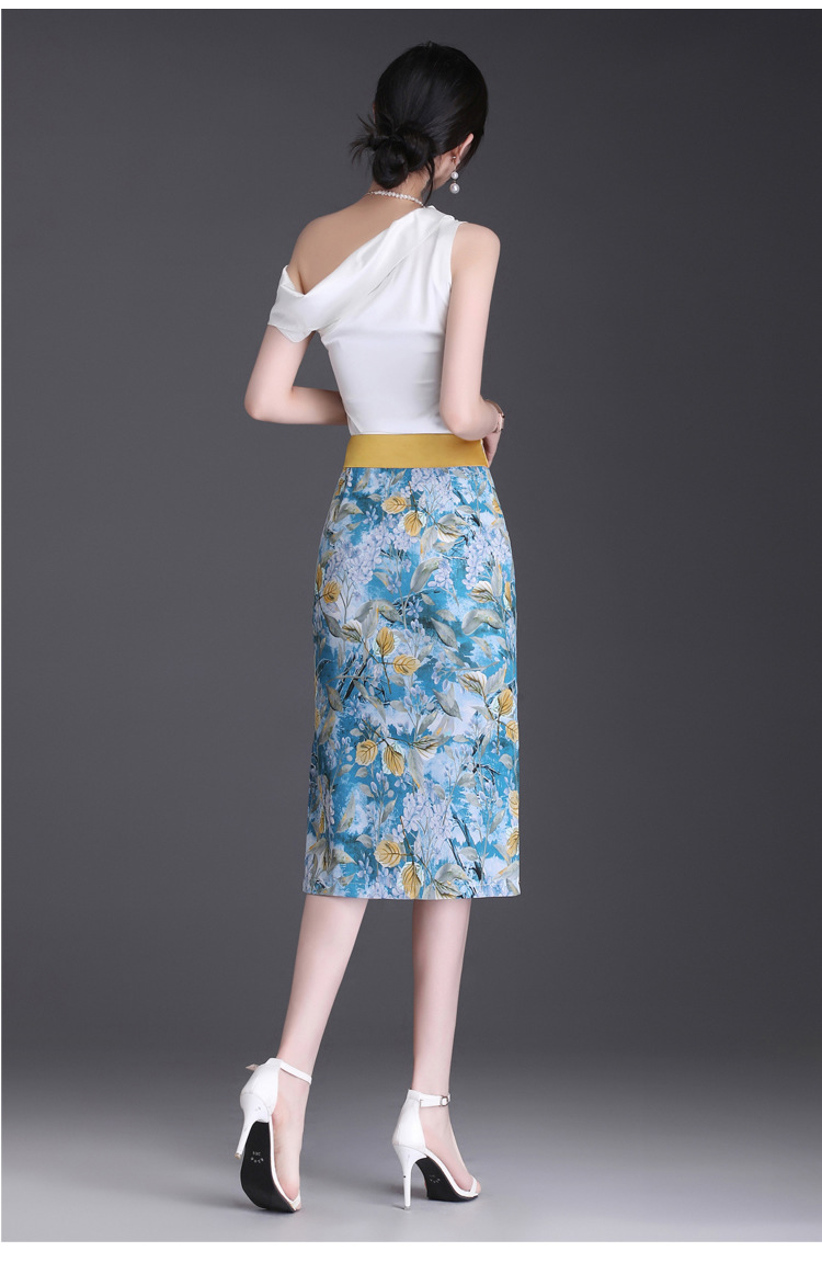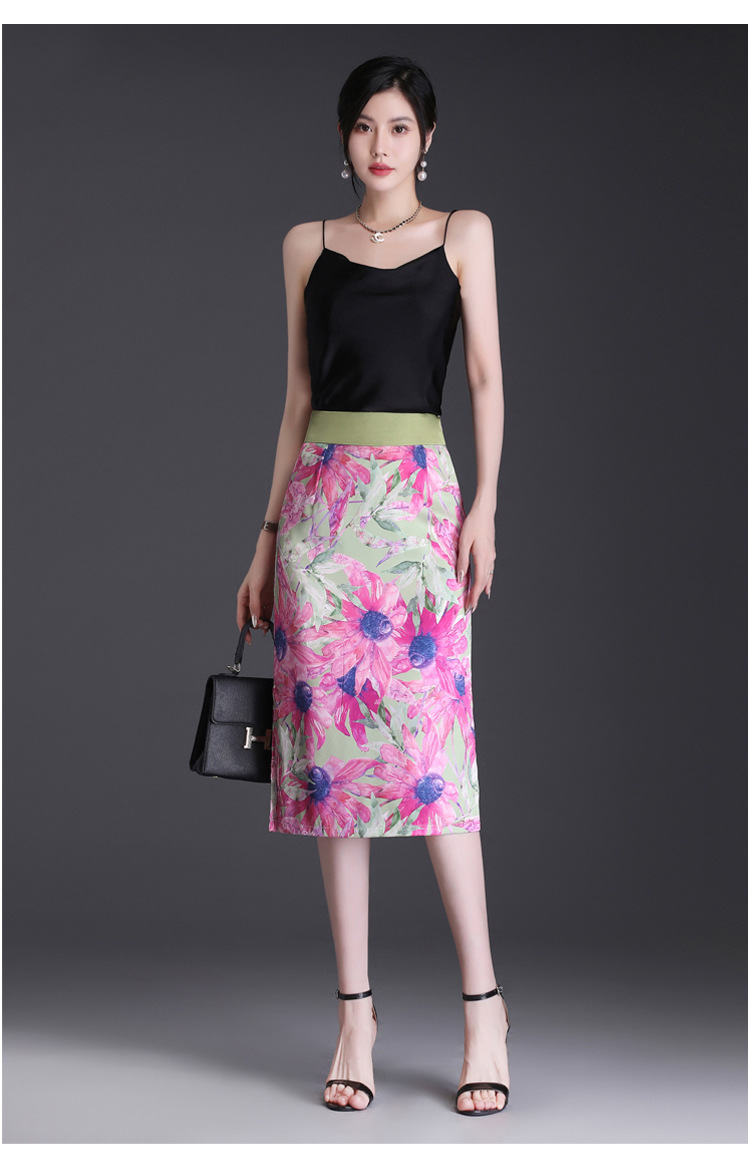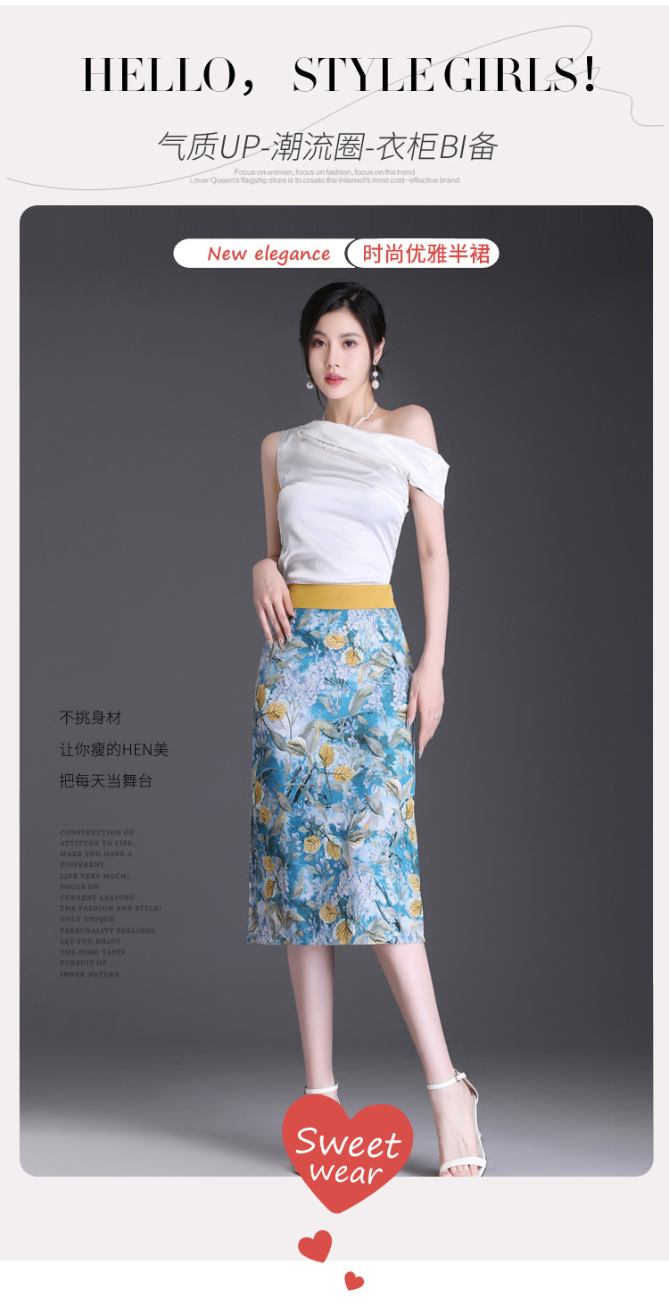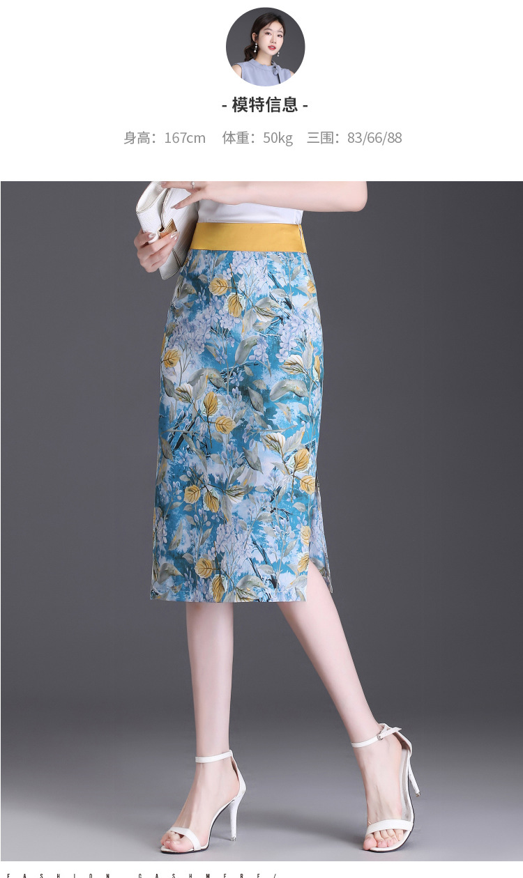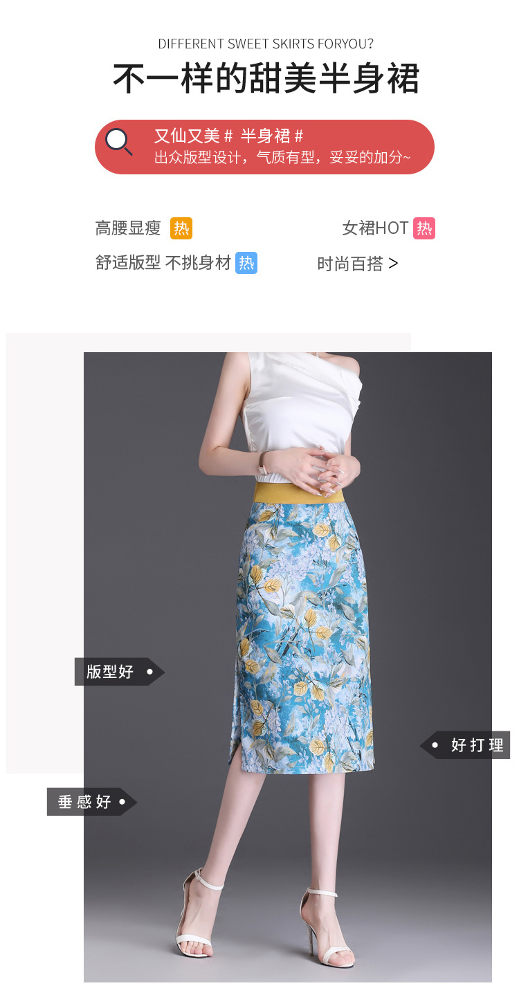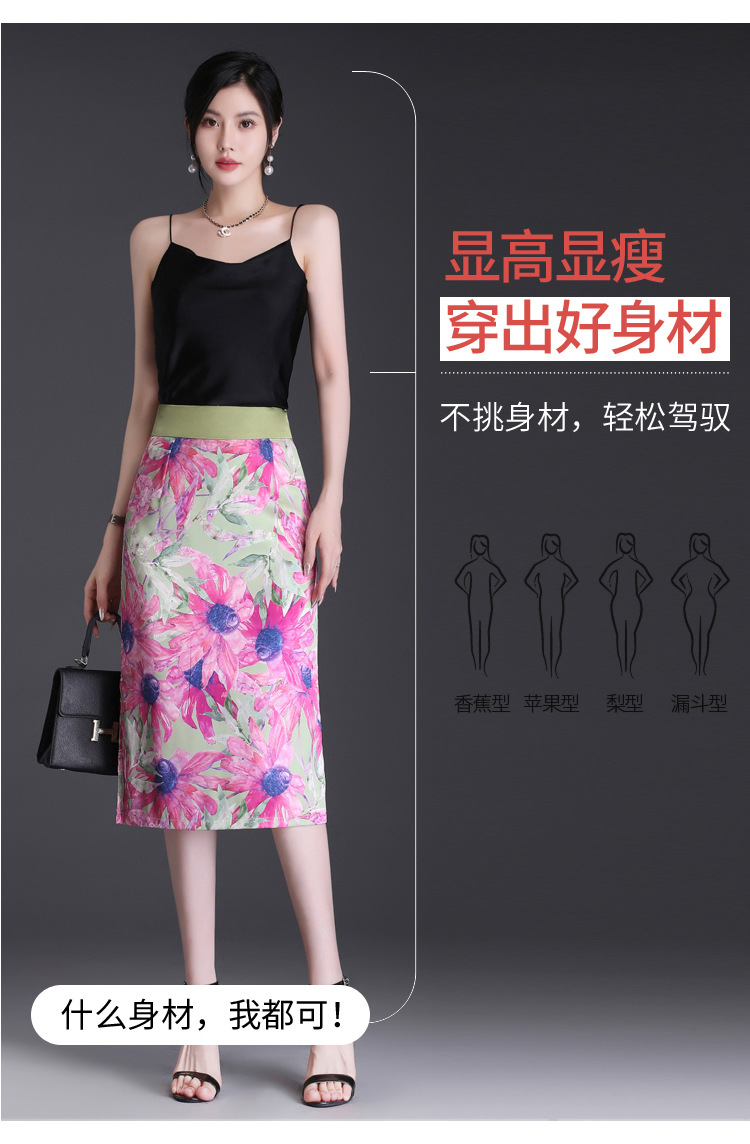 优雅气质,印花通勤中长款修身时尚包臀裙夏款高腰半身裙MYX-6678