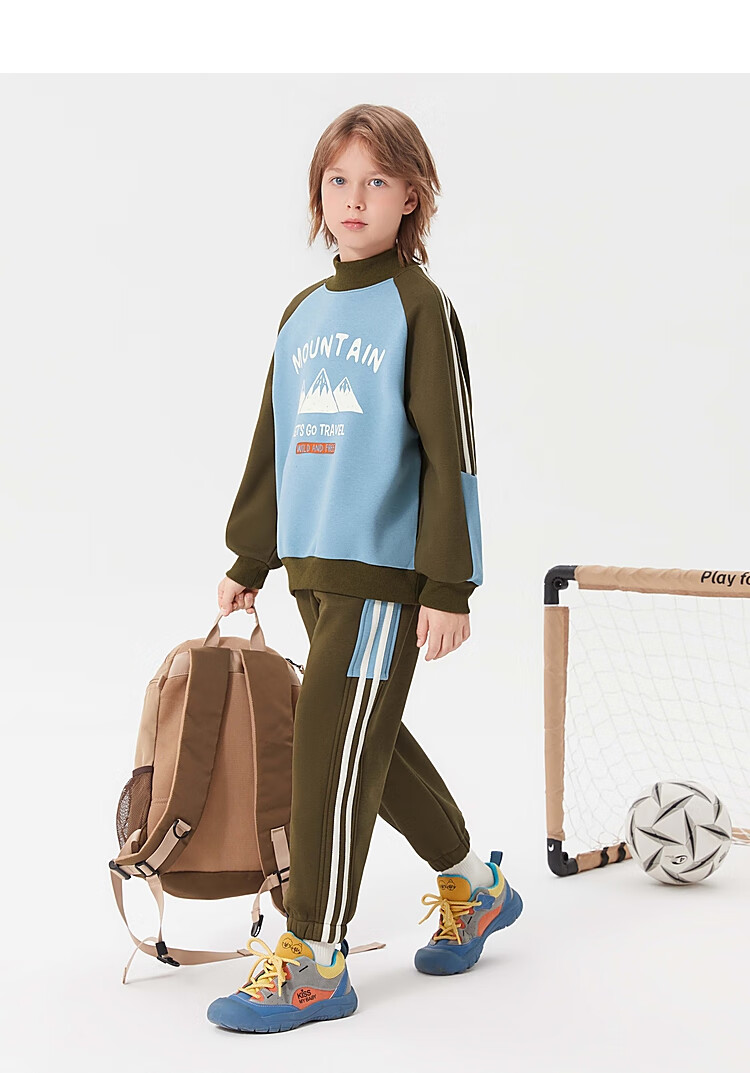 【MQD】【上衣裤】童装男大童冬新款撞色运动条杠学院风套装