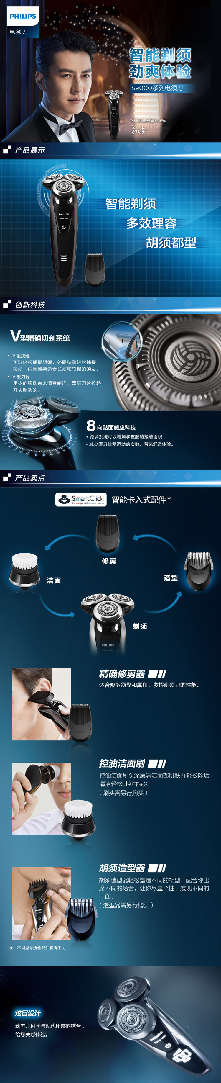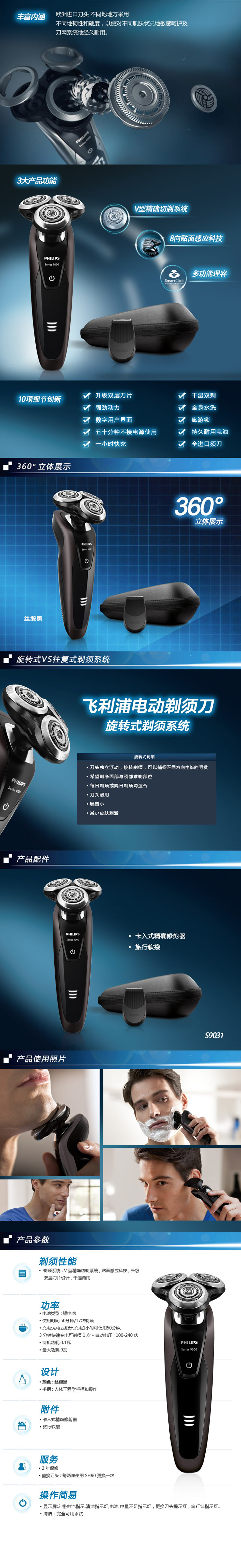 飞利浦(PHILIPS)电动剃须刀 S9031/12 荷兰进口 多功能理容 全身水洗 三刀头刮胡刀
