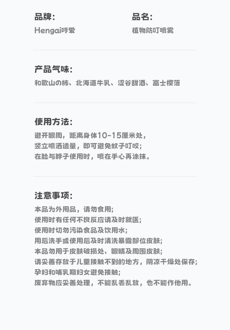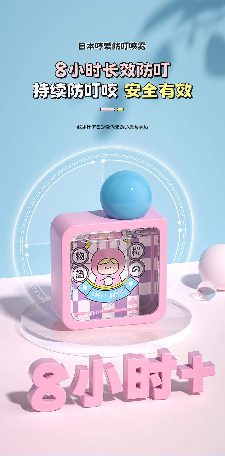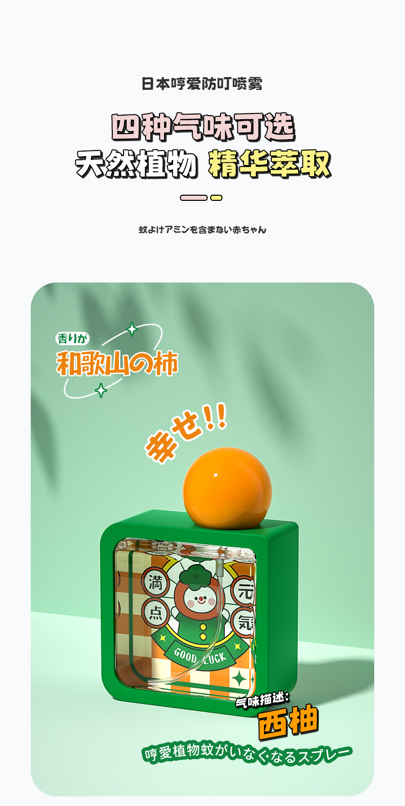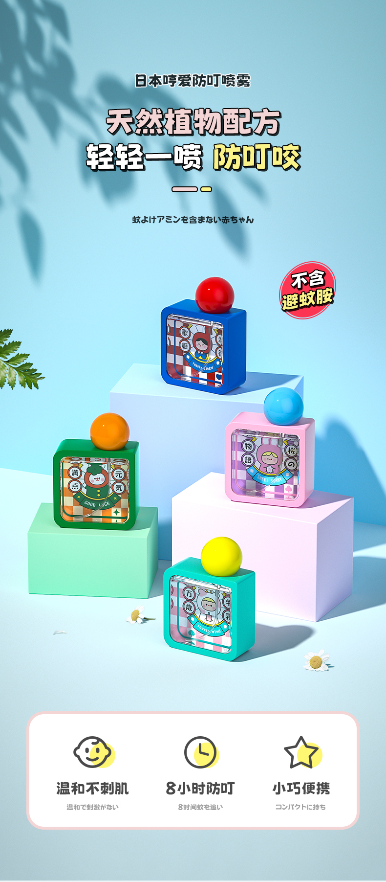 【植物萃取 长效防叮!】日本哼爱叮叮植物防护喷雾 方形款 宝宝婴儿防蚊液儿童户外花露水 40ml/瓶