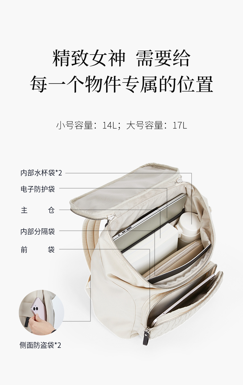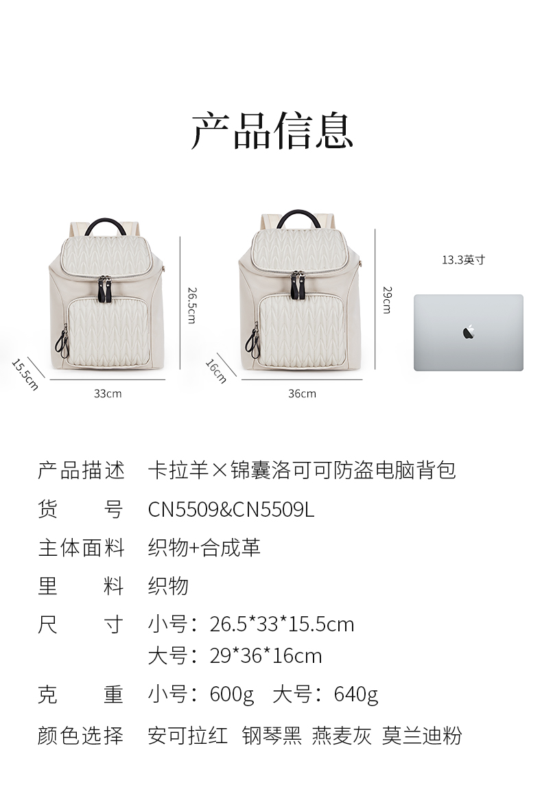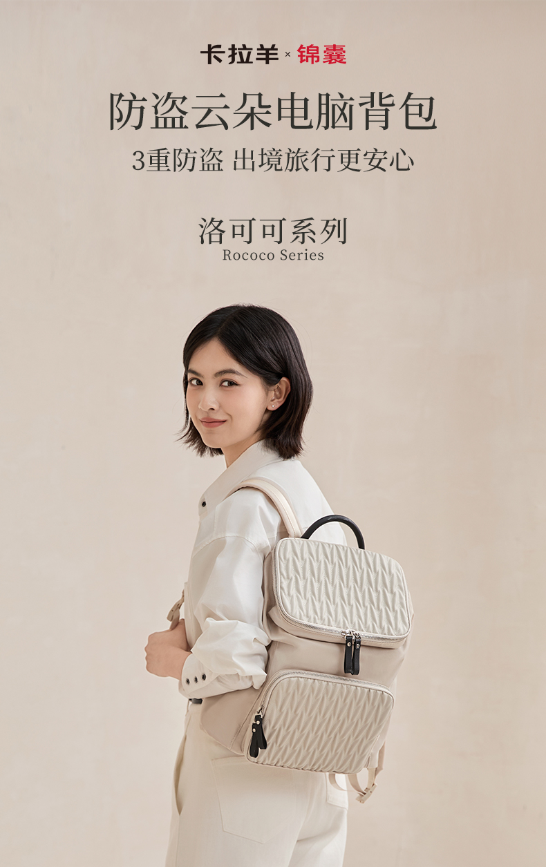 【通勤旅行防盗】卡拉羊X锦囊洛可可云朵防盗女士电脑双肩包CN5509/L