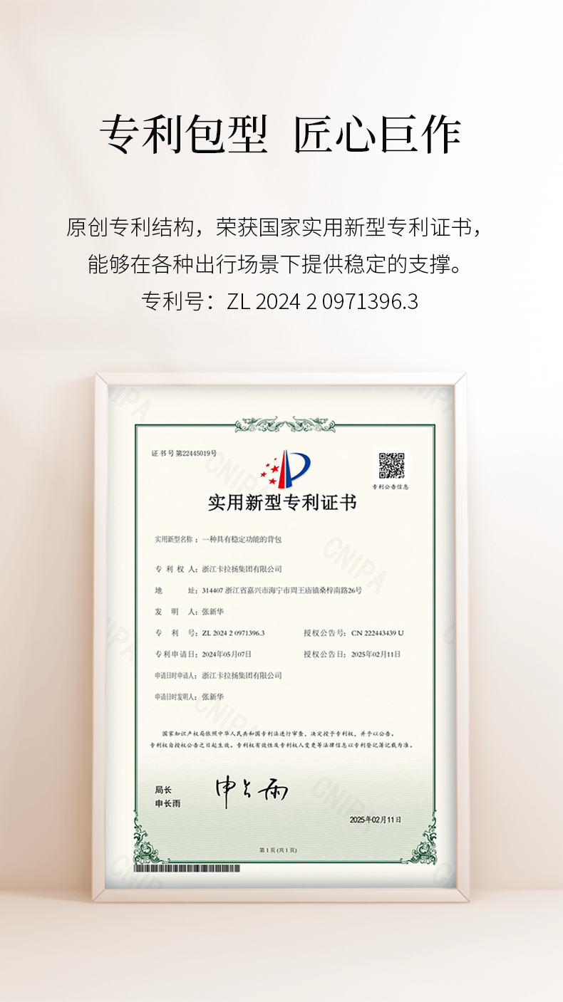 - 浙江卡拉扬集团有限公司专注箱包27年,旗下有卡拉羊和9UM两大品牌,有浙江海宁和江苏沭阳两大工厂,拥有多项知识产权,是集智能化、设计生产、品牌营销为一体的综合型企业。
