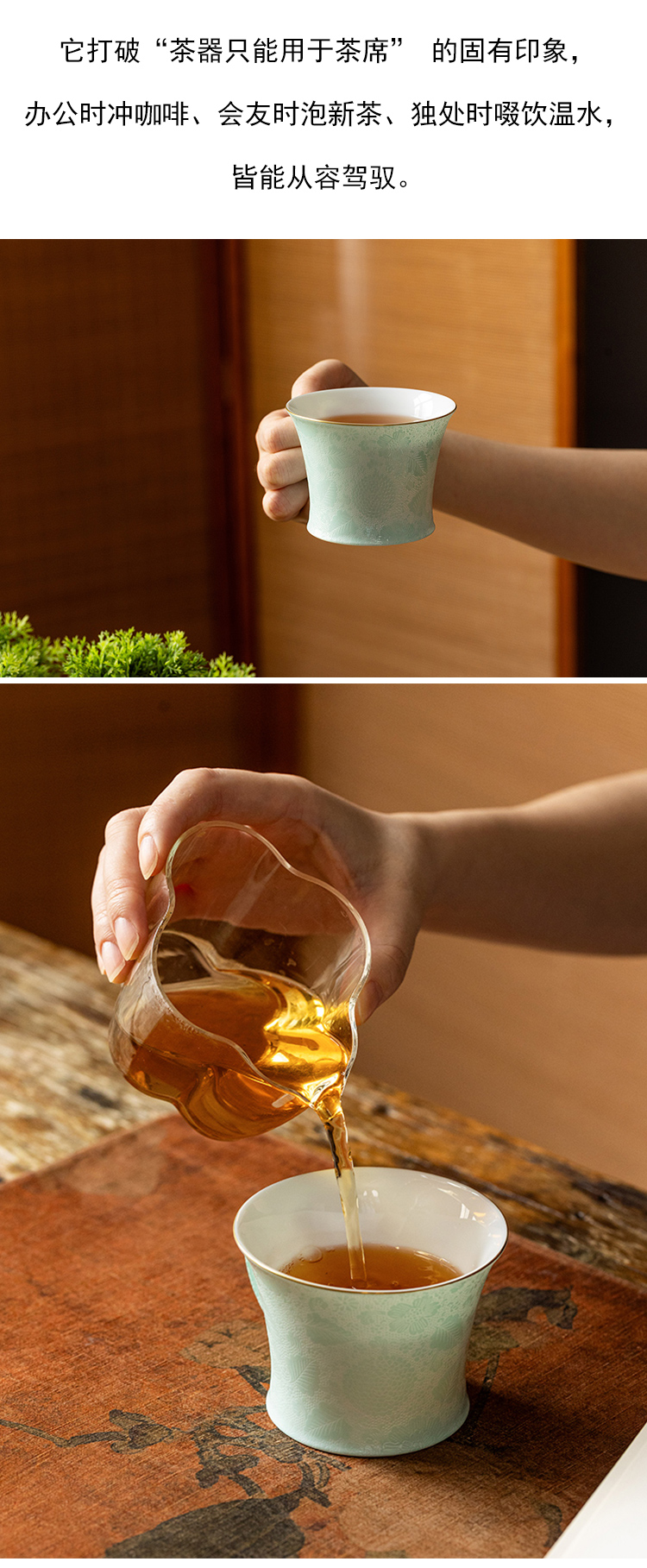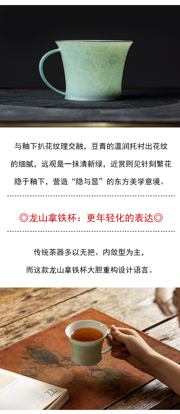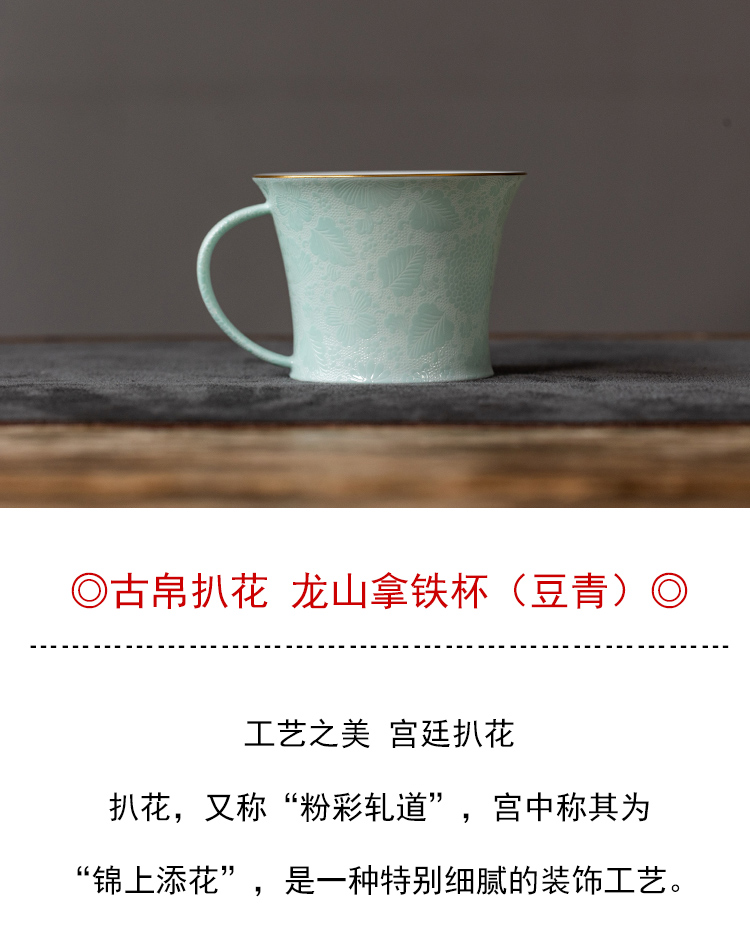 茶香记古帛扒花龙山拿铁杯(豆青)茶杯景德镇陶瓷主人杯180ml茶室茶具
