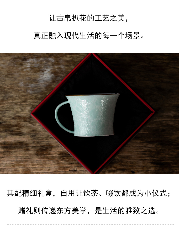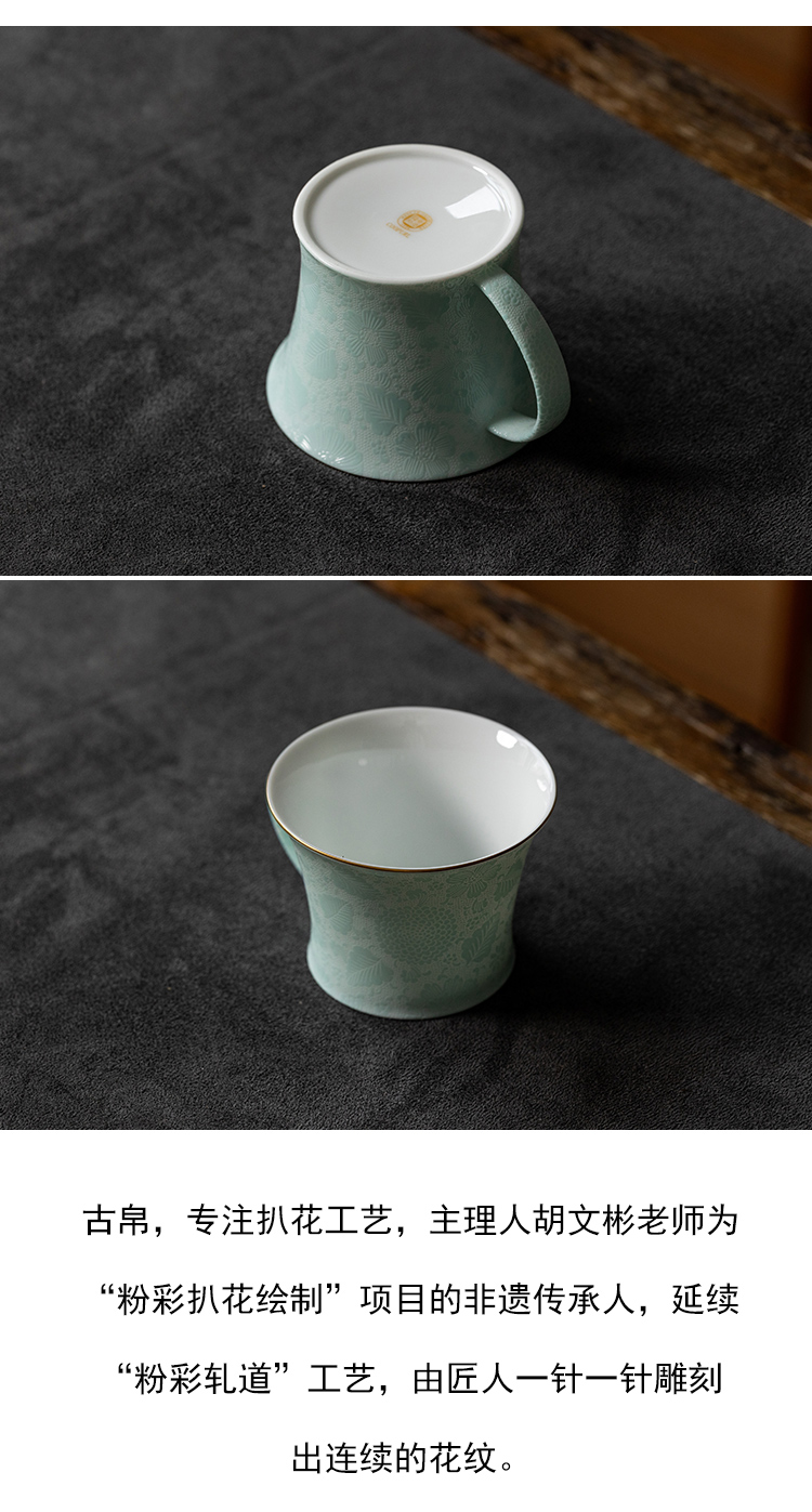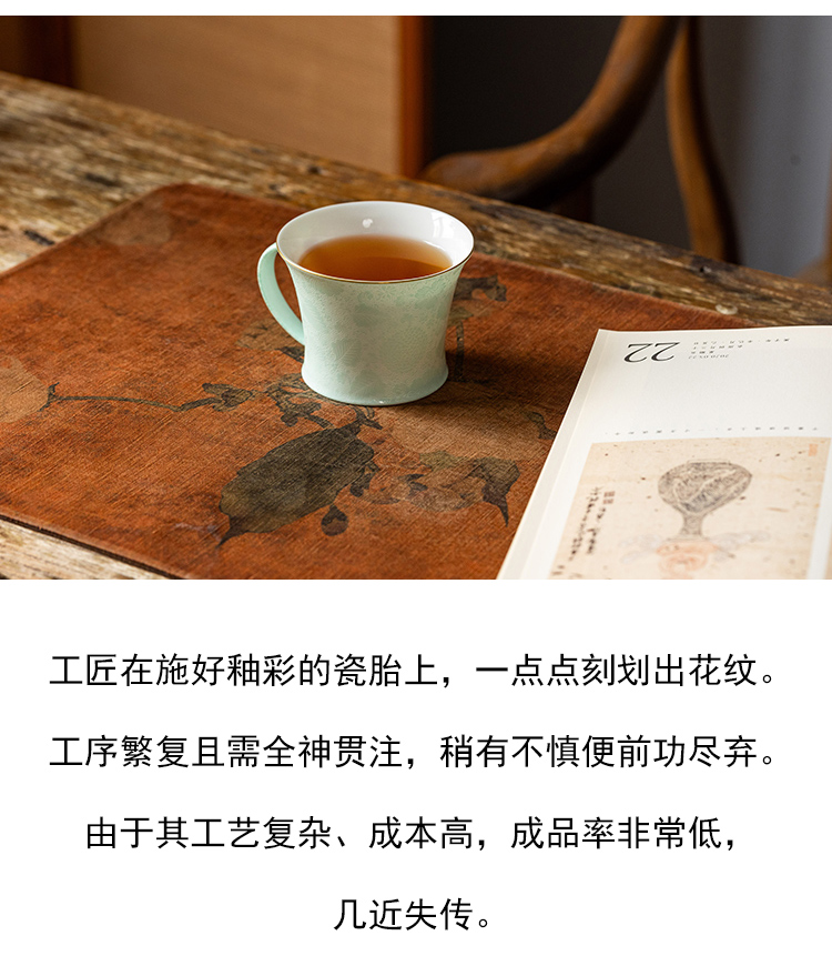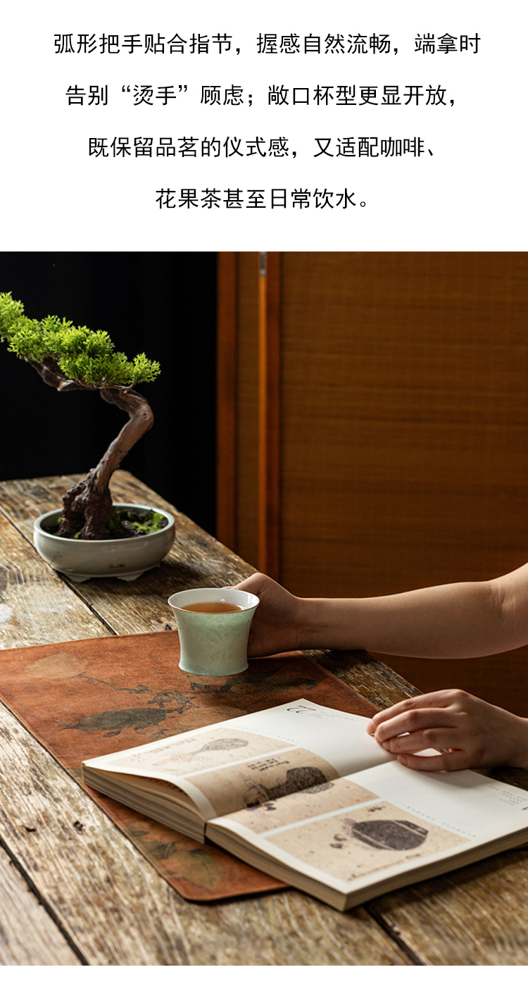 茶香记古帛扒花龙山拿铁杯(豆青)茶杯景德镇陶瓷主人杯180ml茶室茶具