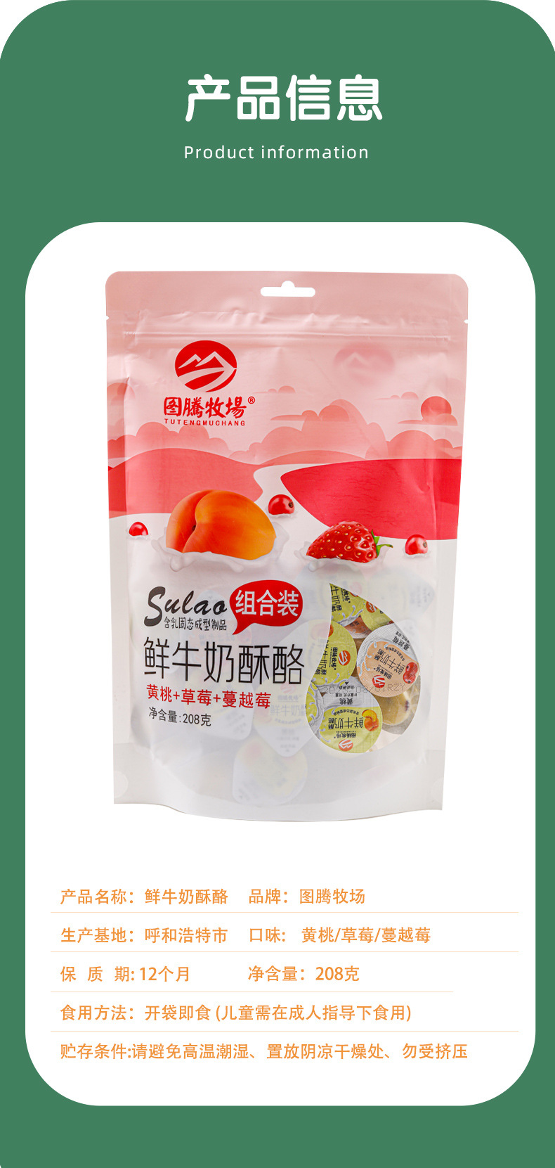 【奶香浓郁!真实果粒】图腾牧场鲜牛奶酥酪果粒乳酪杯酪内蒙古特产儿童零食独立包装208g。xa