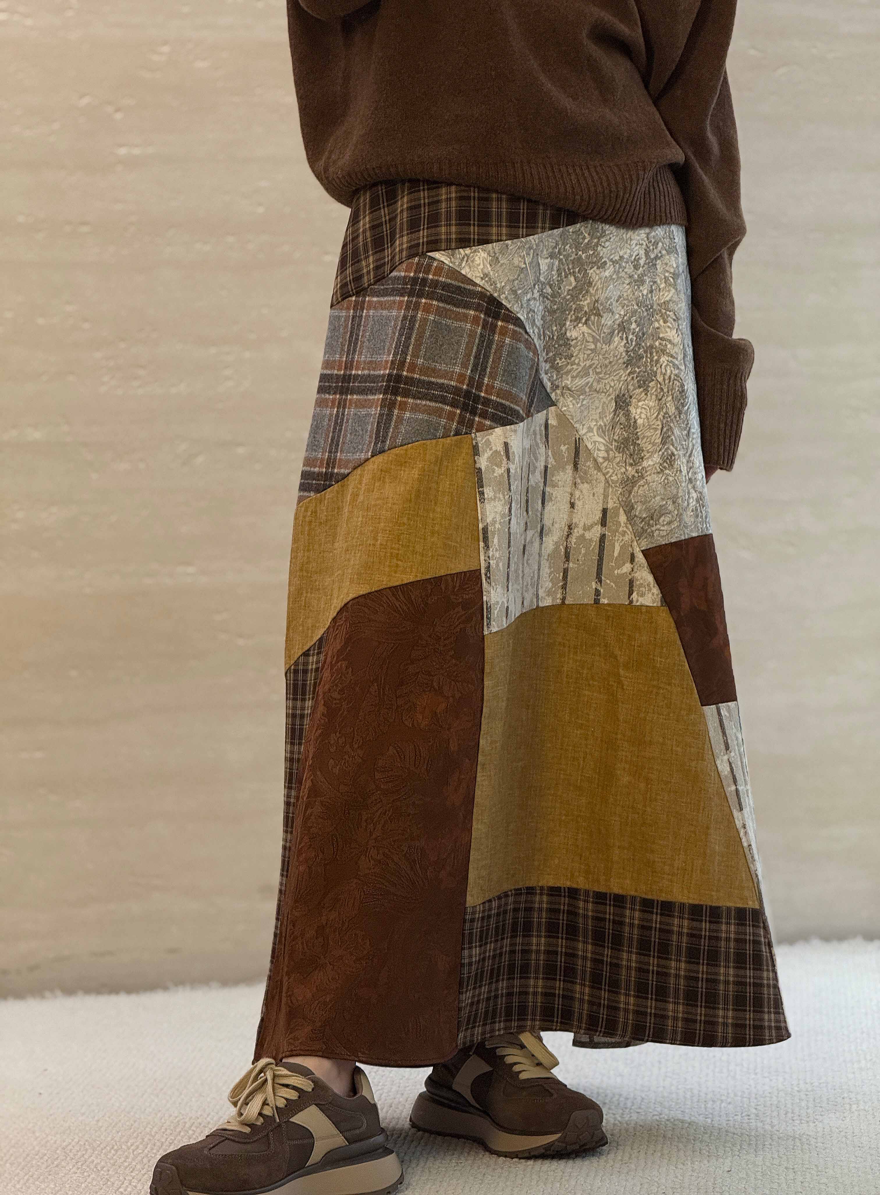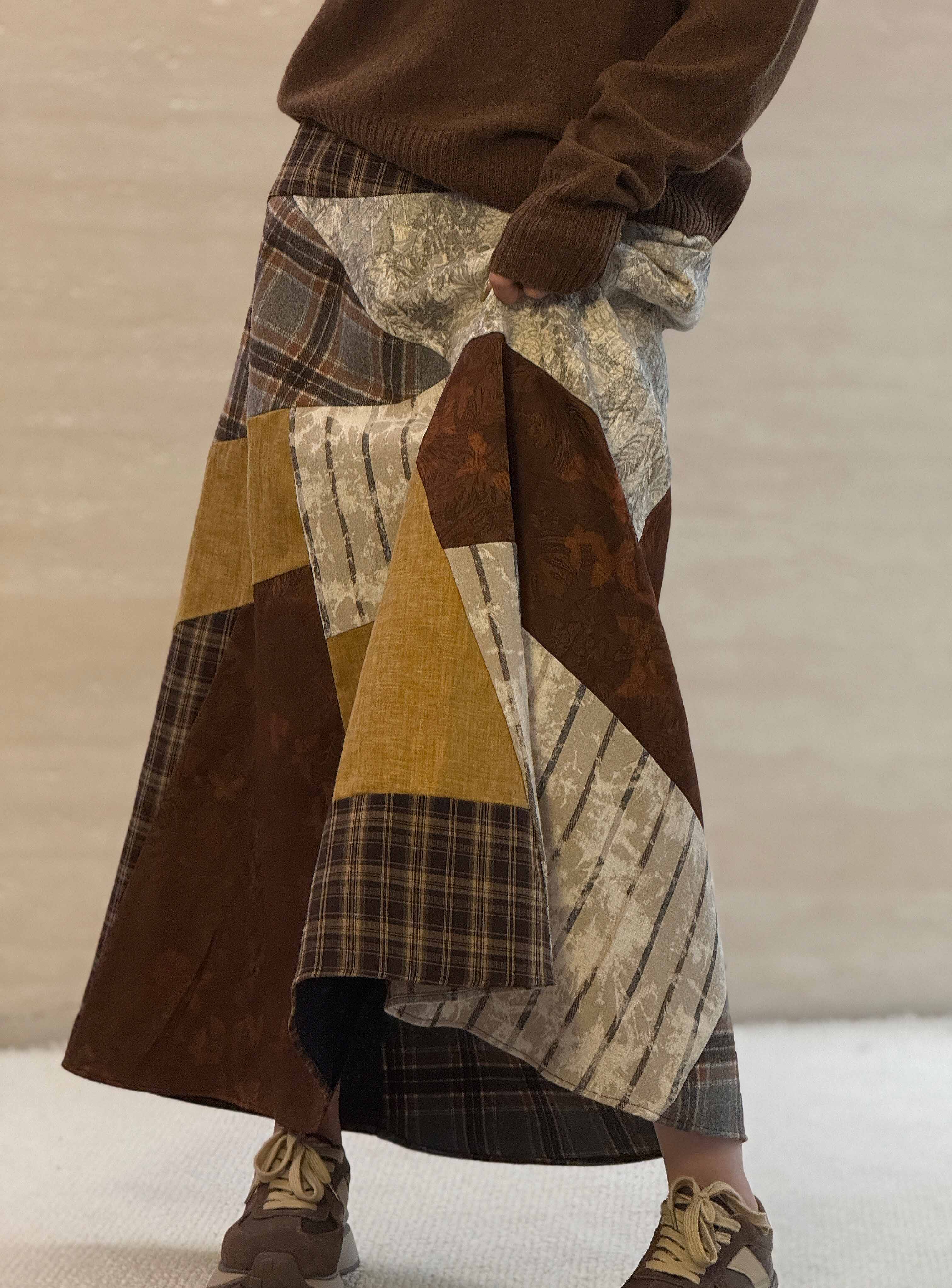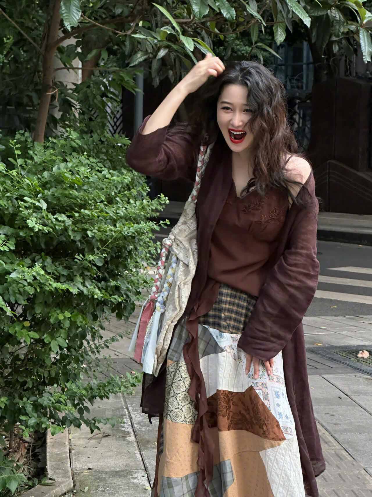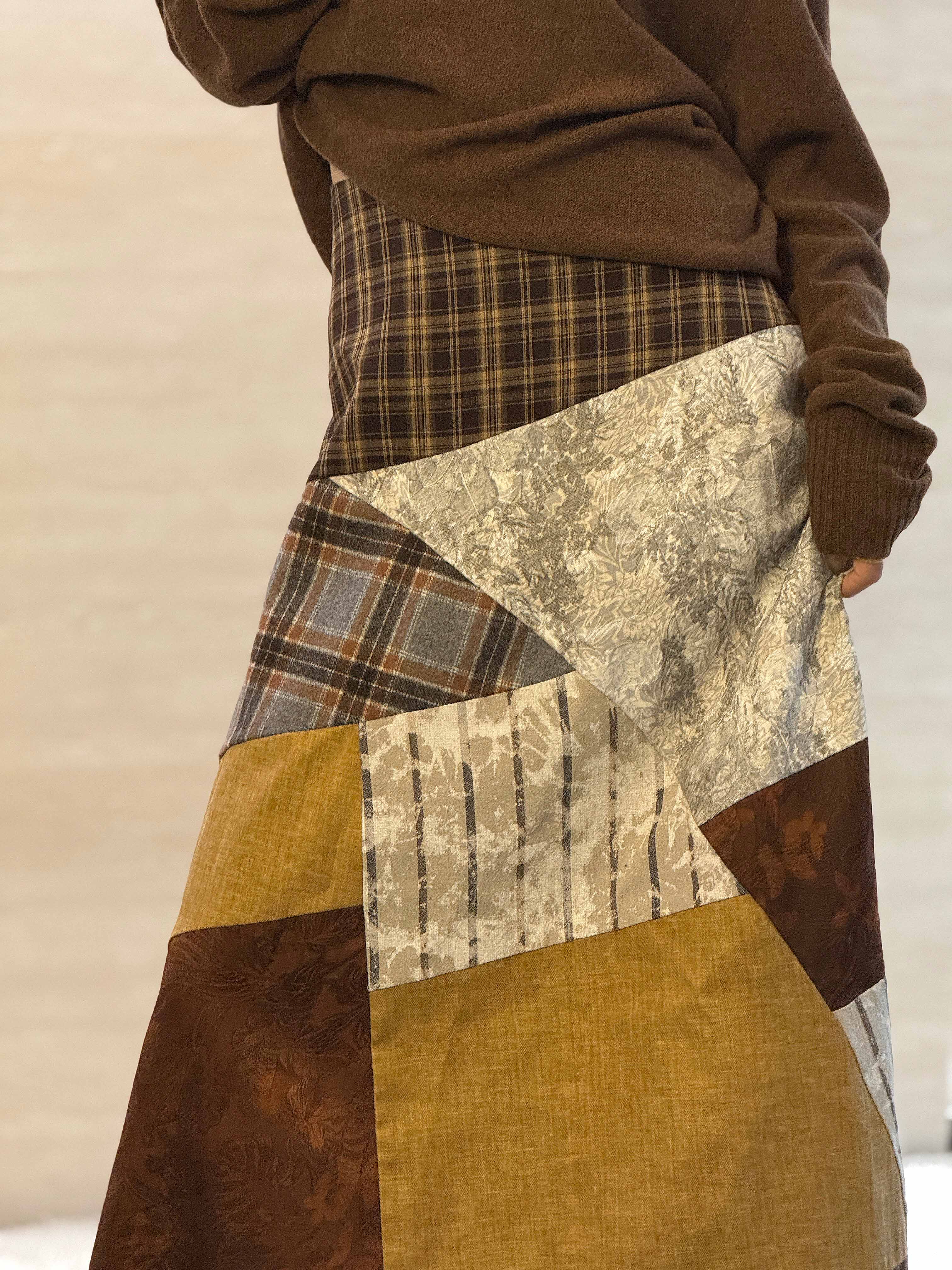 【迪丽热巴、张予曦同款】复古撞色拼接百家布半裙,浪漫美丽~