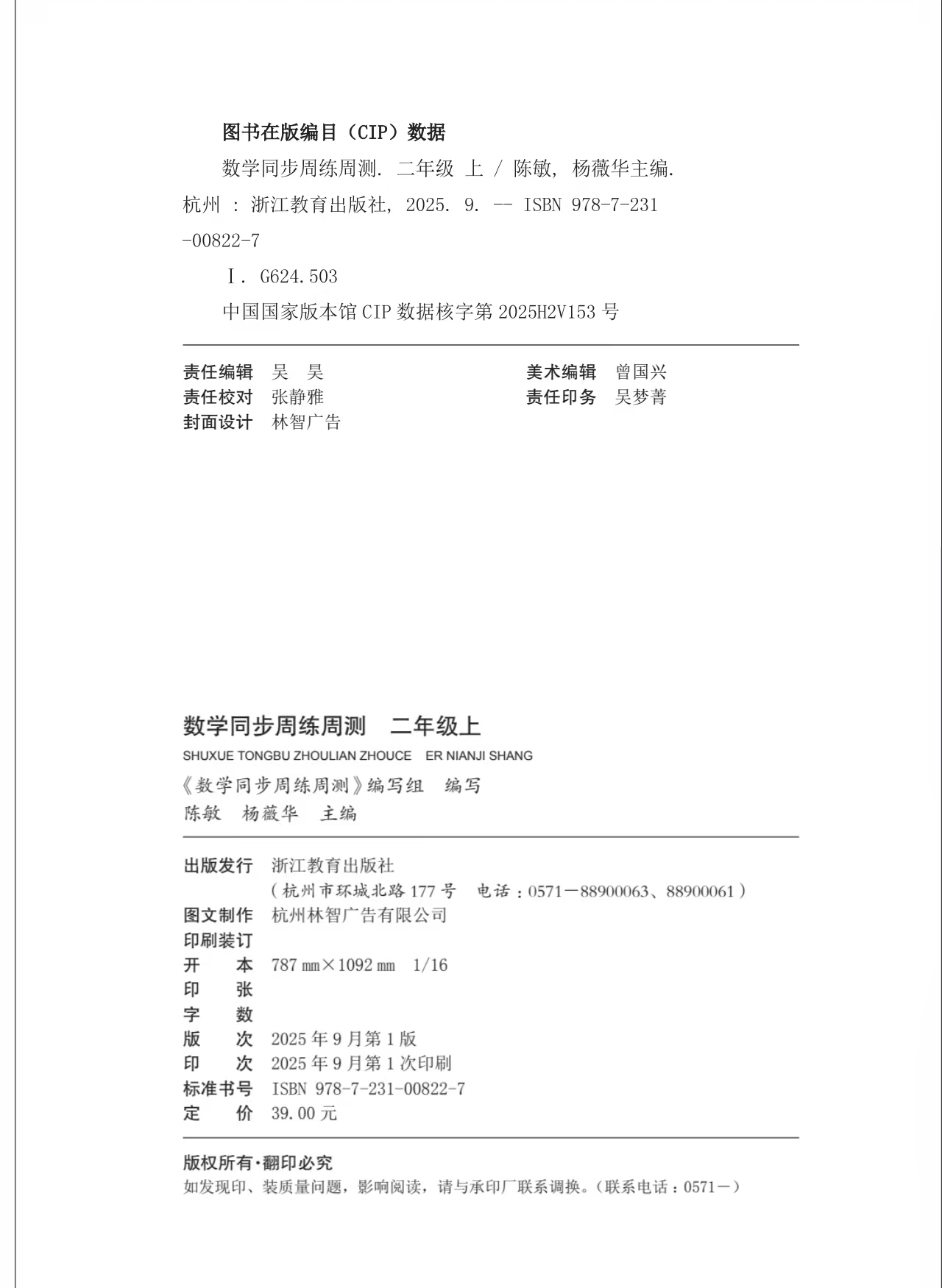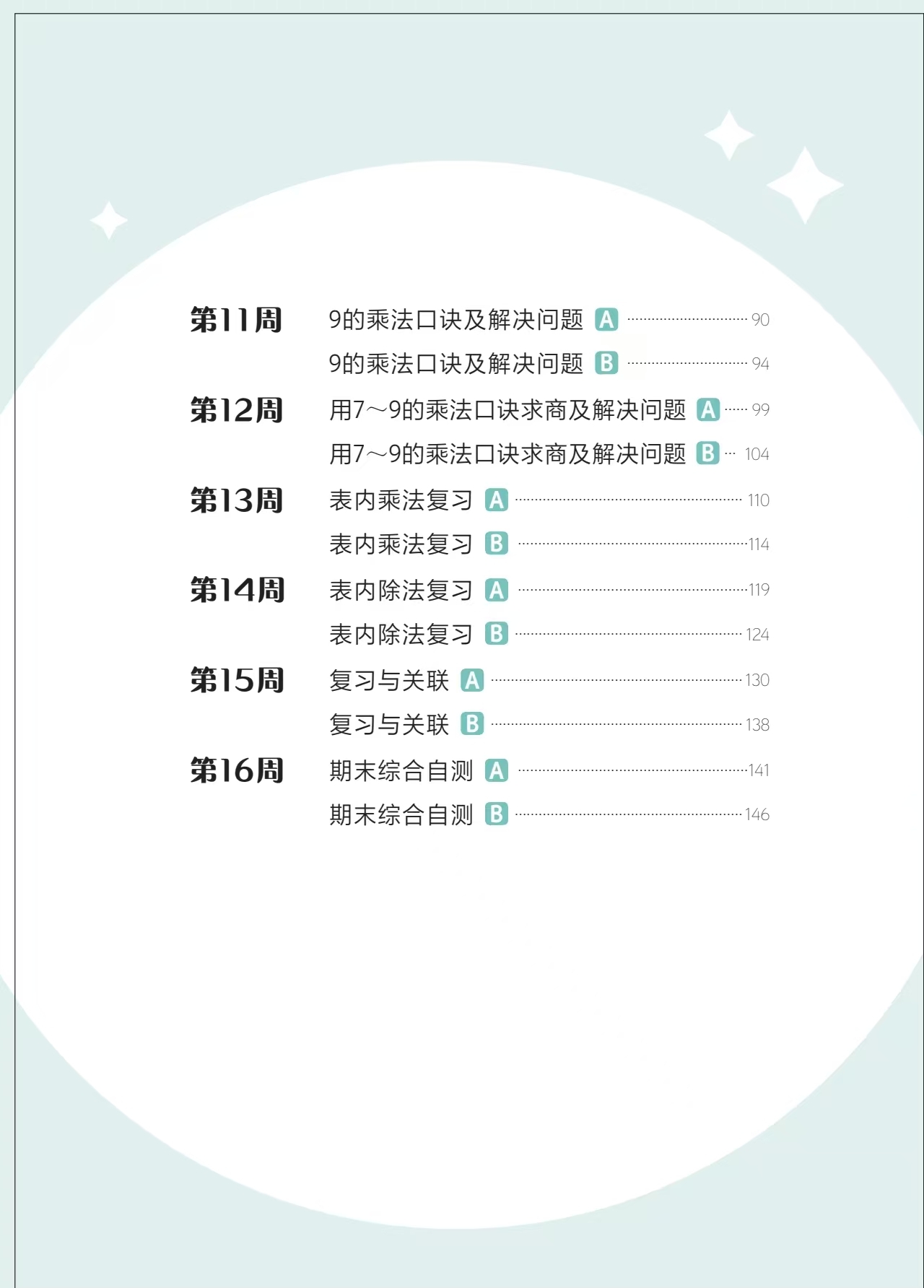 2025秋季小学数学同步周练周测(二年级上册)R人教版数学同步作业本同步课堂练每周一练