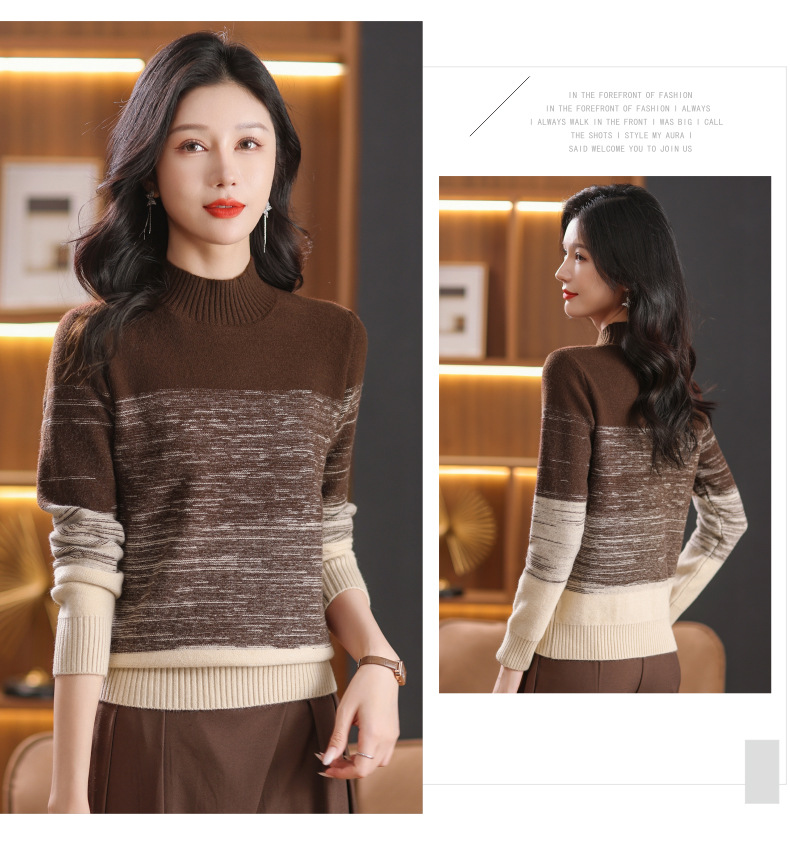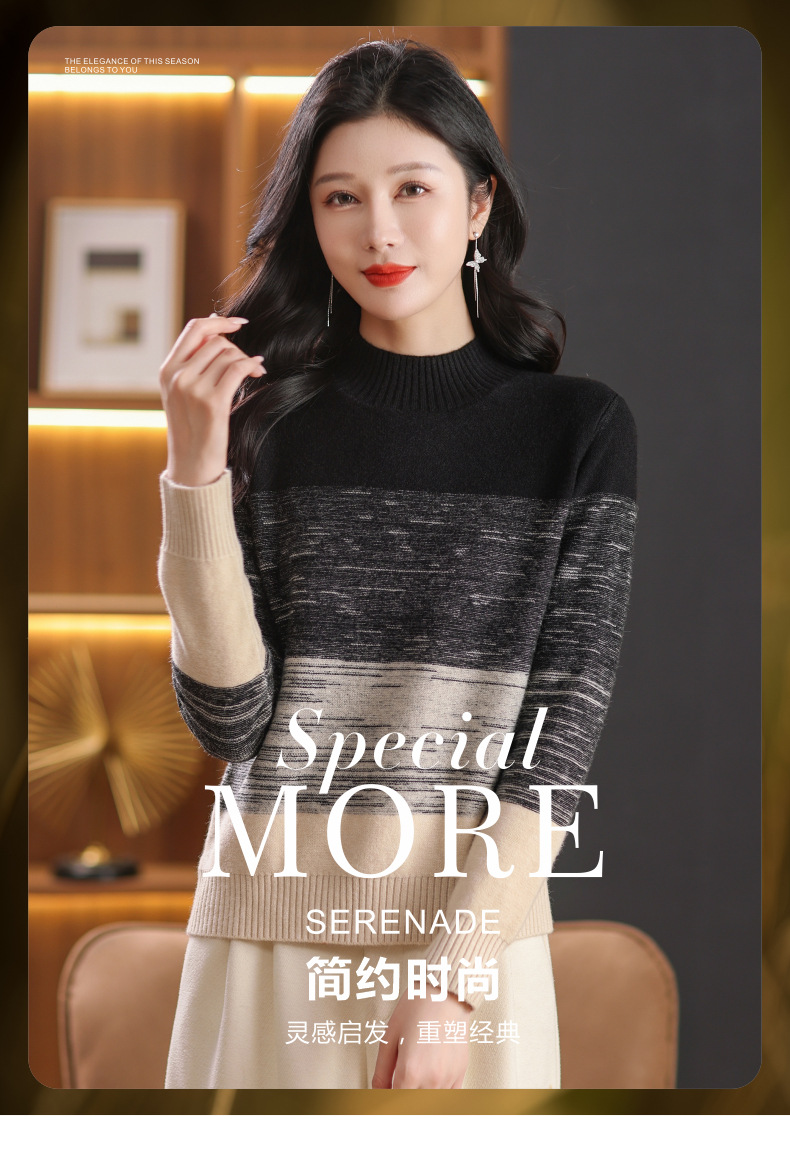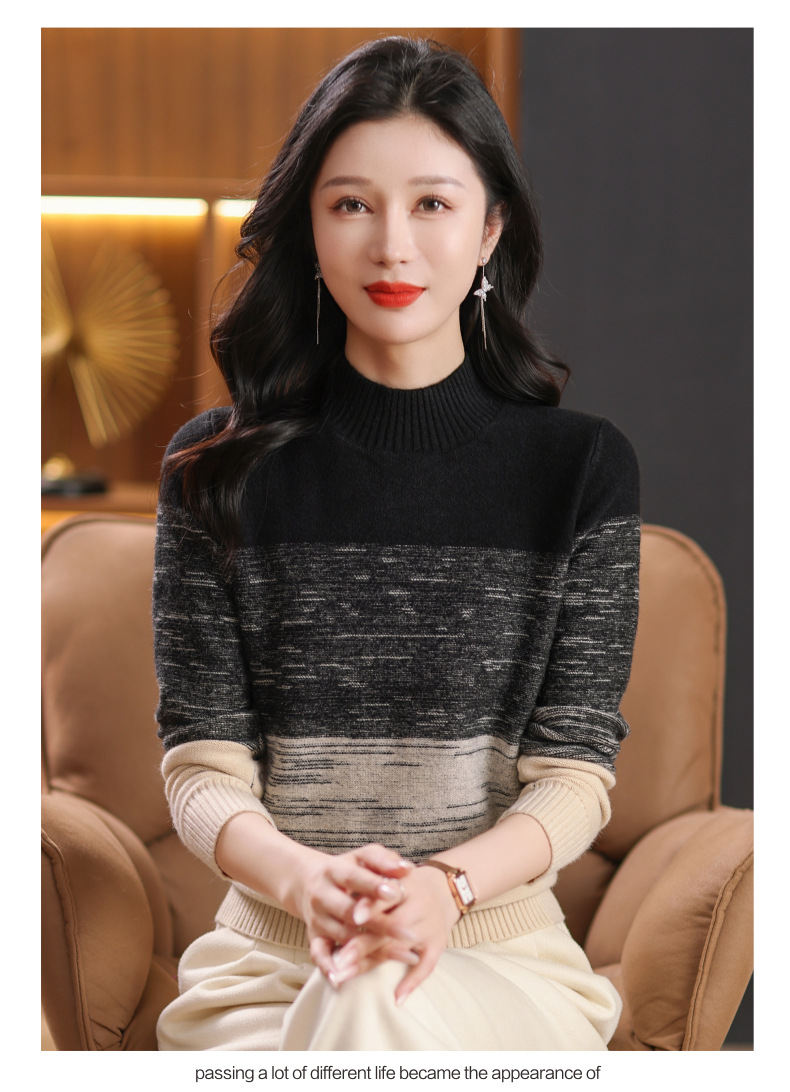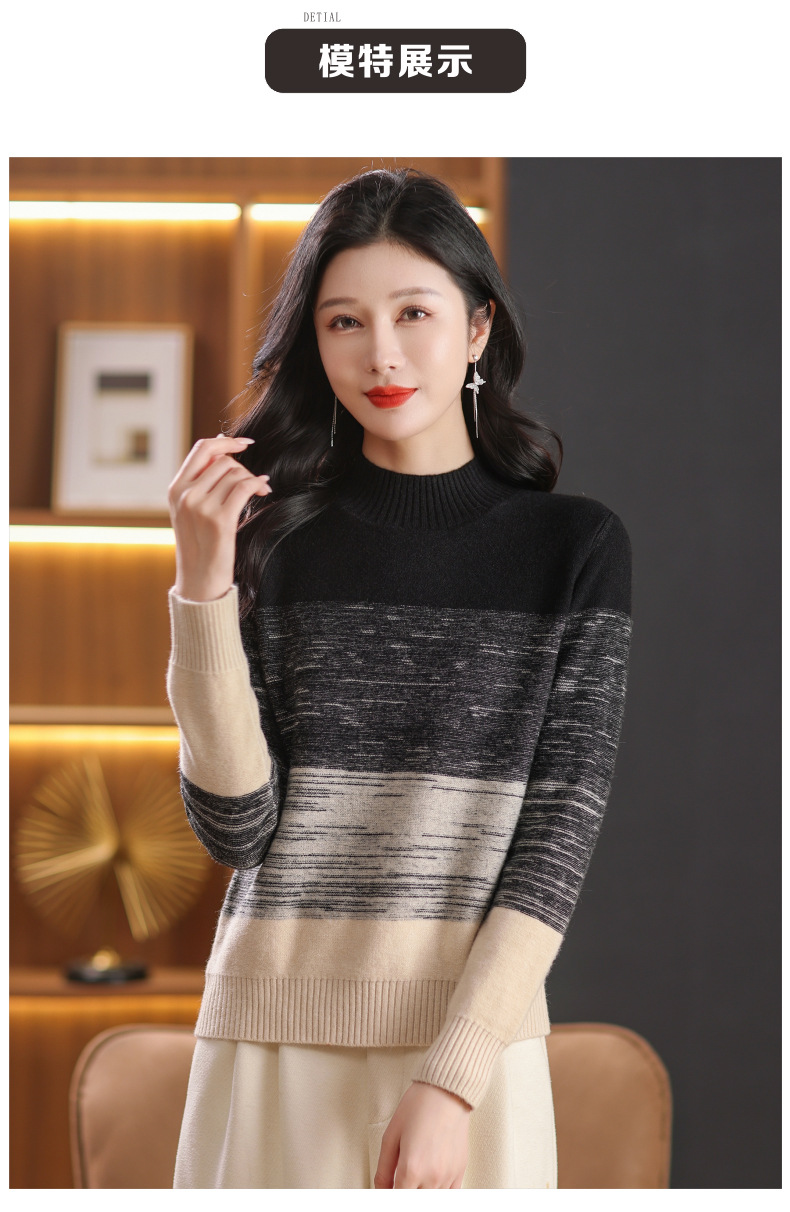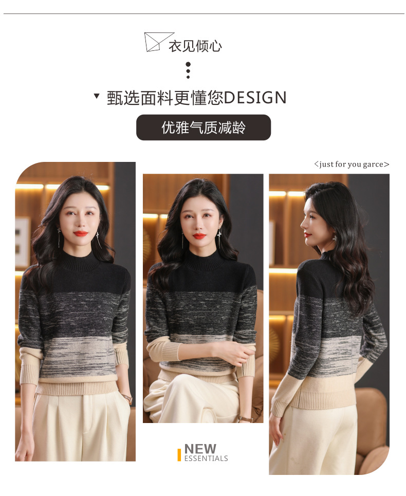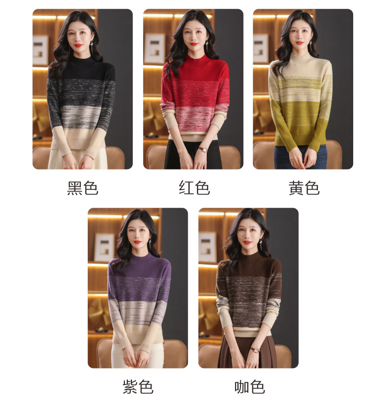 CC-103-1391秋冬季女士打底衫2024新款洋气半高领撞色小个子宽松毛衣