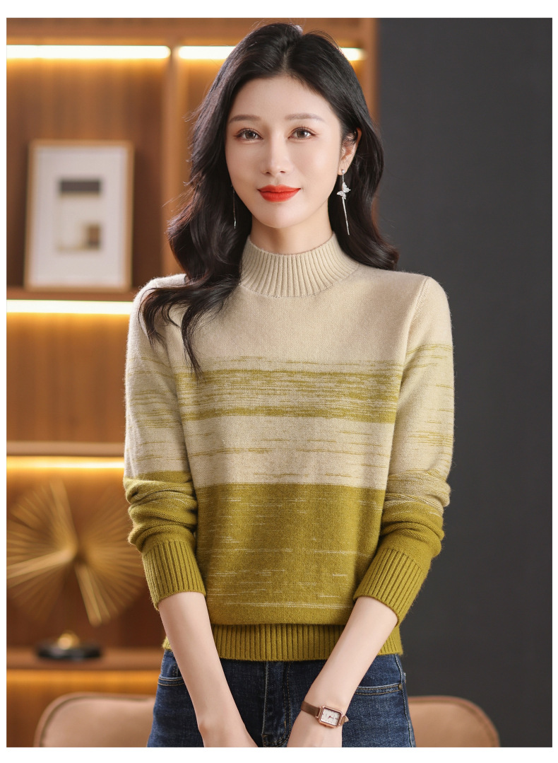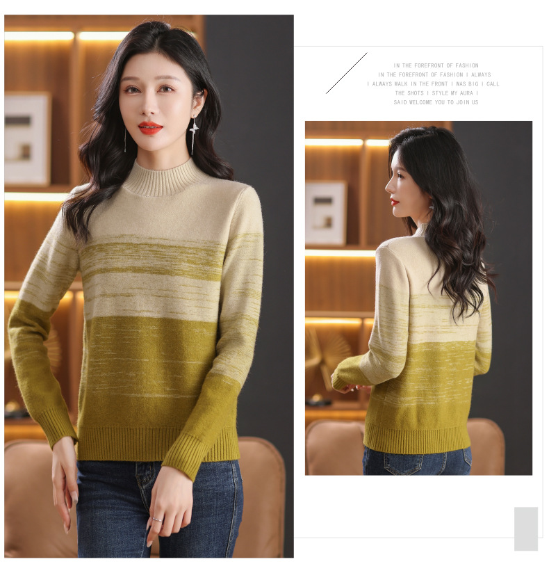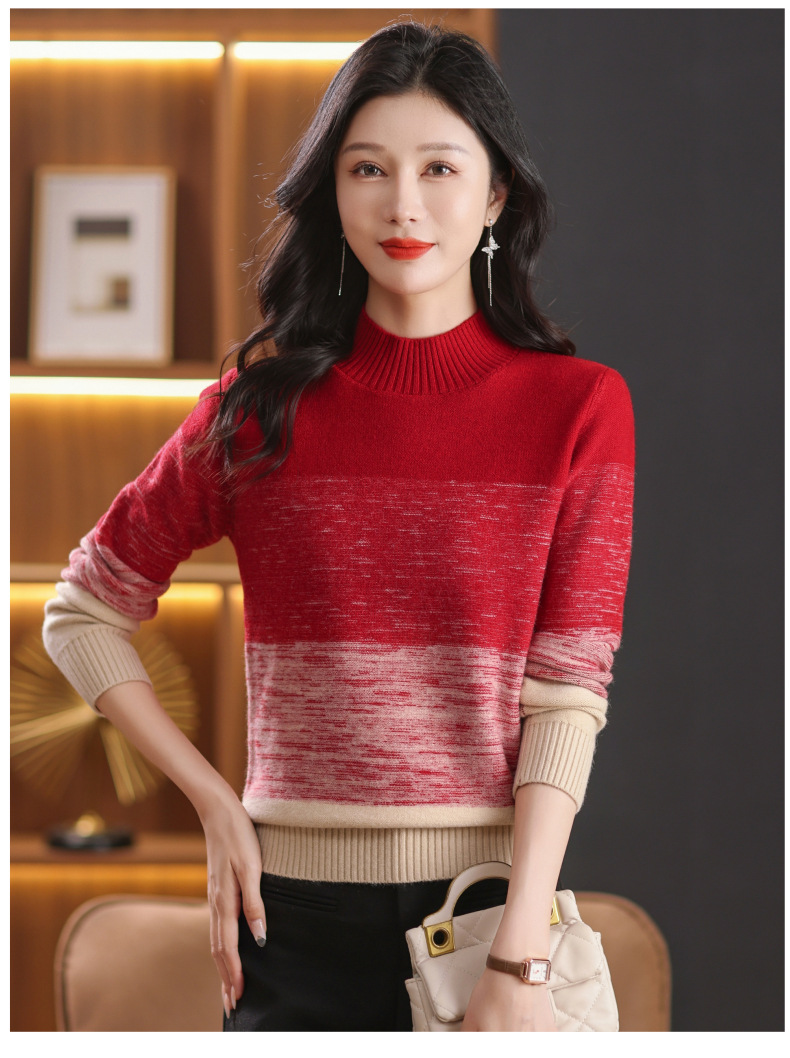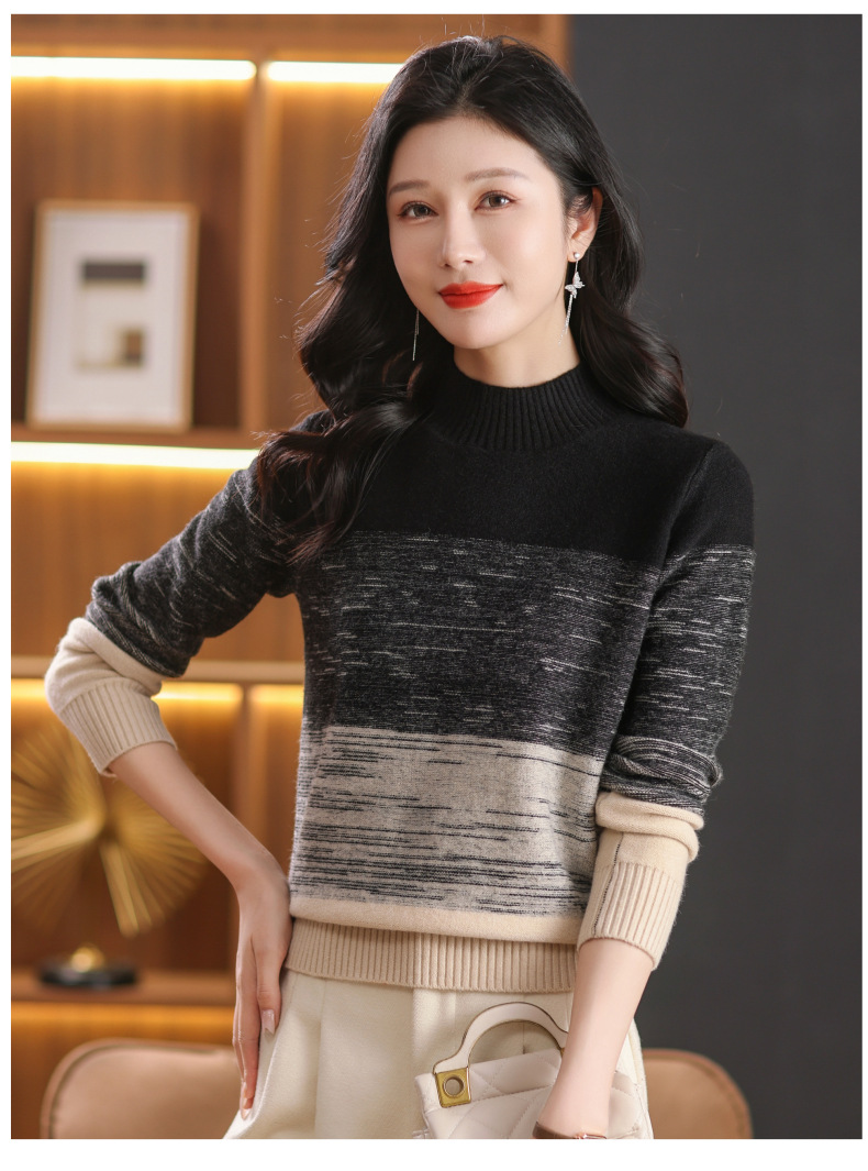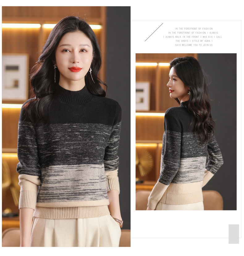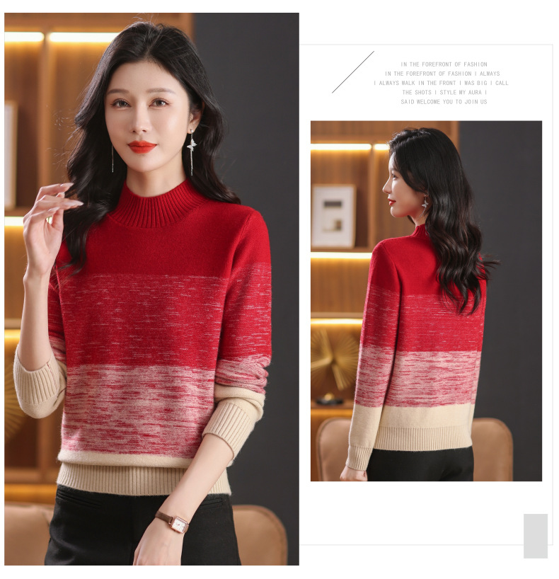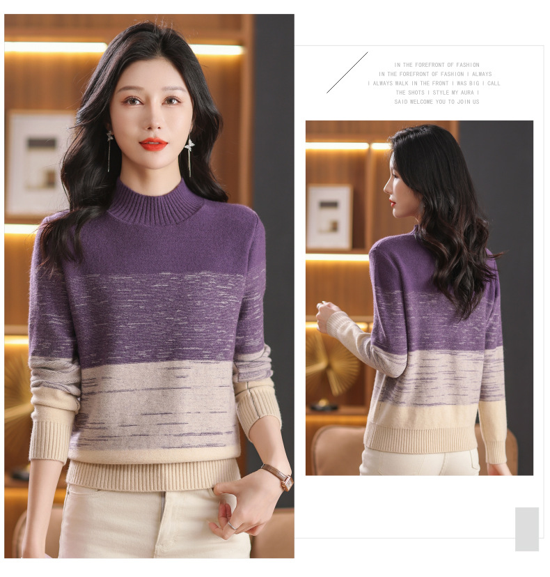 CC-103-1391秋冬季女士打底衫2024新款洋气半高领撞色小个子宽松毛衣