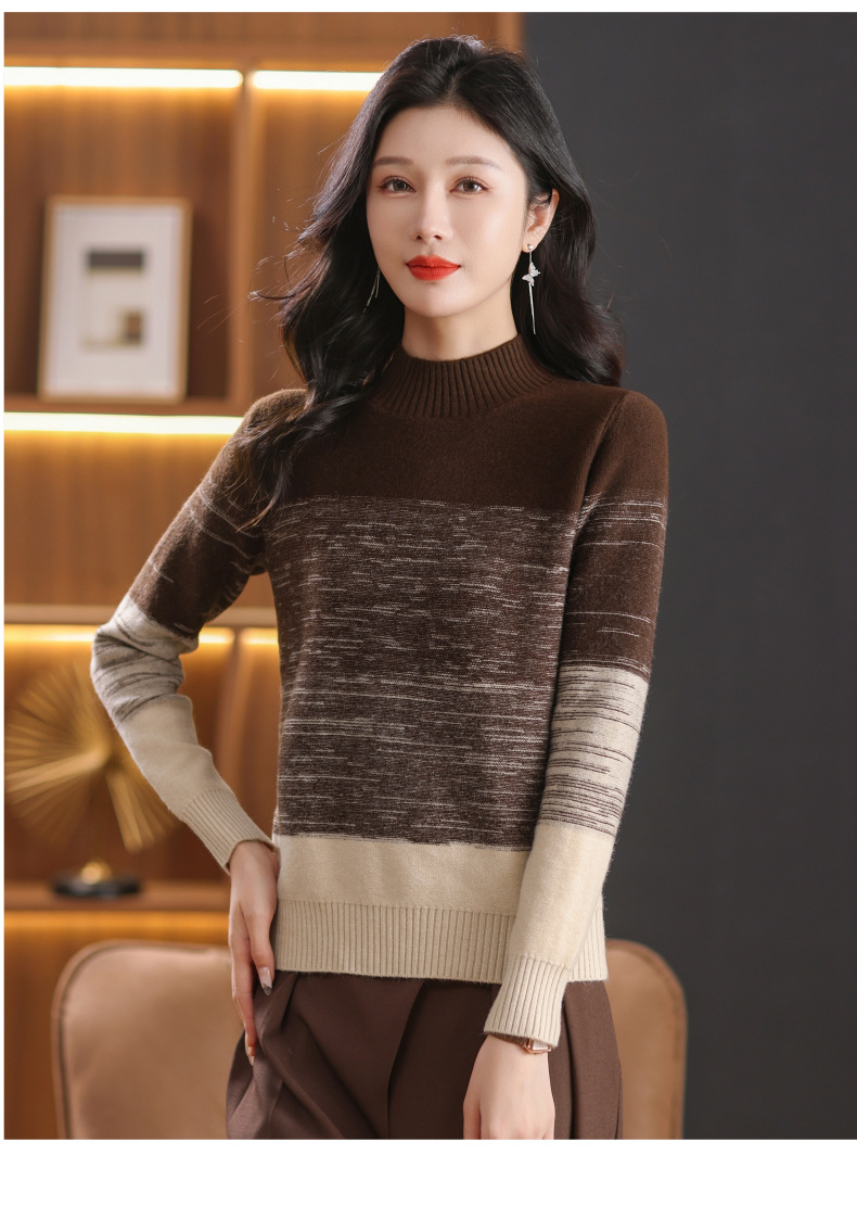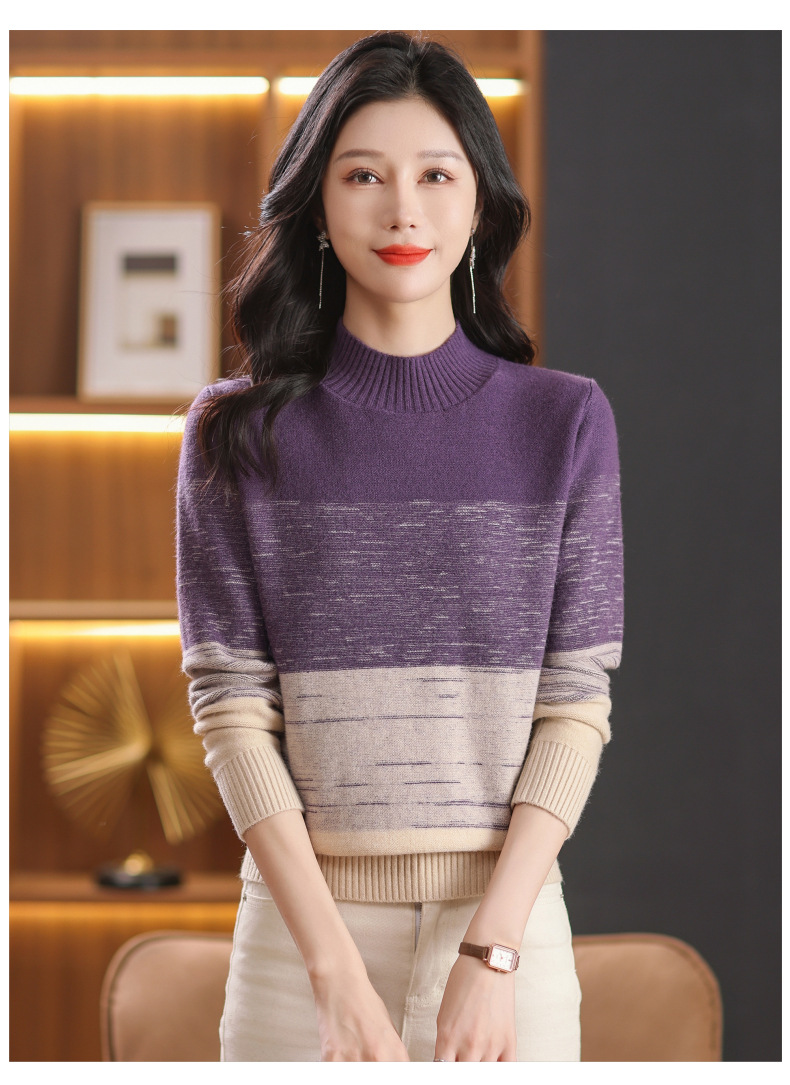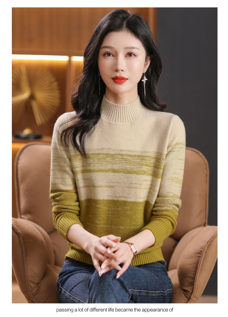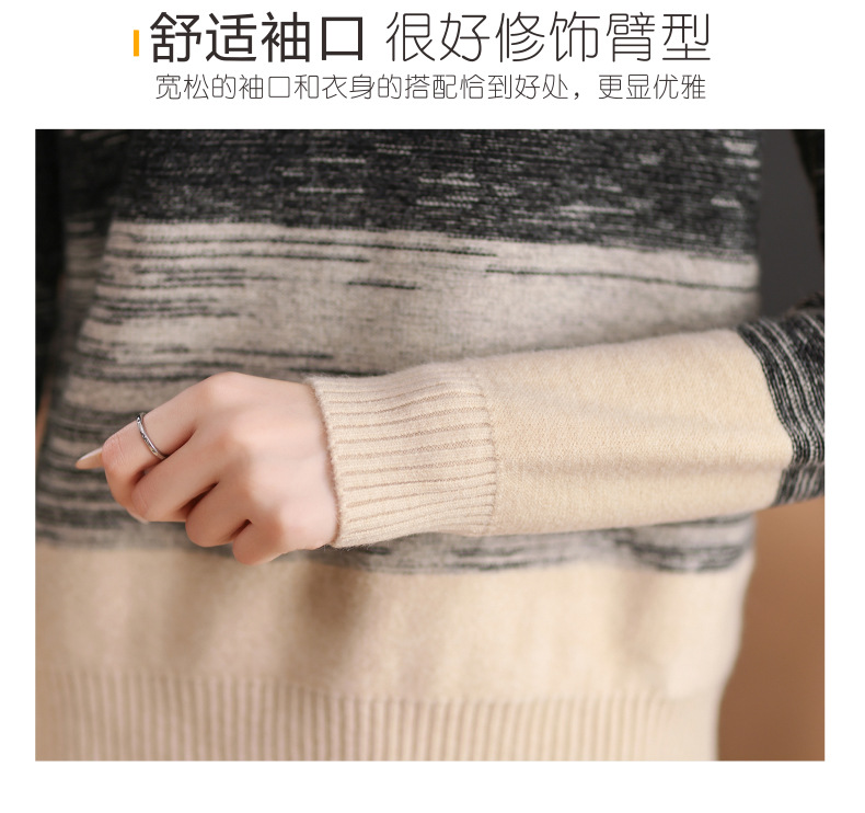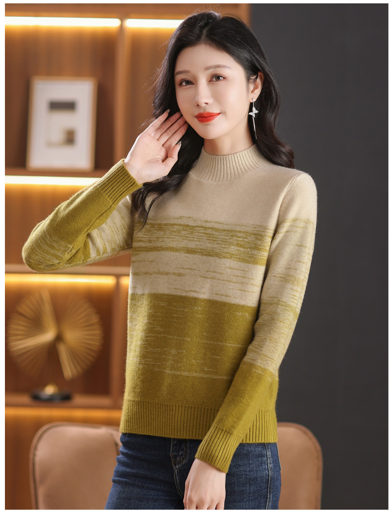 CC-103-1391秋冬季女士打底衫2024新款洋气半高领撞色小个子宽松毛衣
