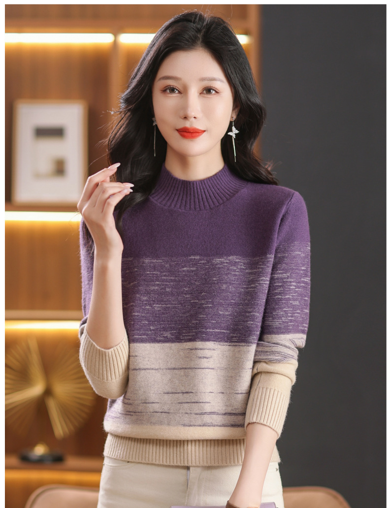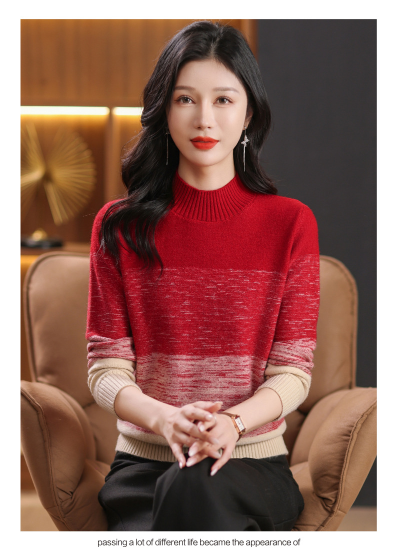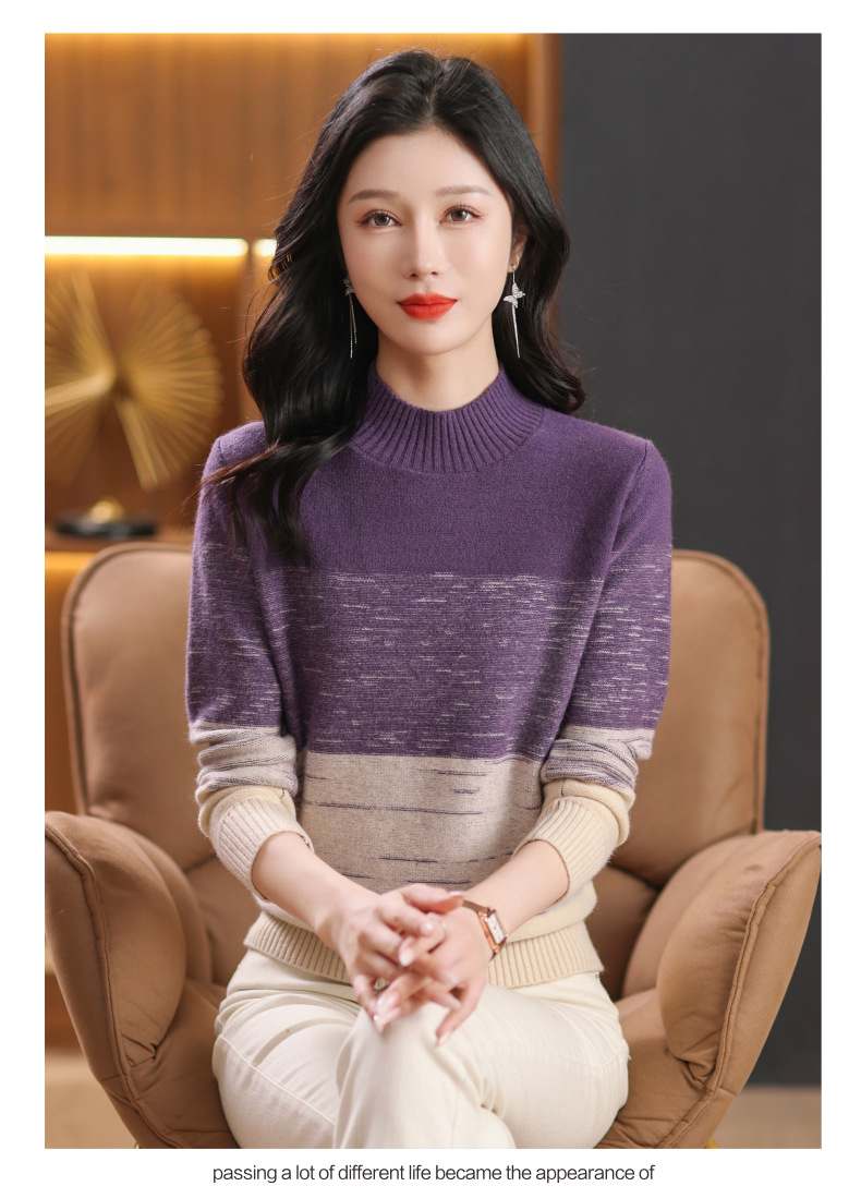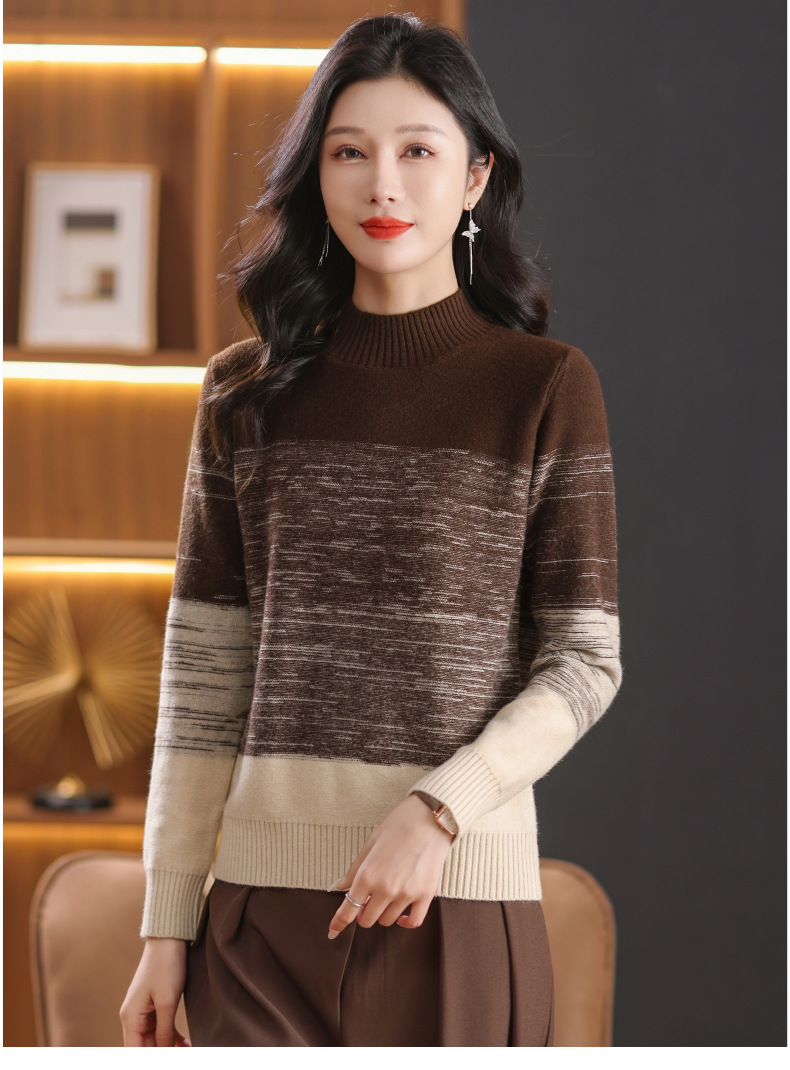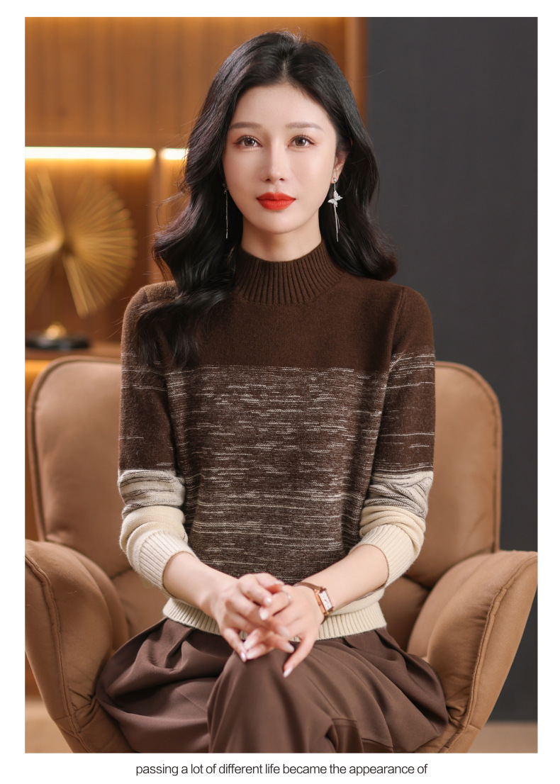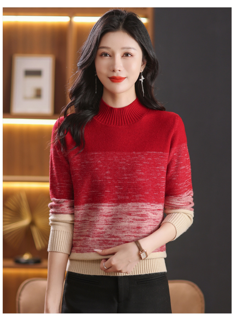 CC-103-1391秋冬季女士打底衫2024新款洋气半高领撞色小个子宽松毛衣