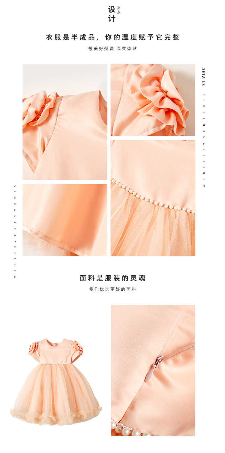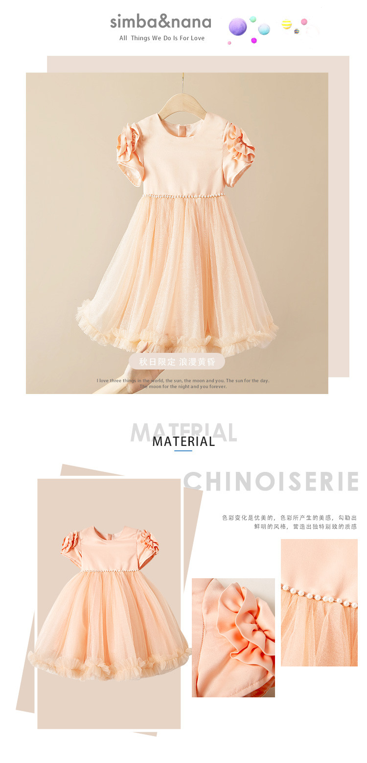 【辛巴娜娜】simbanana年女童新款网纱礼服公主裙短袖时髦连衣裙
