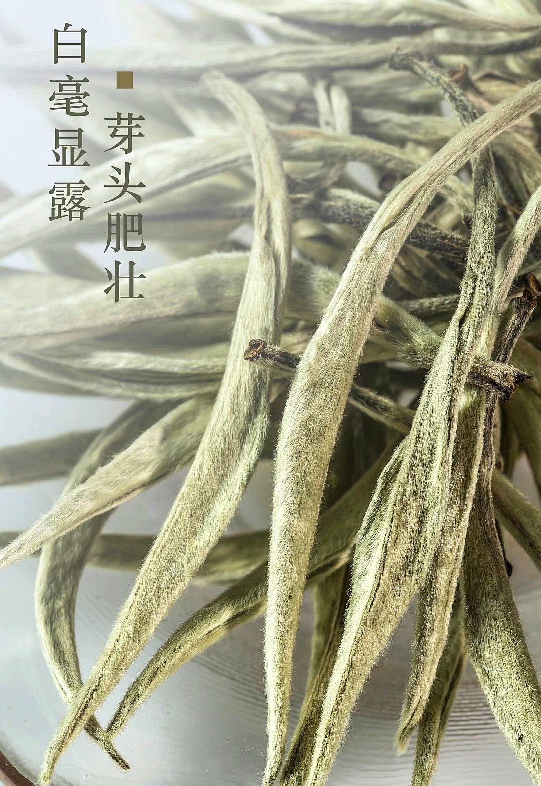 白毫银针,只采壮肥的单芽,更得难之处于在头采,量产稀少,是白茶中的极品。