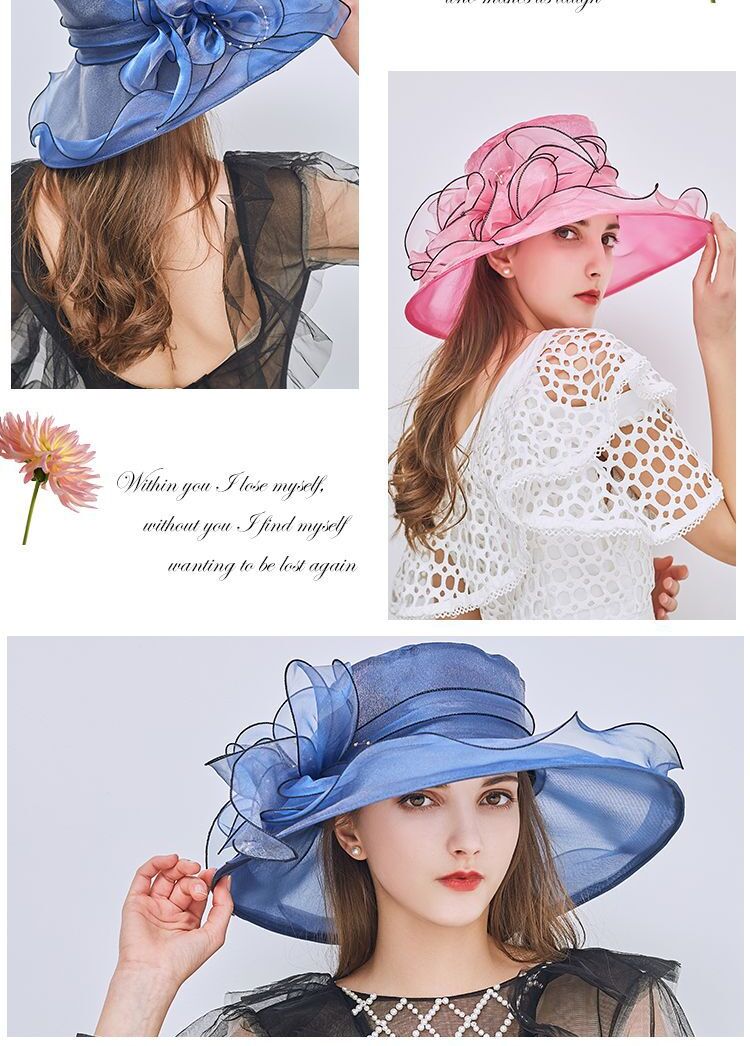 夏季韩版,花朵网纱遮阳帽沙滩太阳帽欧根纱礼帽FF-000