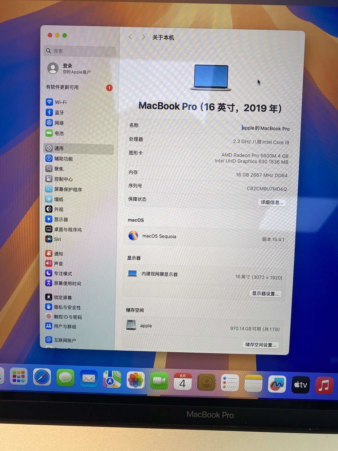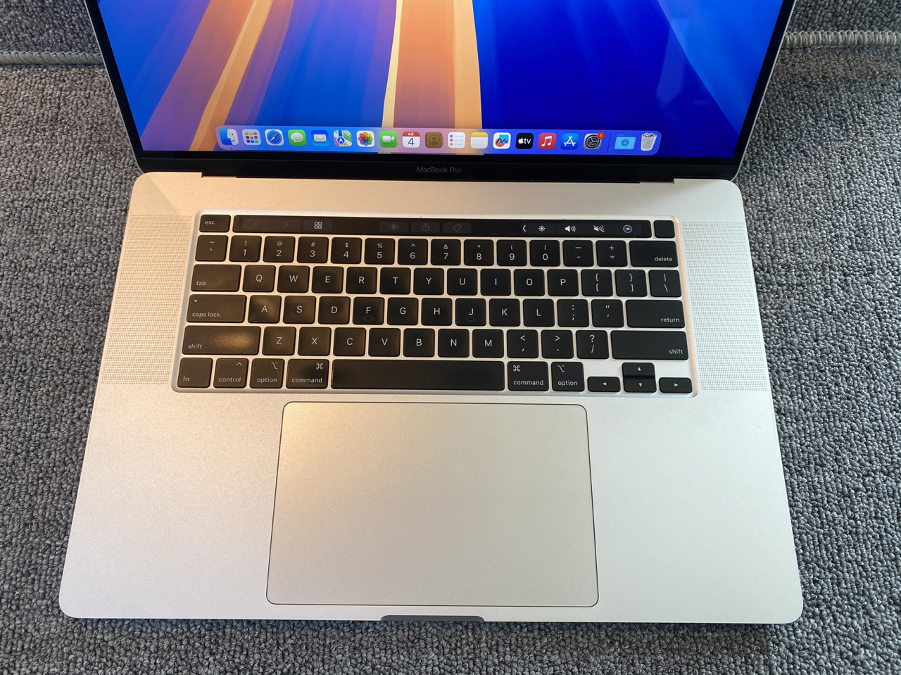 编号U7MD6Q-2019款MacBook Pro 16寸高配,9.9新完美成色,配置:i9-八核-2.3GHz/16G内存/1T固盘/4G独显/3K超高清显示屏/亮银色合金机身,官网原价22999元