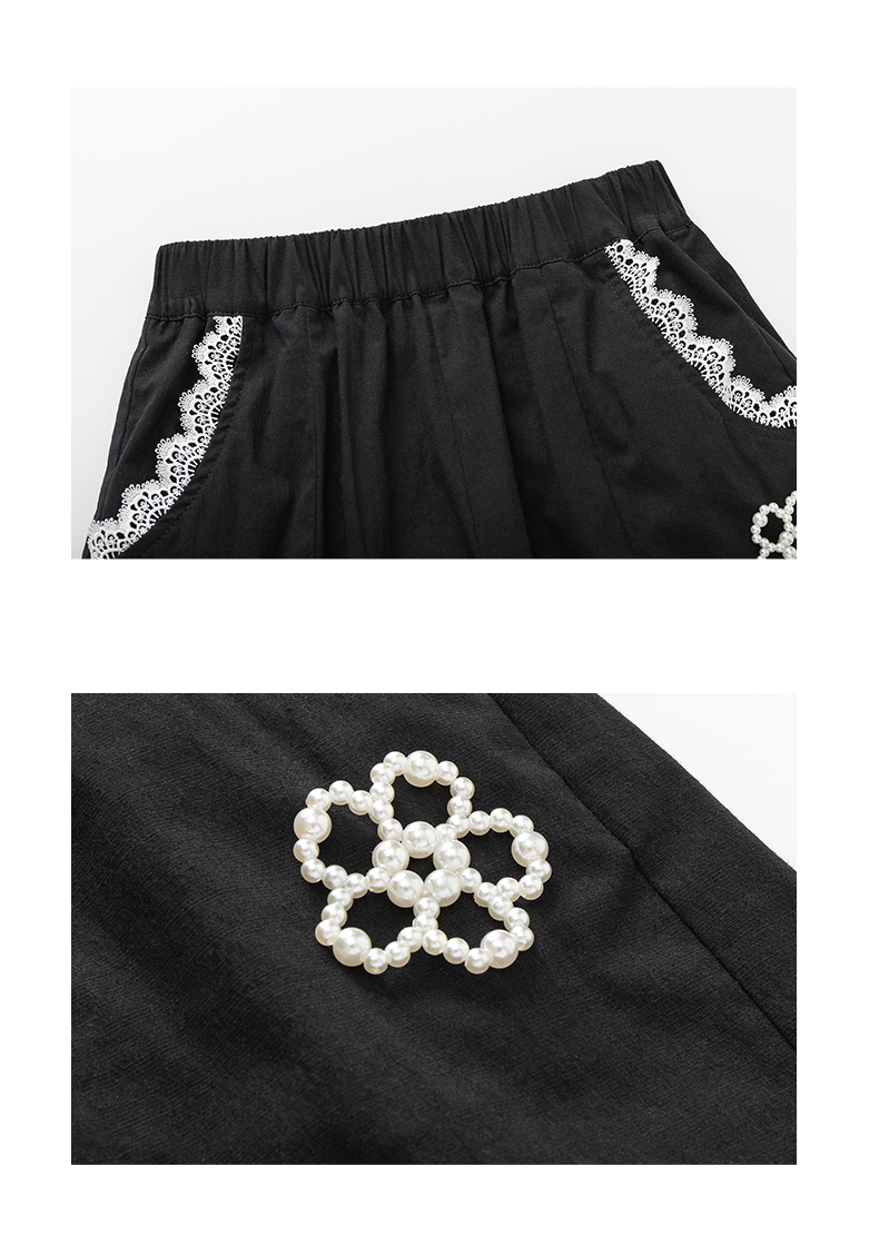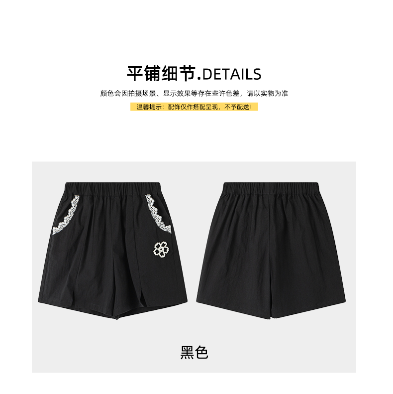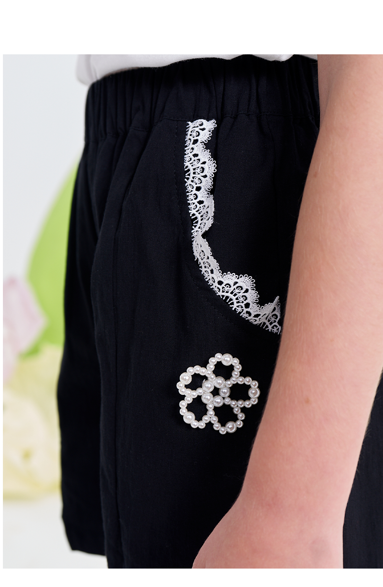 【MQD】女大童夏季时尚精致花边四分休闲裤