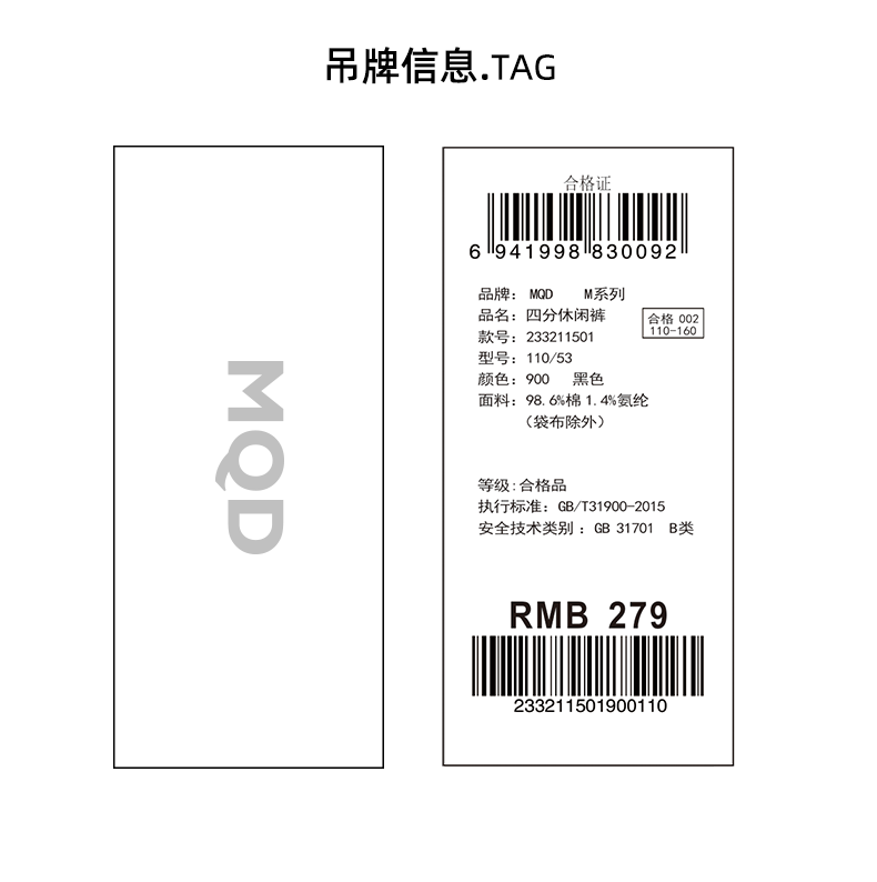 【MQD】男大童秋季新品经典百搭束脚休闲长裤