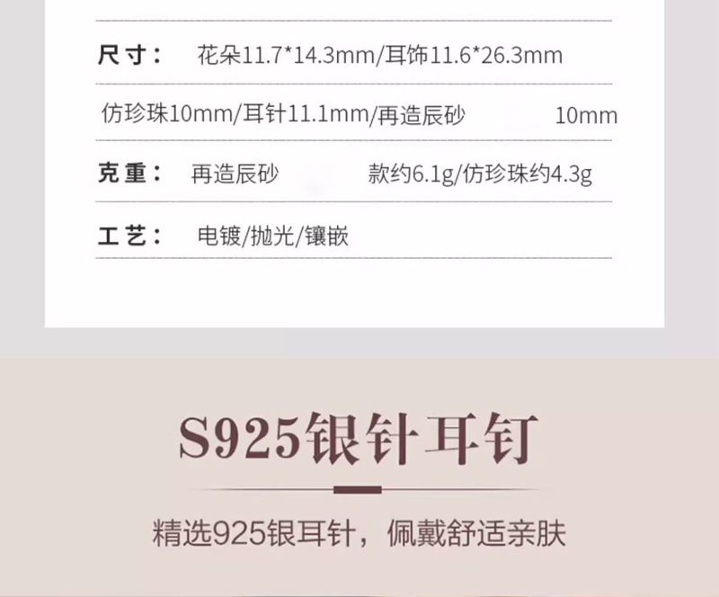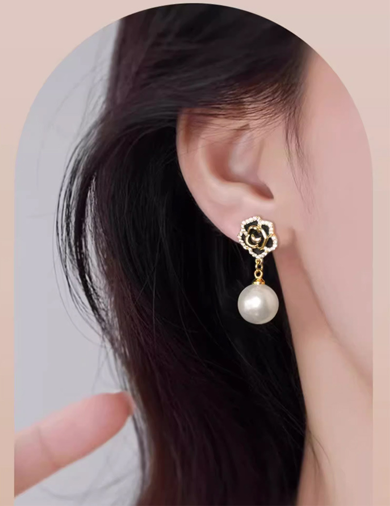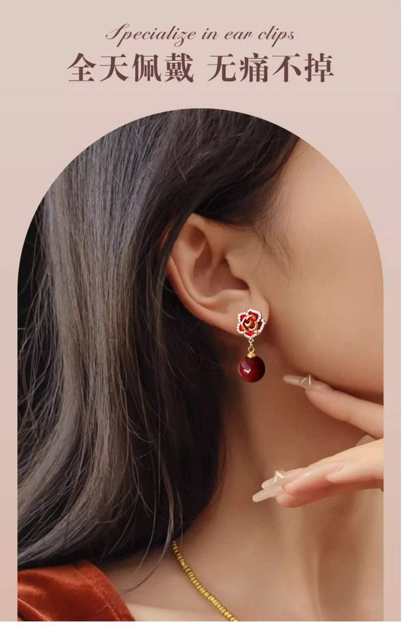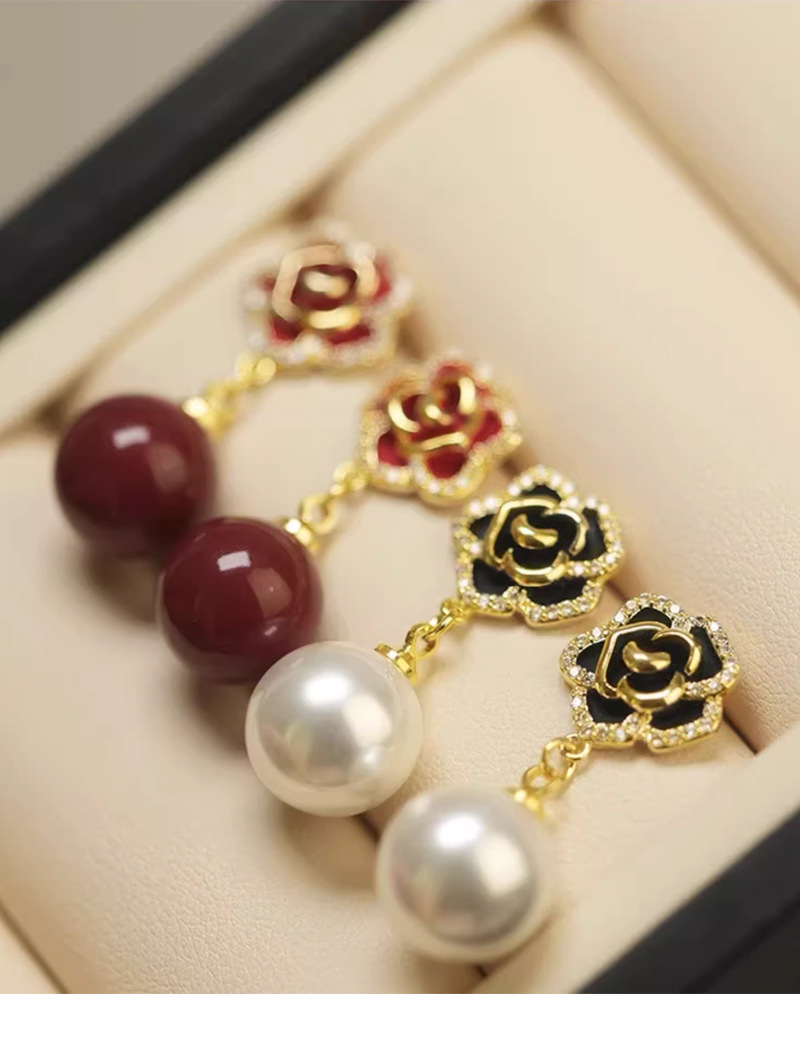 雀说 红色玫瑰花珍珠耳环女轻奢高级感气质银针长款耳坠新年耳饰5ZF-59