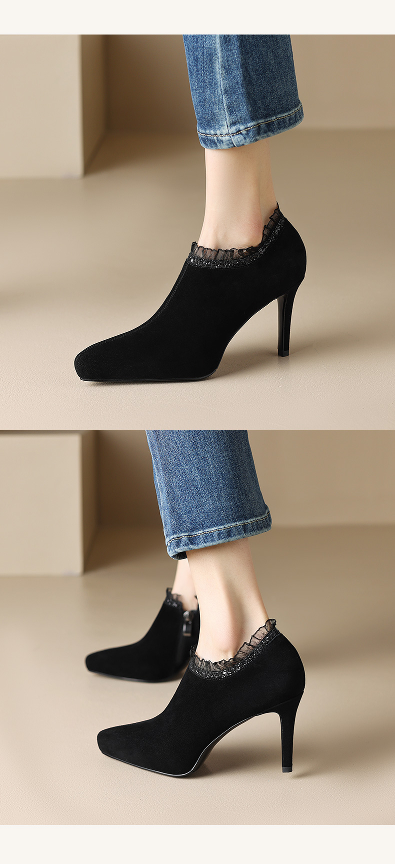 经典基础款,早春高跟深口防水台单鞋蕾丝花边裸靴DB-M5572