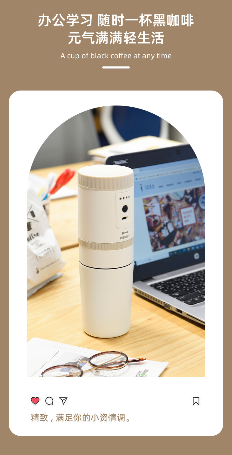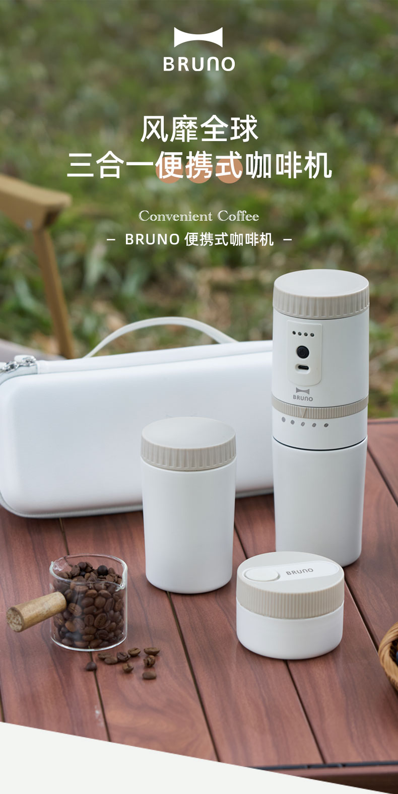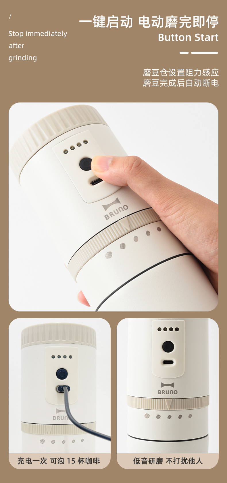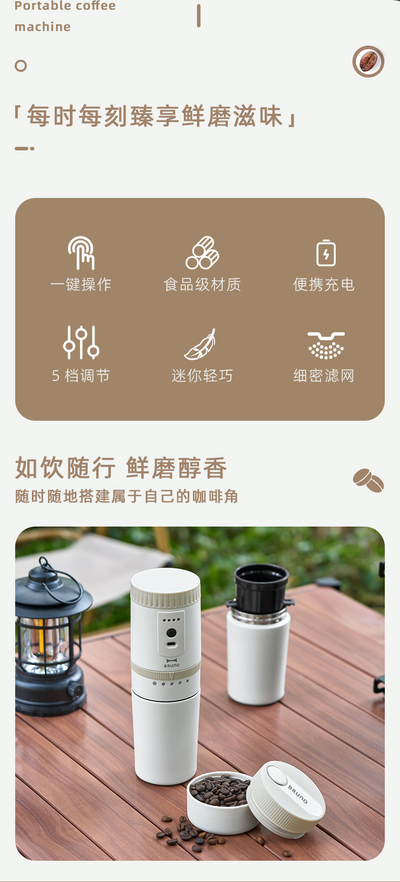【口袋咖啡机】BRUNO便携式咖啡机BOE080 小型自动研磨一体咖啡机 一键操作 5档调节 办公室户外旅行咖啡机