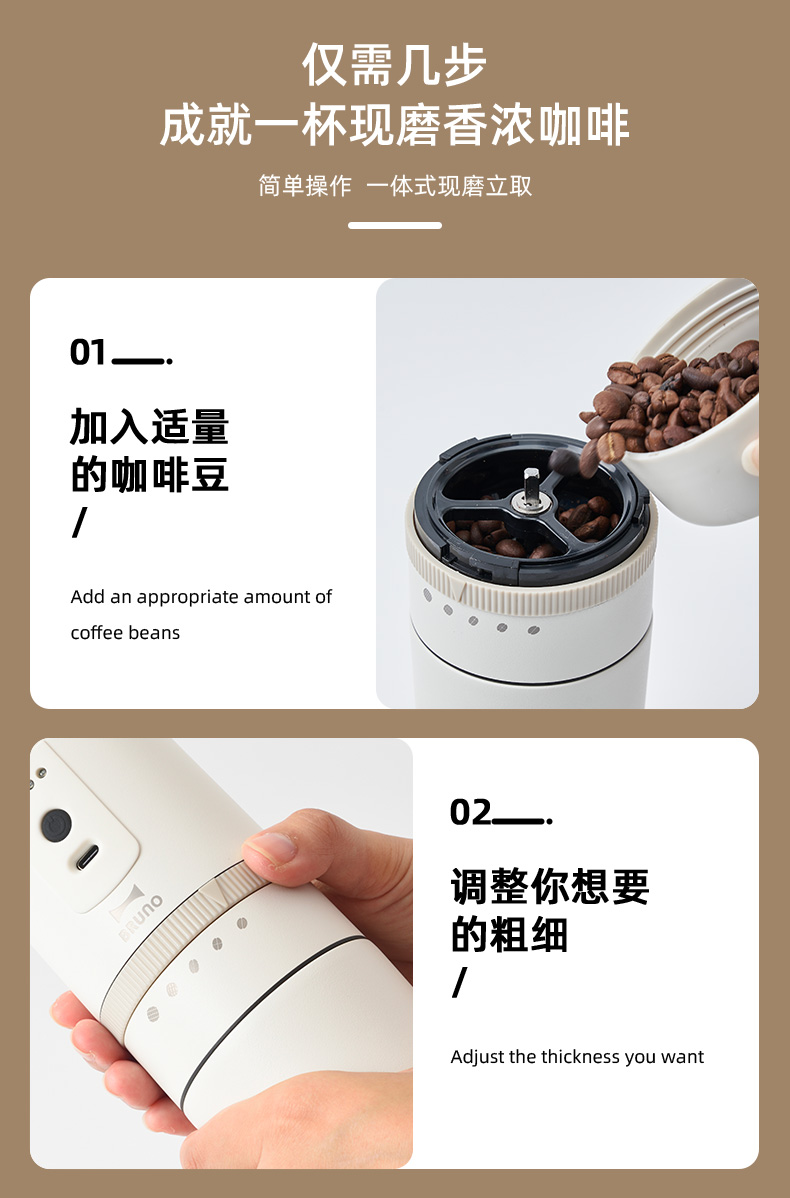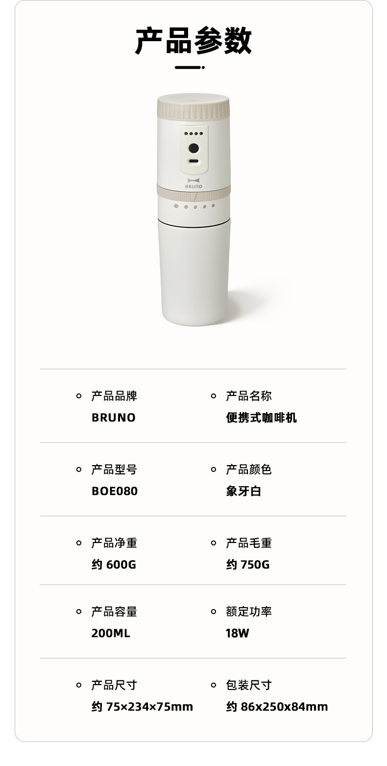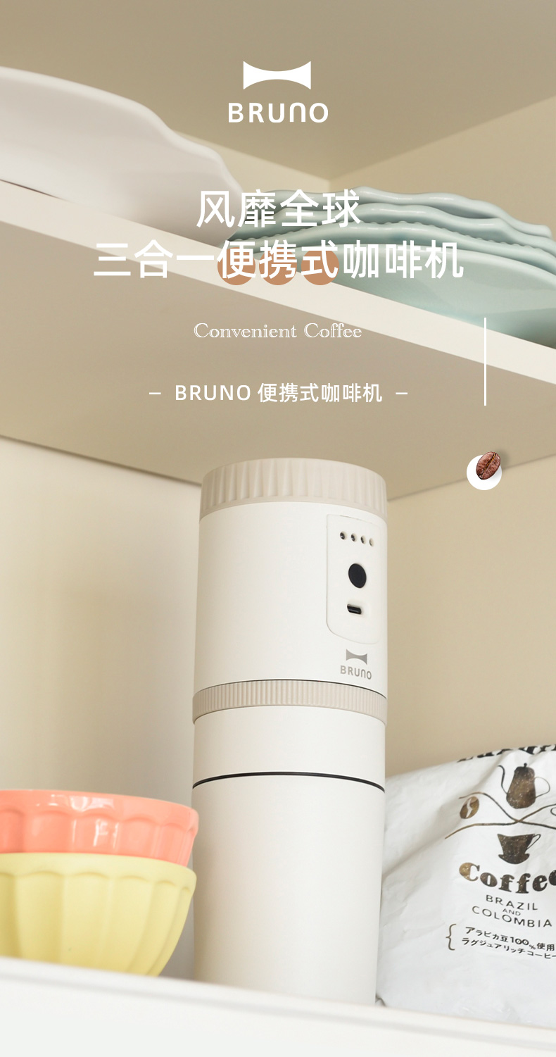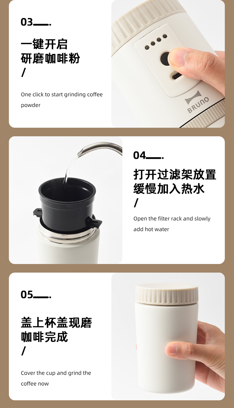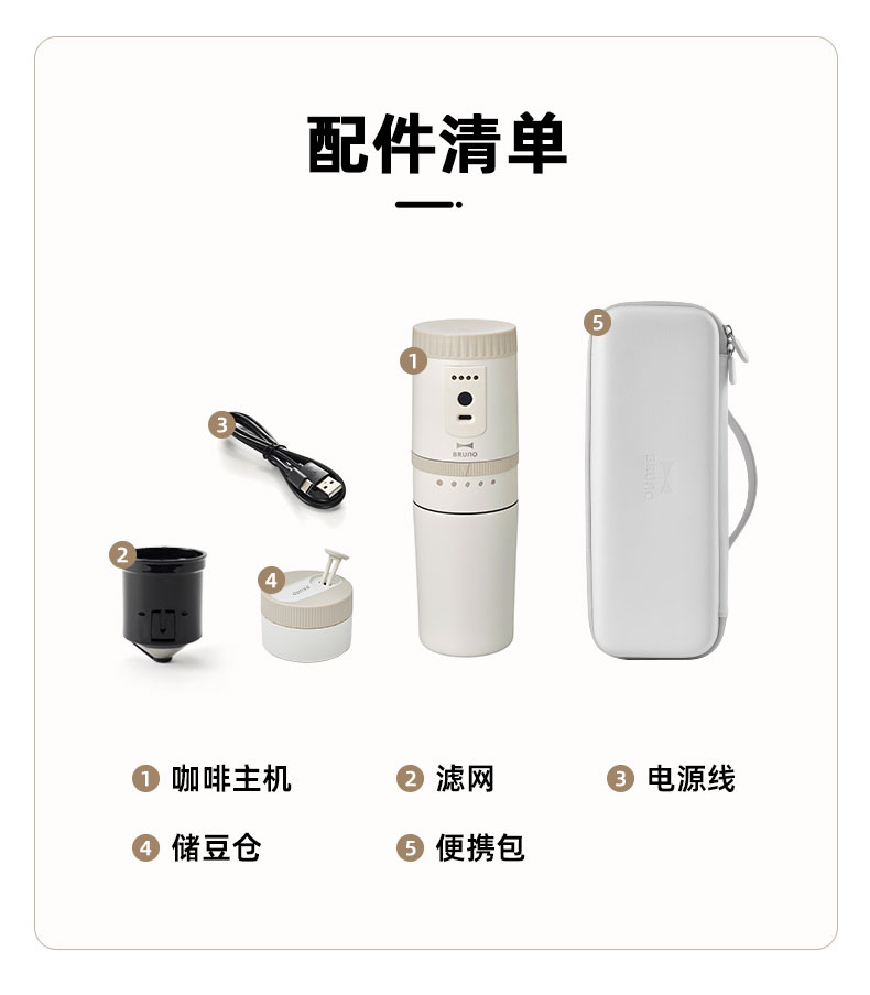 【口袋咖啡机】BRUNO便携式咖啡机BOE080 小型自动研磨一体咖啡机 一键操作 5档调节 办公室户外旅行咖啡机