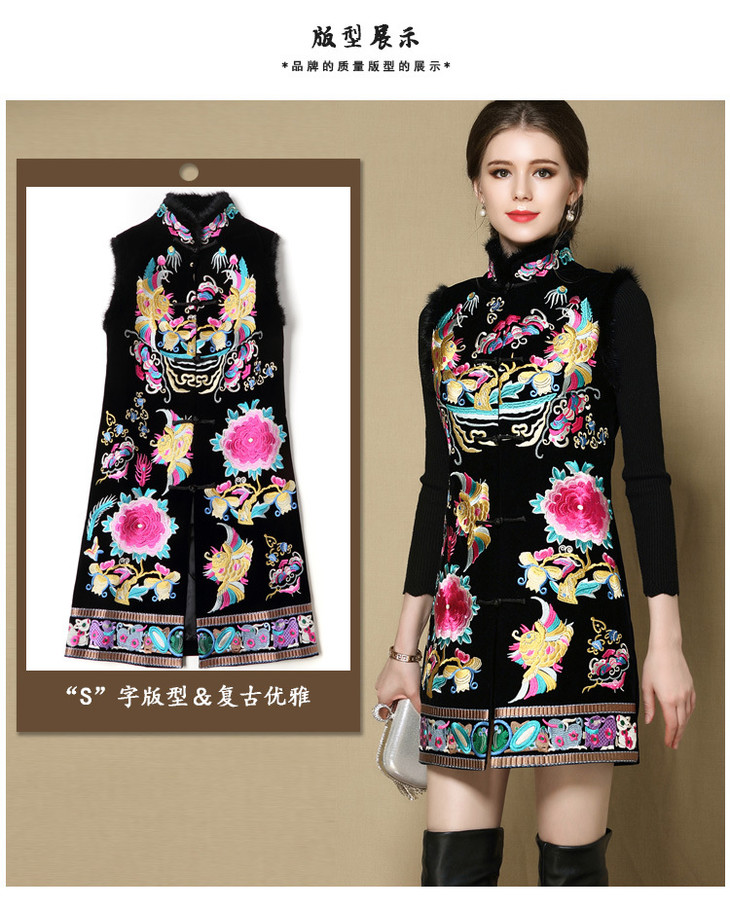 古典刺绣,加厚中长款无袖马甲AYK-QF-201706219