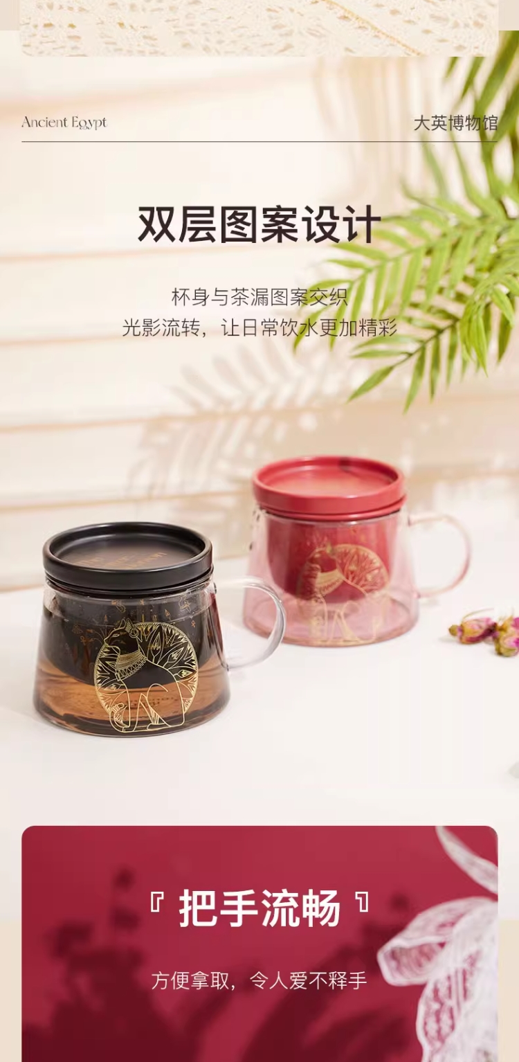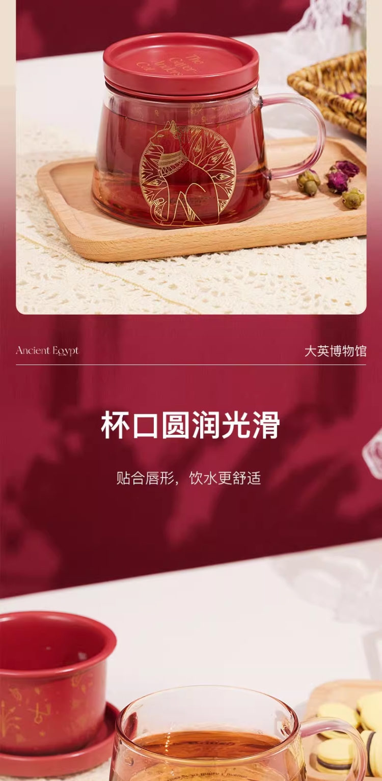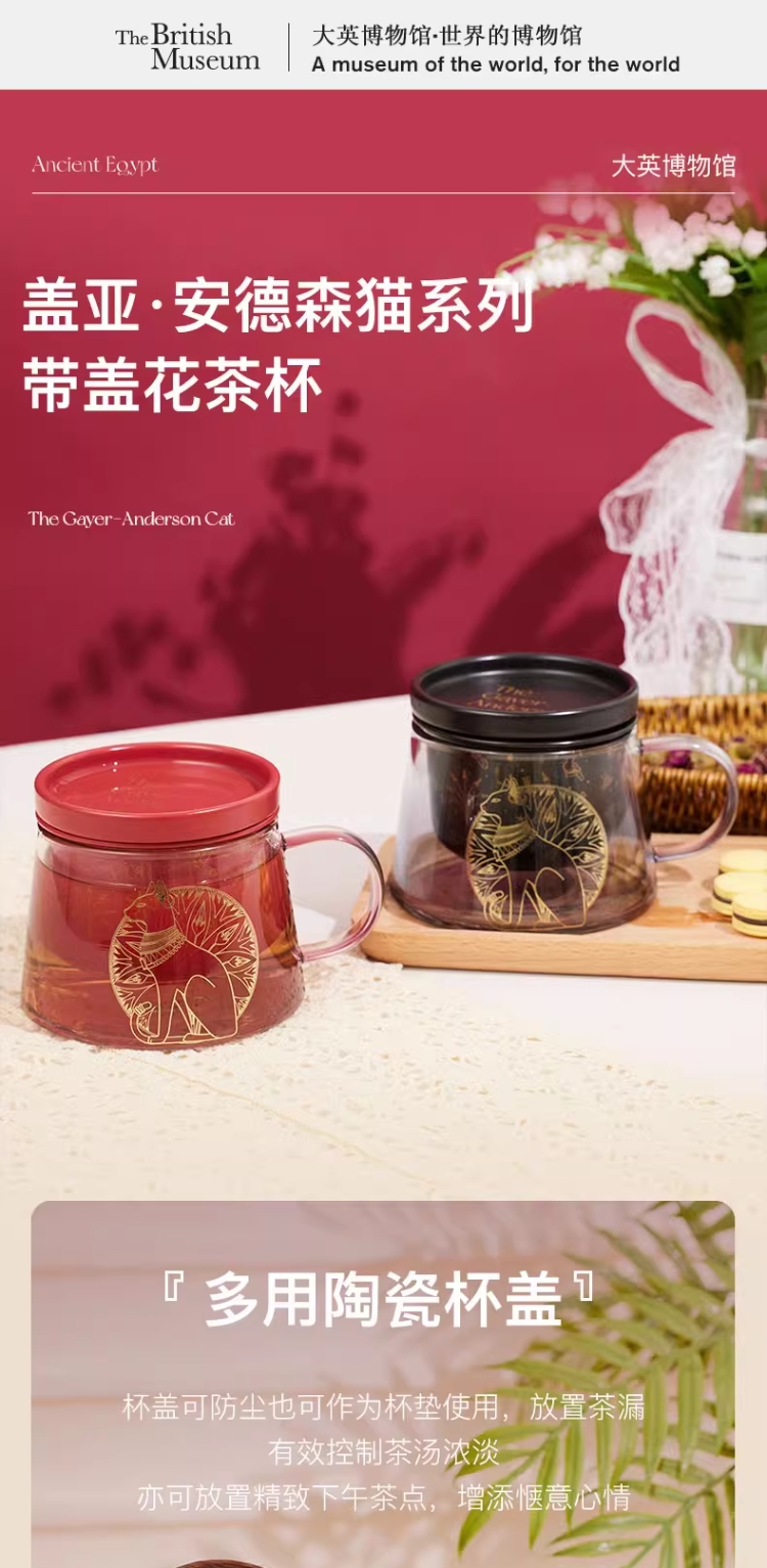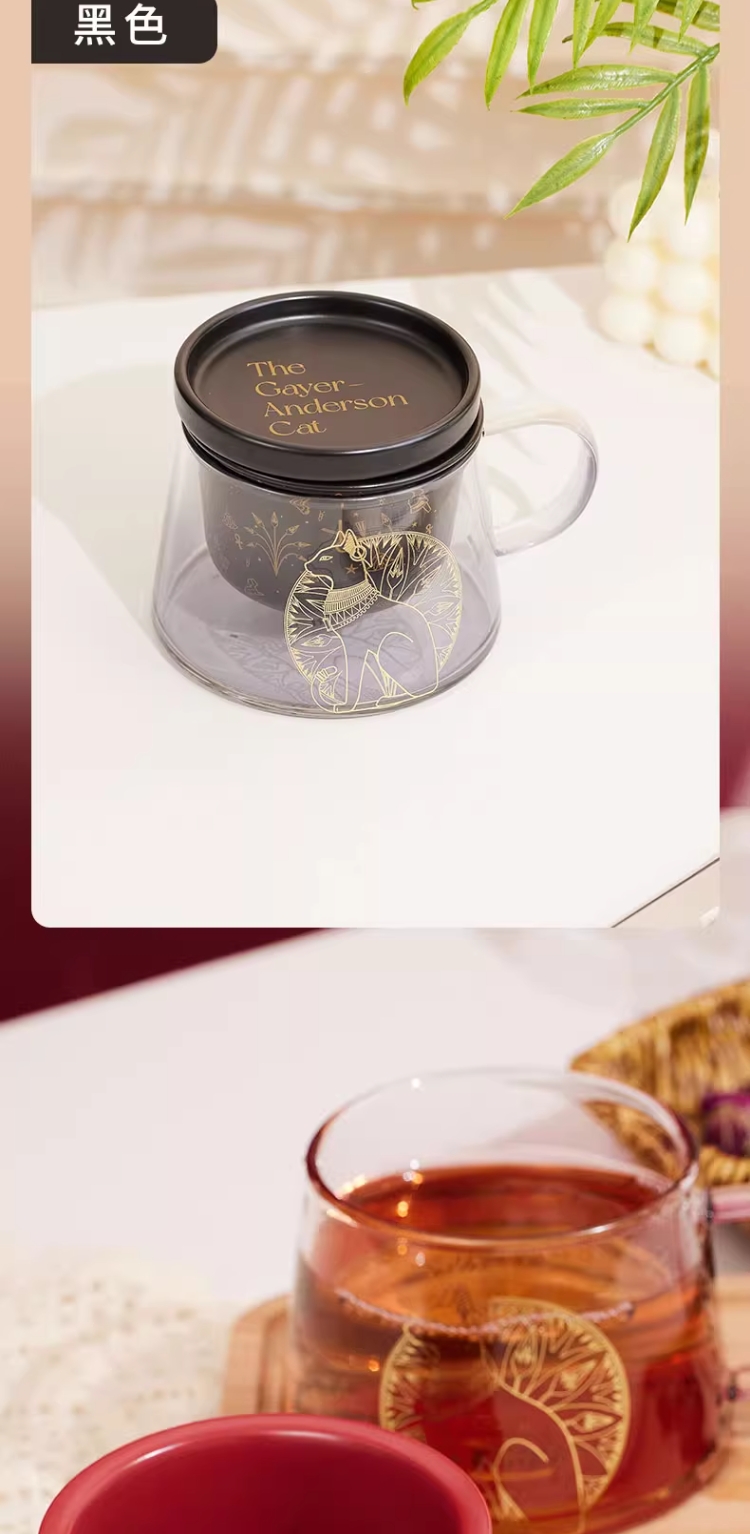 大英博物馆 盖亚·安德森猫系列 带盖带茶漏 花茶杯泡茶杯礼盒 黑色红色400ml