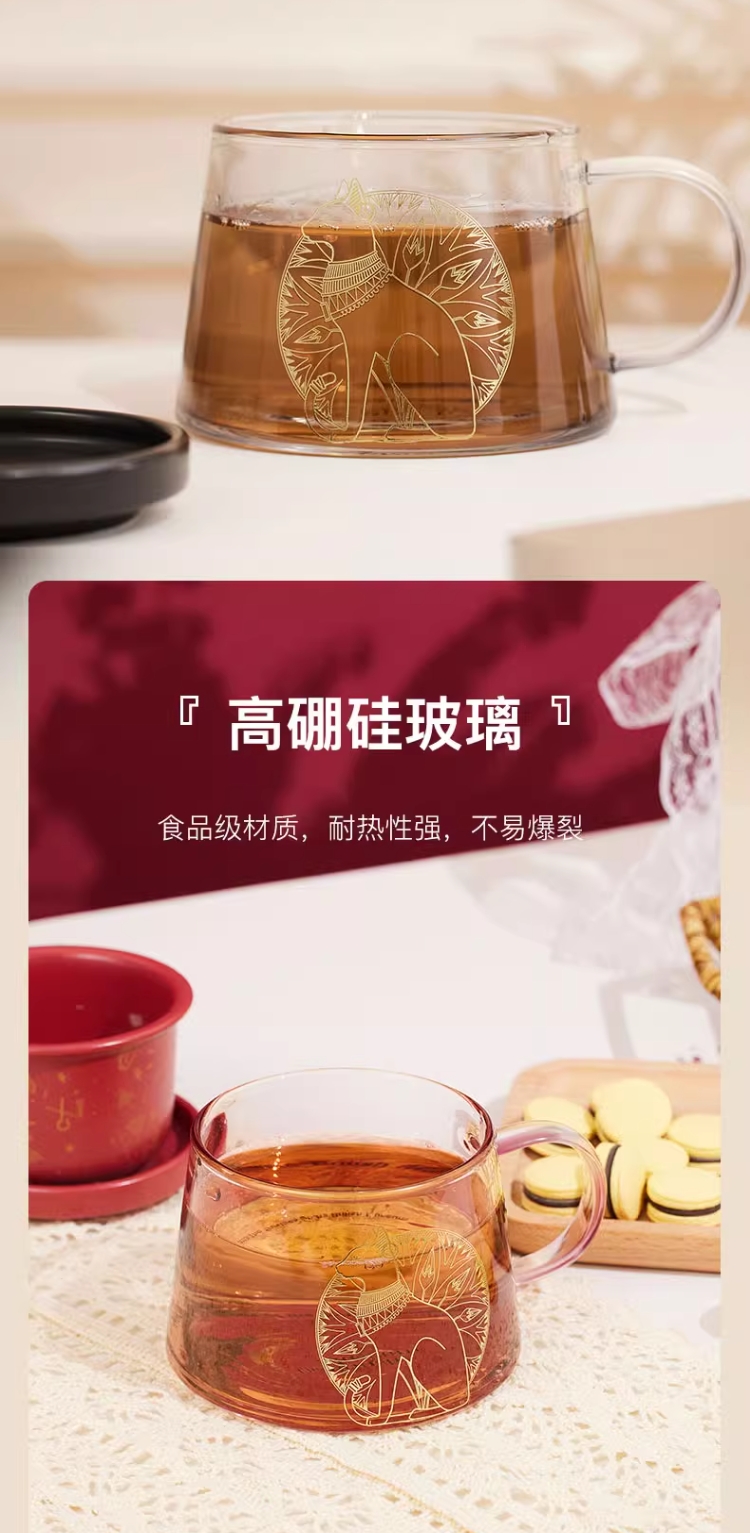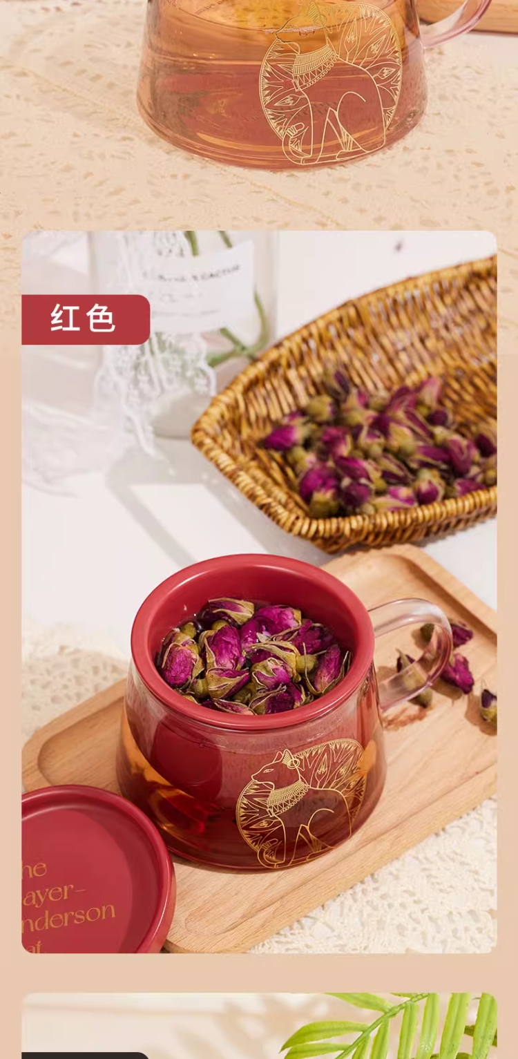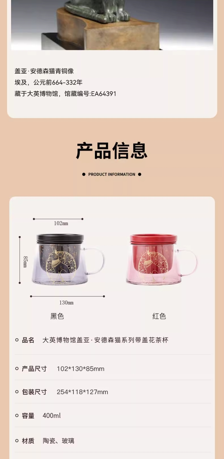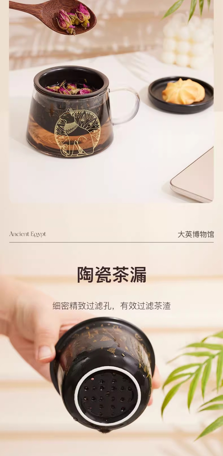大英博物馆 盖亚·安德森猫系列 带盖带茶漏 花茶杯泡茶杯礼盒 黑色红色400ml