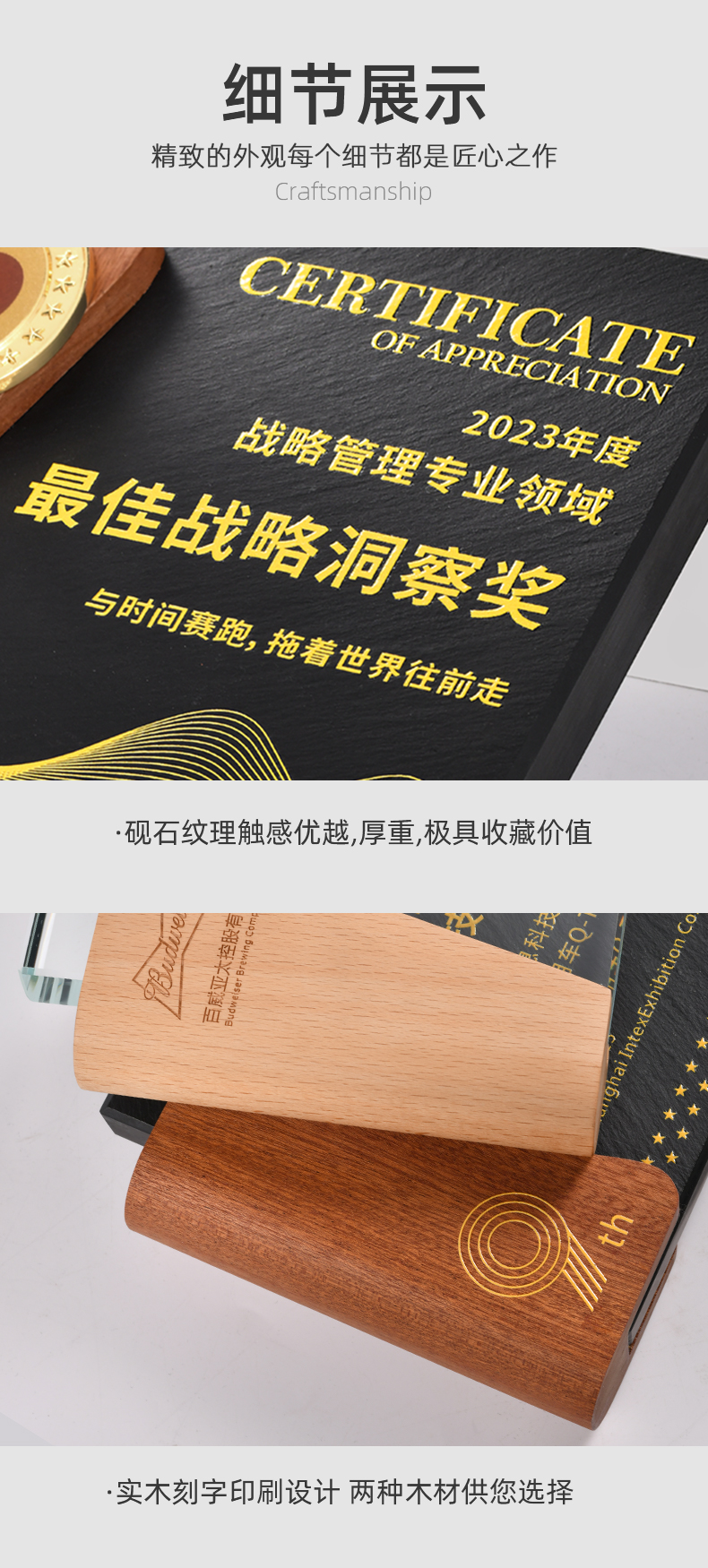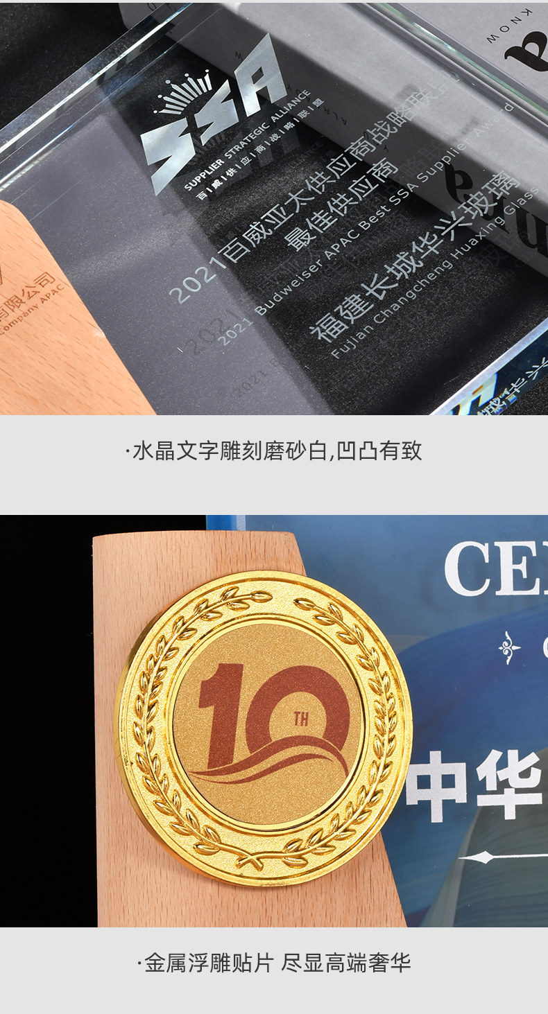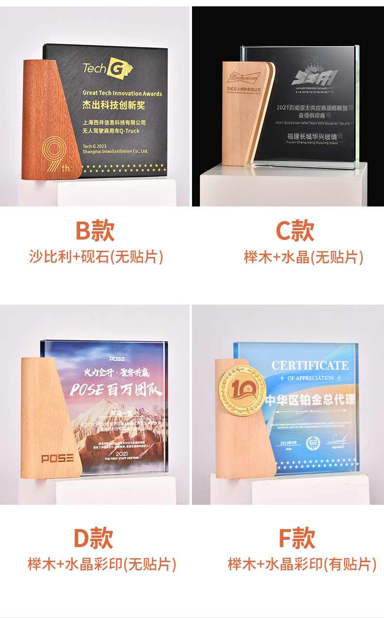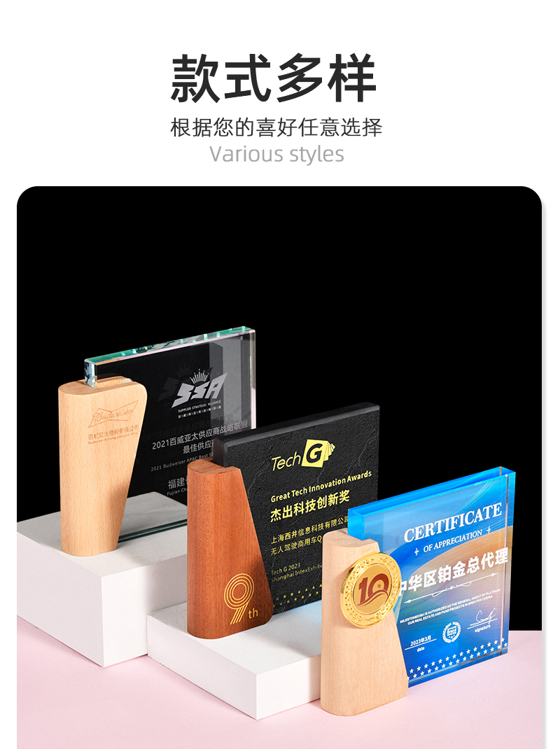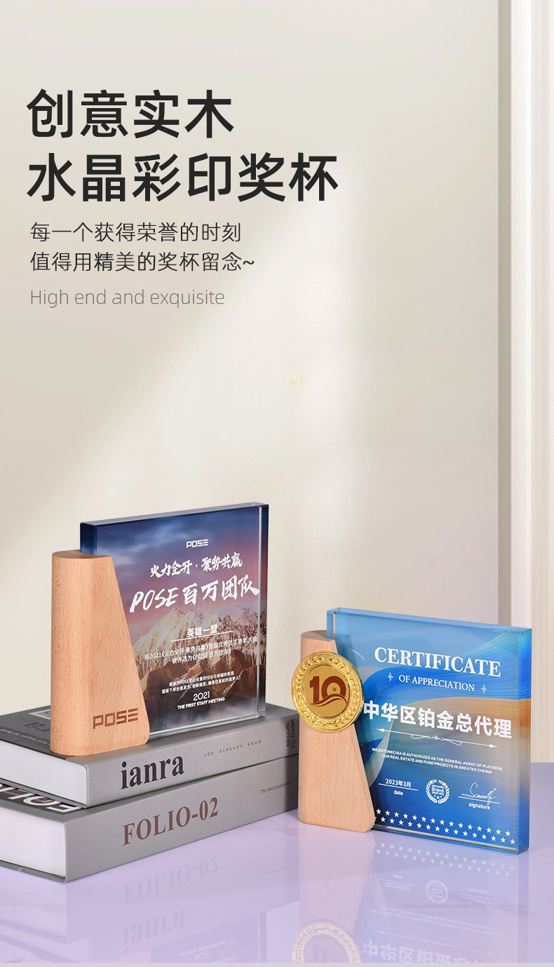 彩印水晶奖杯定制奖牌定做榉木实木经销代理加盟商授权牌荣誉摆件