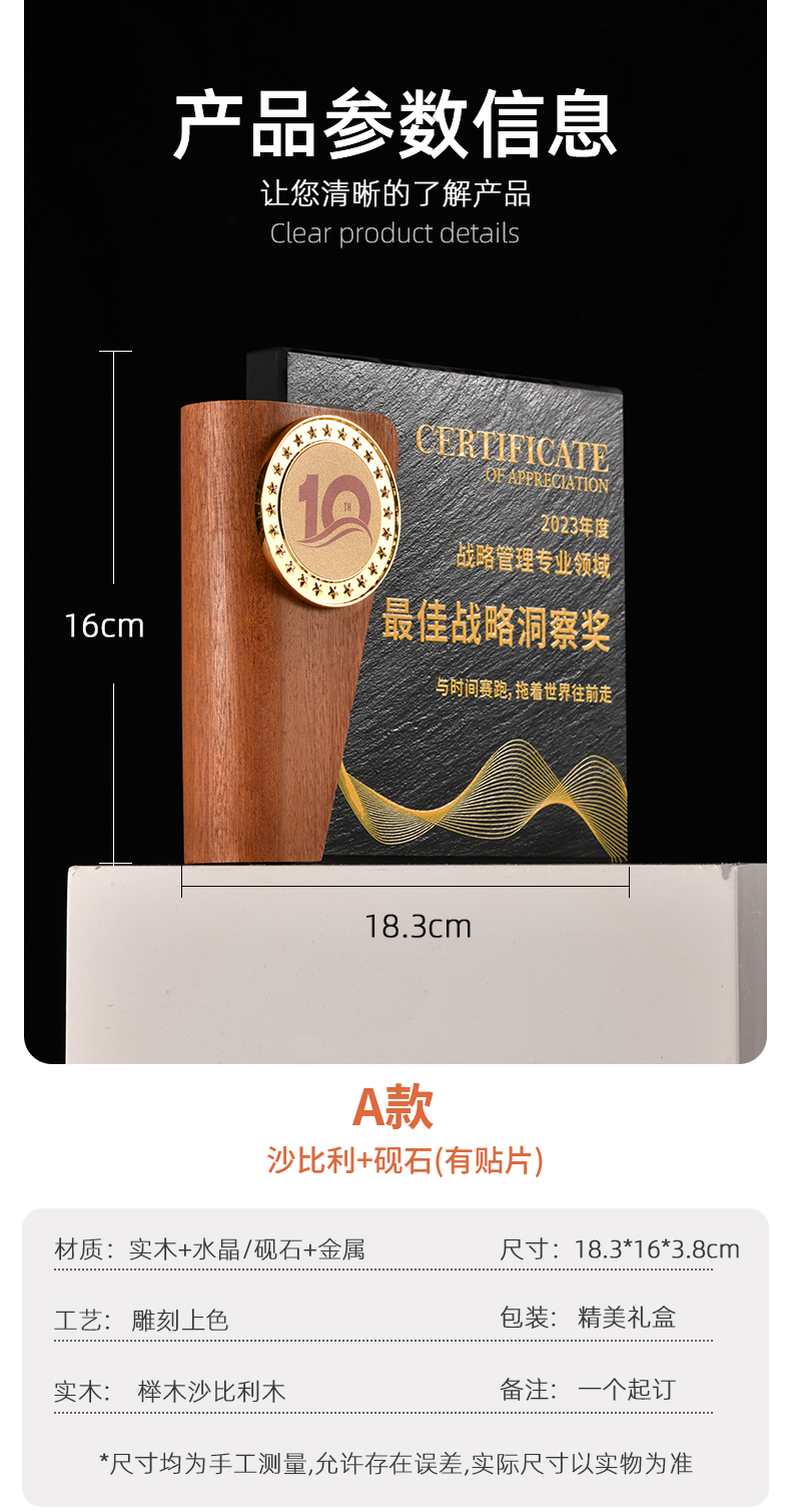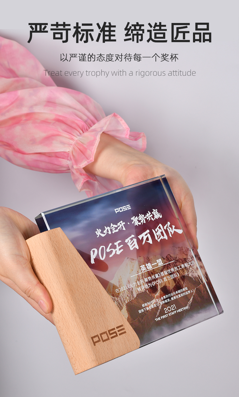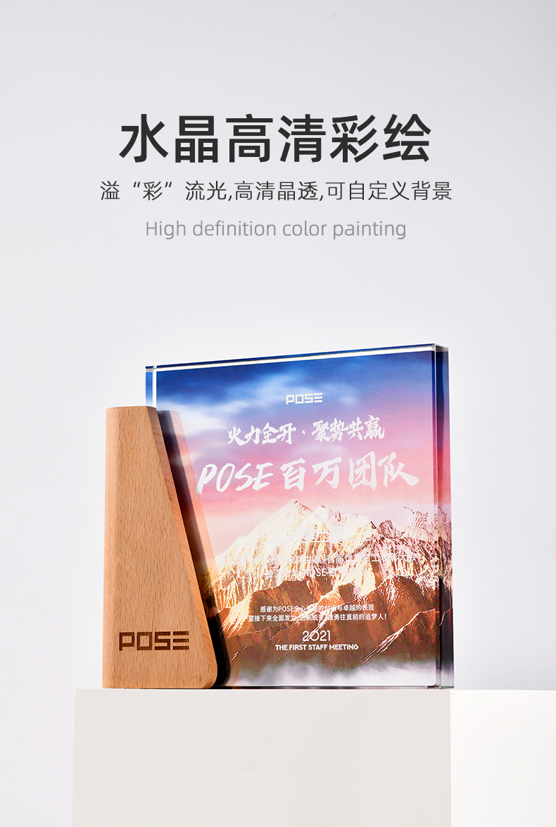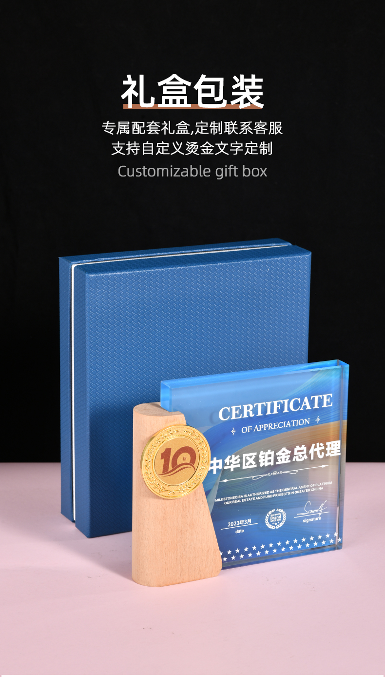 彩印水晶奖杯定制奖牌定做榉木实木经销代理加盟商授权牌荣誉摆件